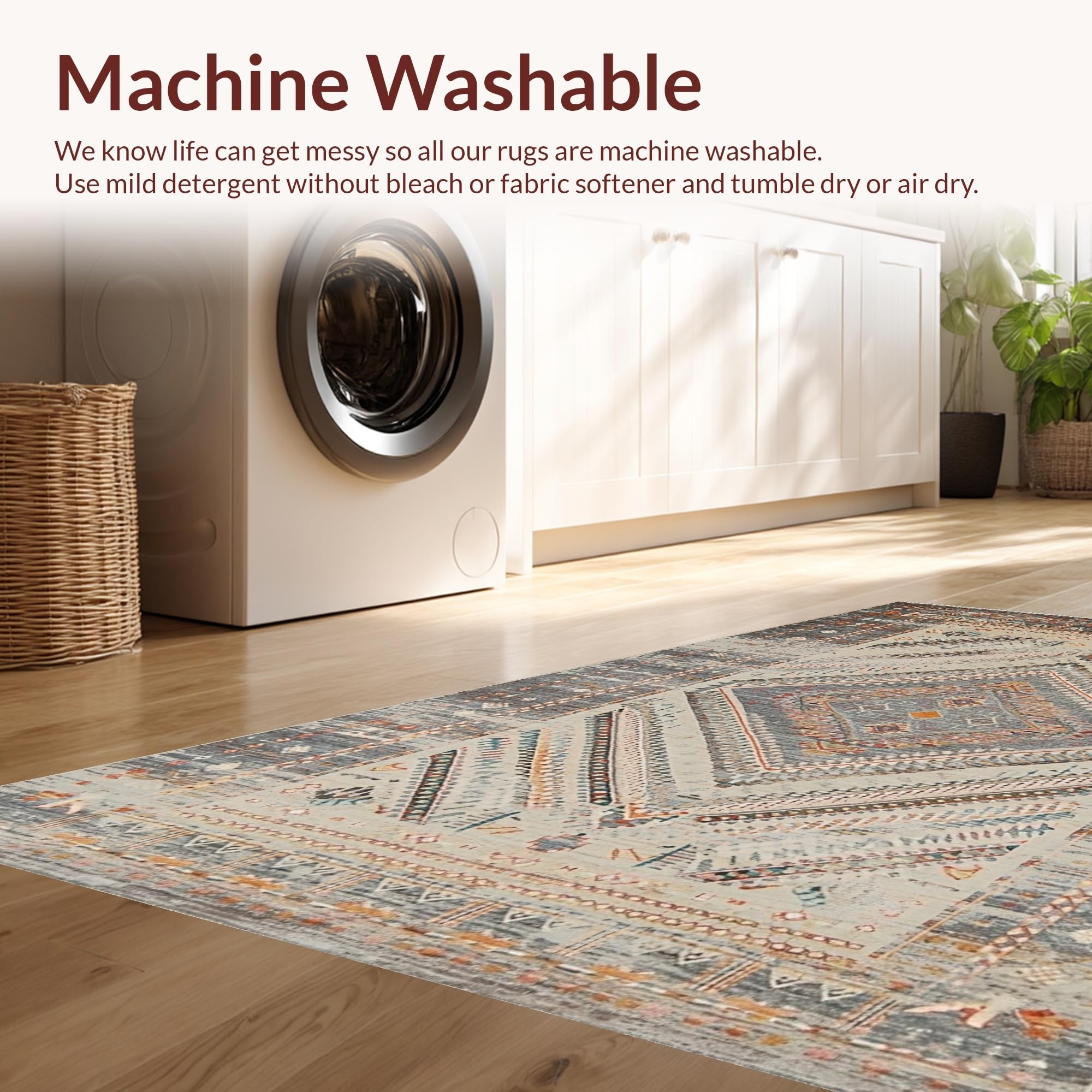 - Machine Washable: Our rugs can be easily thrown in the wash machine.