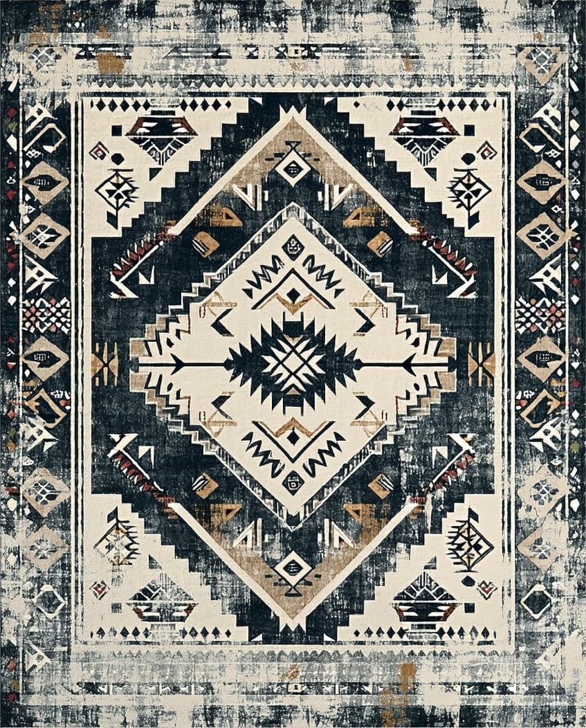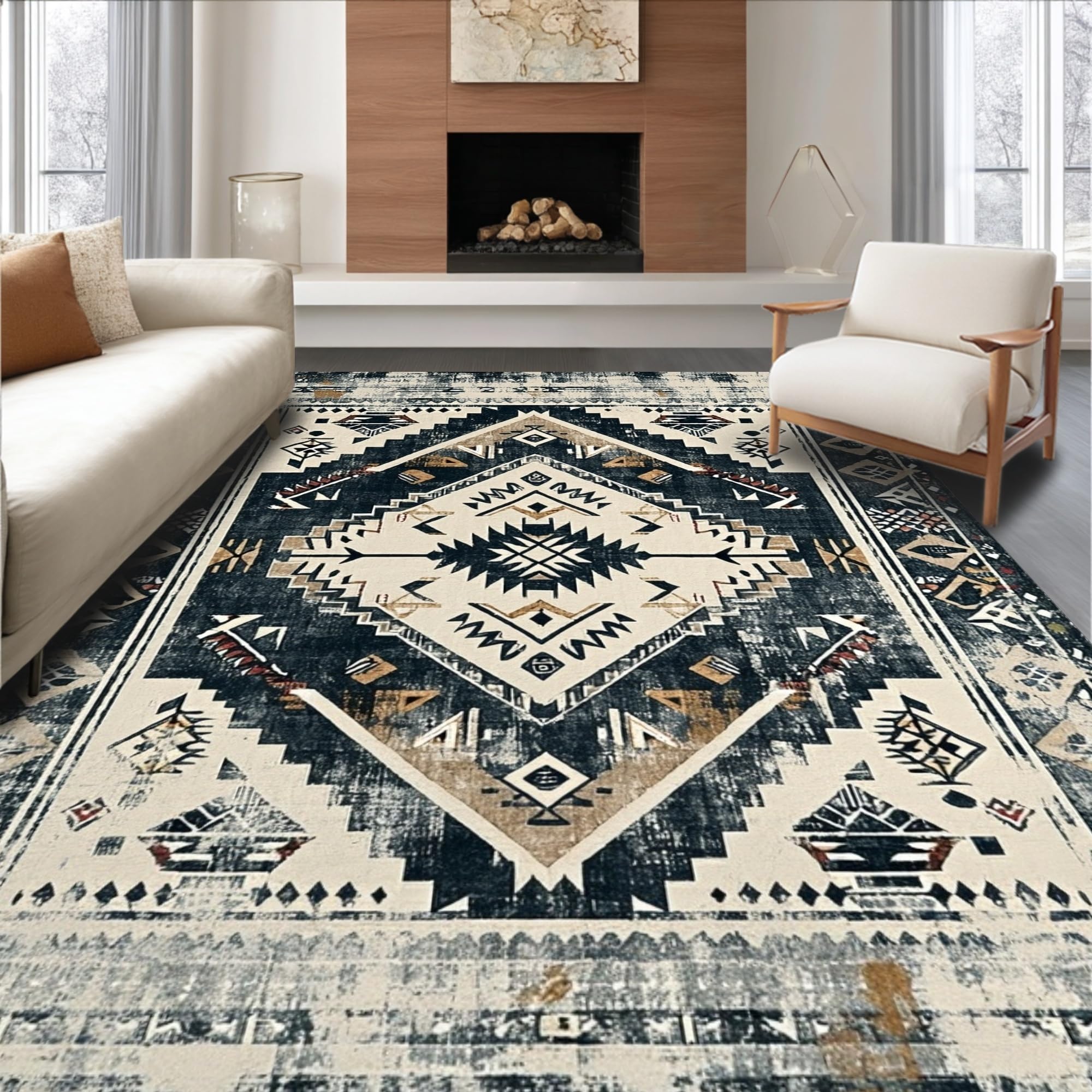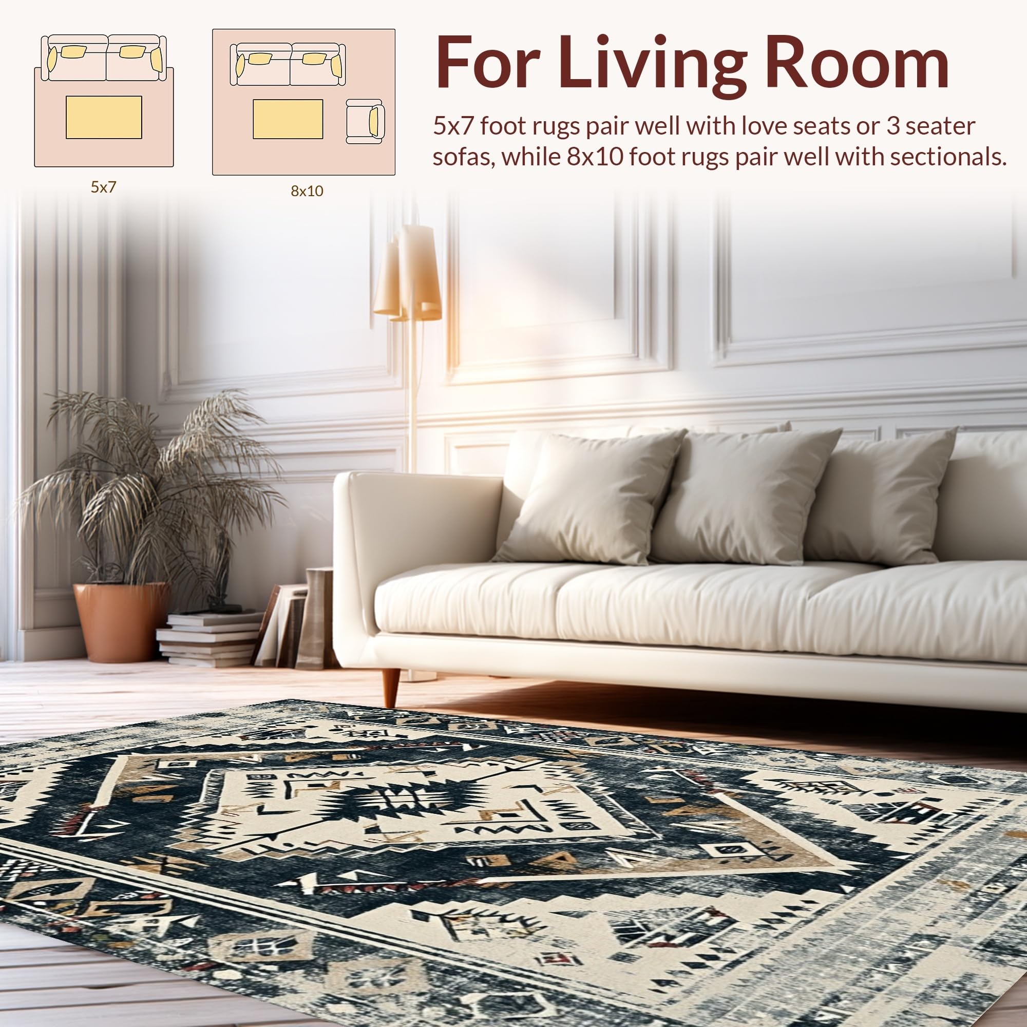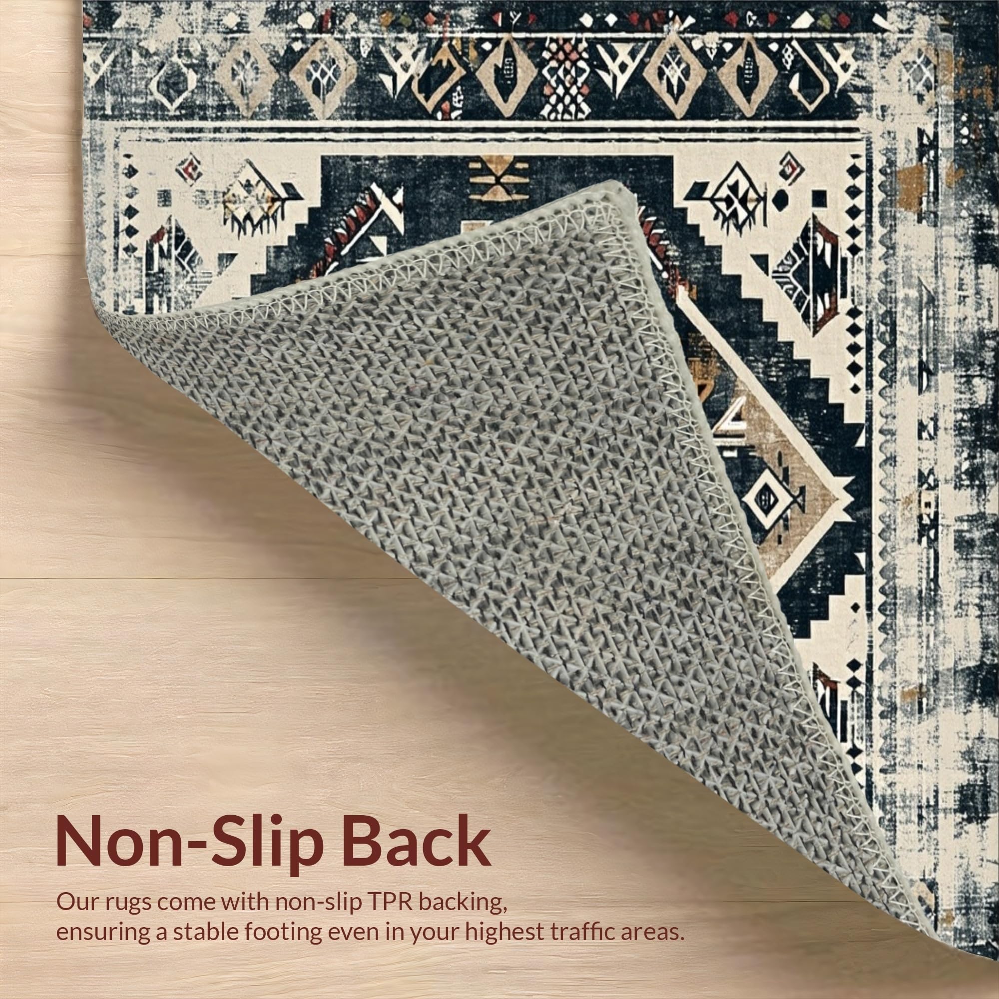 Ultra Soft Area Rug, Non Slip, Stain Resistant, Washable Area Rugs for Living Room, Bedroom, Artful Charcoal Abstract Composition(Black) Overview: