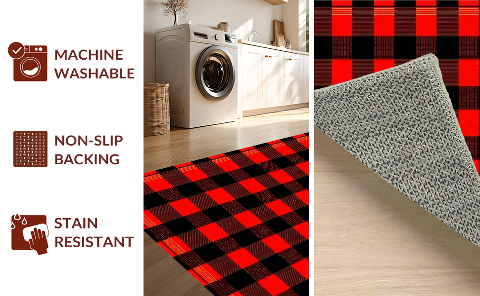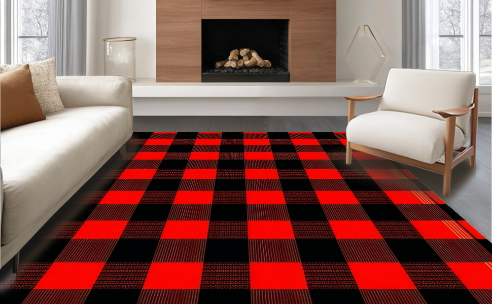 Ultra Soft Area Rug, Non Slip, Stain Resistant, Washable Area Rugs for Living Room, Bedroom, Artful Checkered Play Area(Red) Overview: