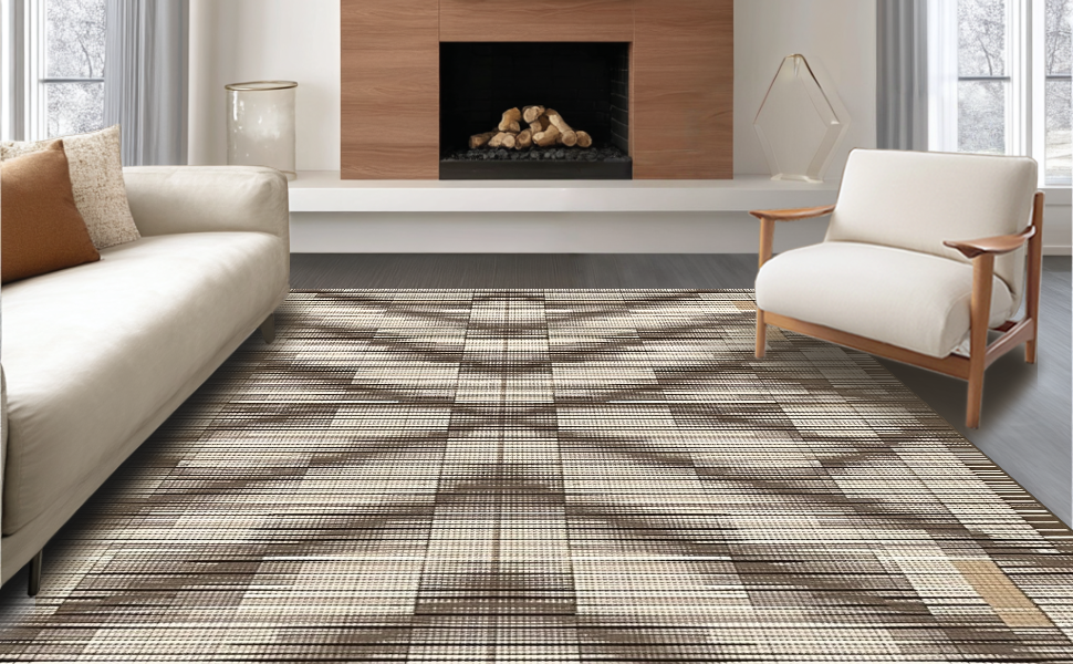 Ultra Soft Area Rug, Non Slip, Stain Resistant, Washable Area Rugs for Living Room, Bedroom, Artful Checkered Tiled Visual Appeal(Beige) Overview: