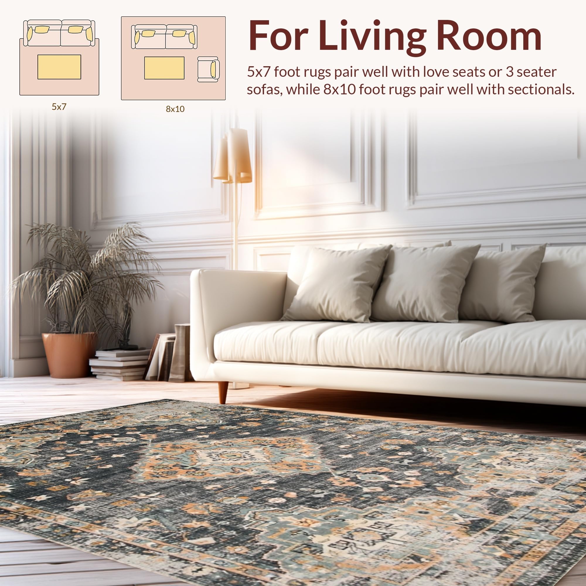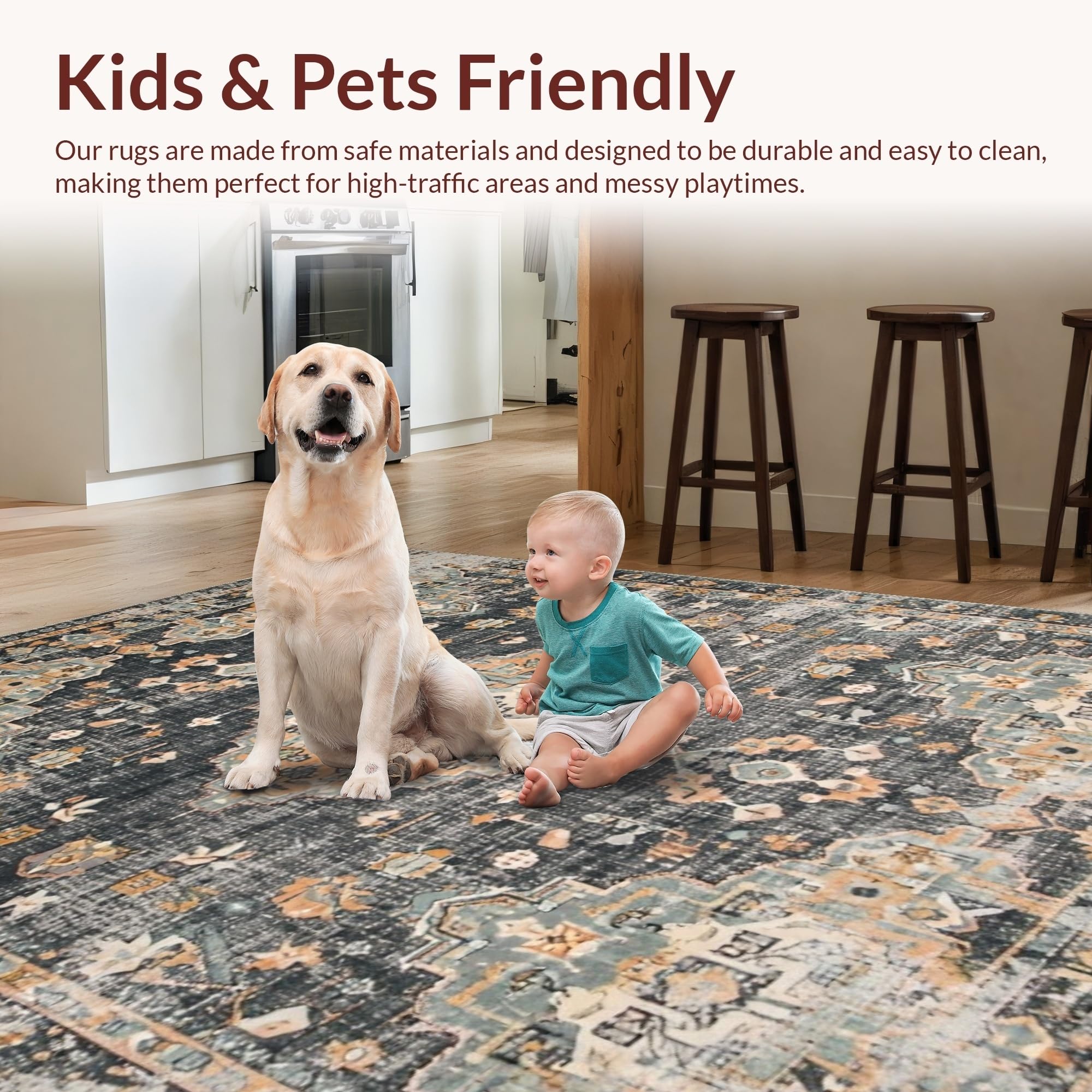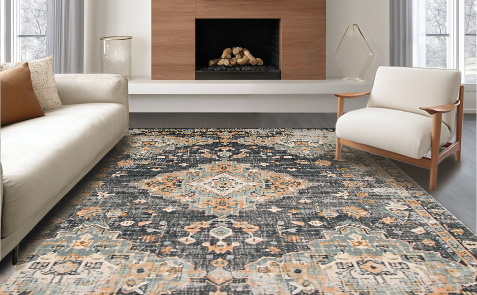 Ultra Soft Area Rug, Non Slip, Stain Resistant, Washable Area Rugs for Living Room, Bedroom, Artful Classic Symmetrical Arrangement(Black) Overview: