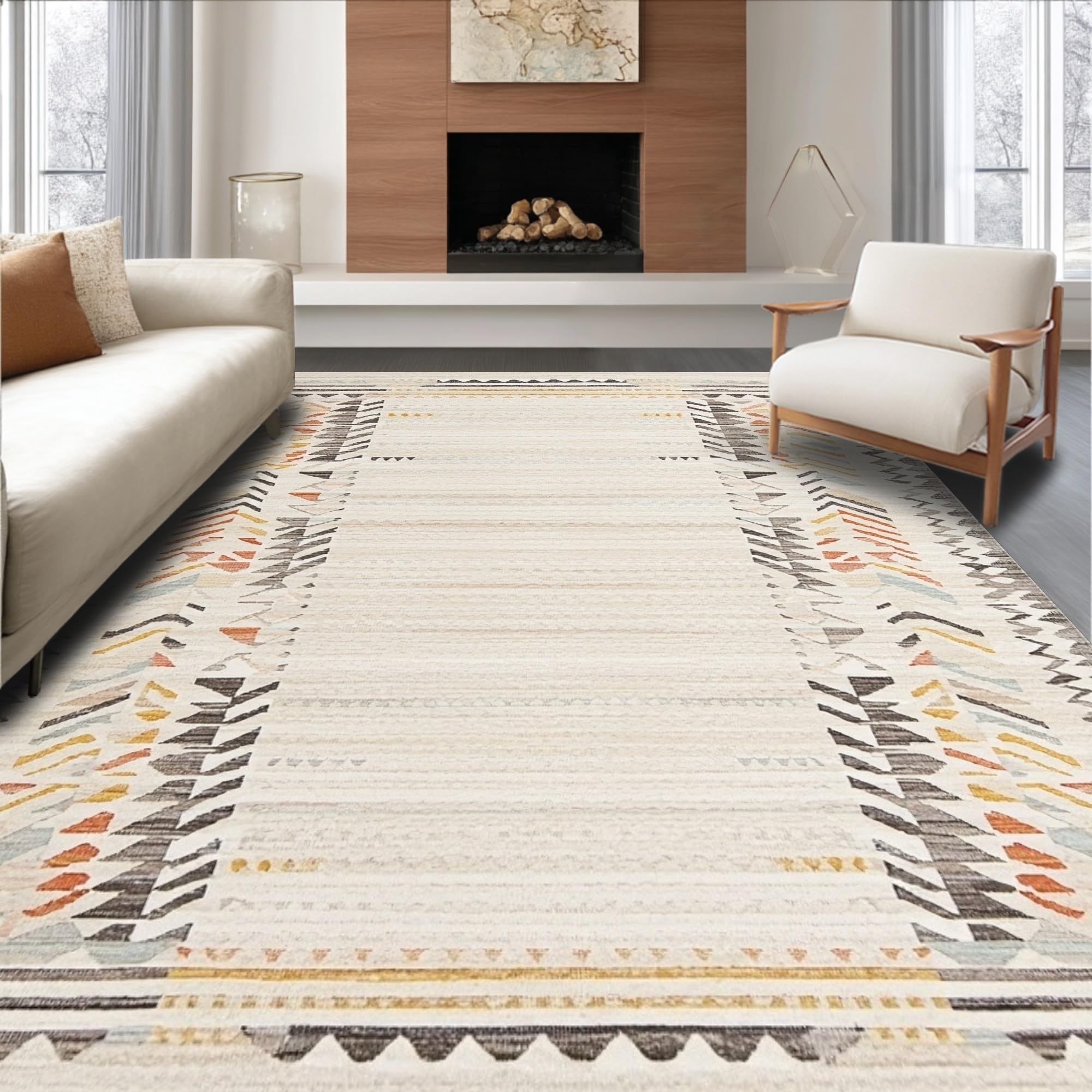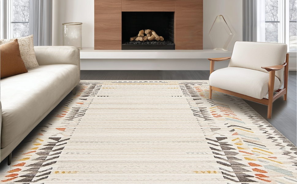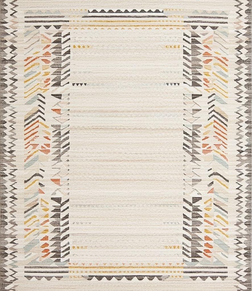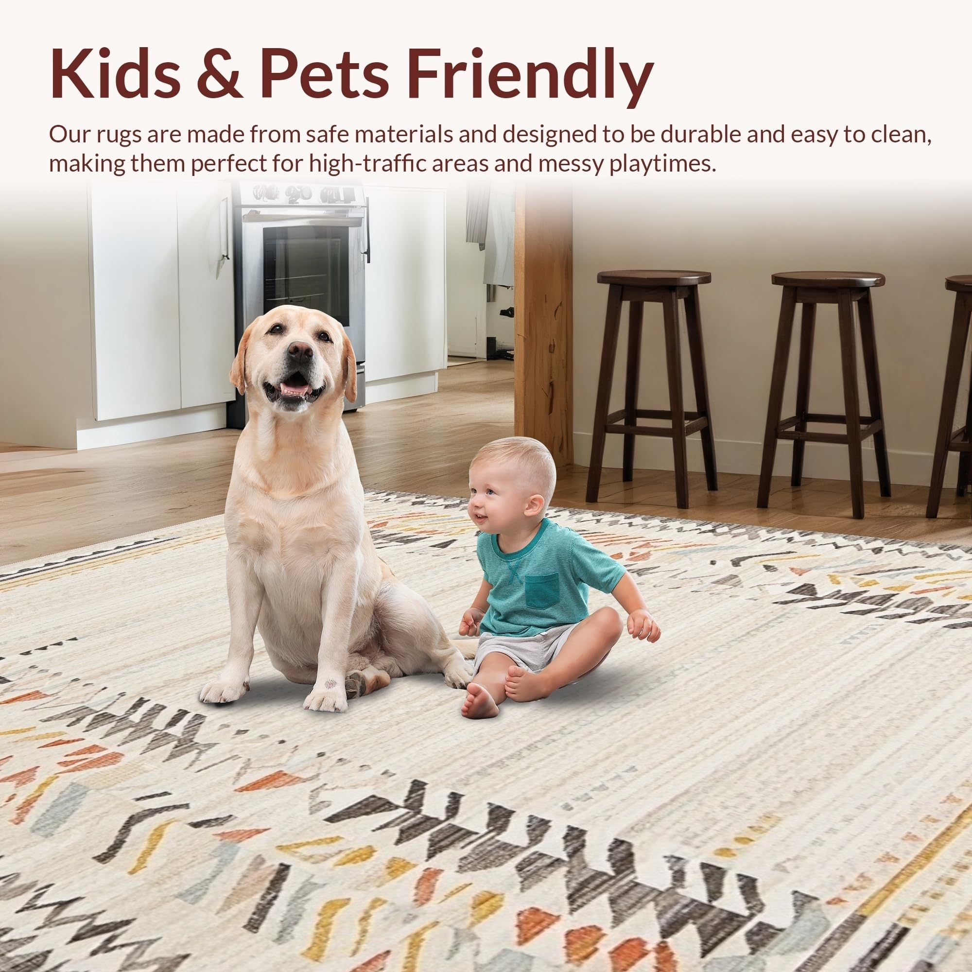 Ultra Soft Area Rug, Non Slip, Stain Resistant, Washable Area Rugs for Living Room, Bedroom, Artful Coastal Stripe Composition(Beige) Overview: