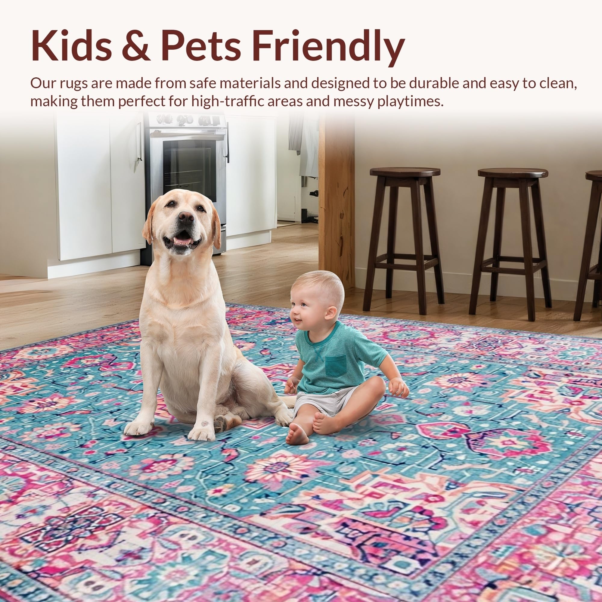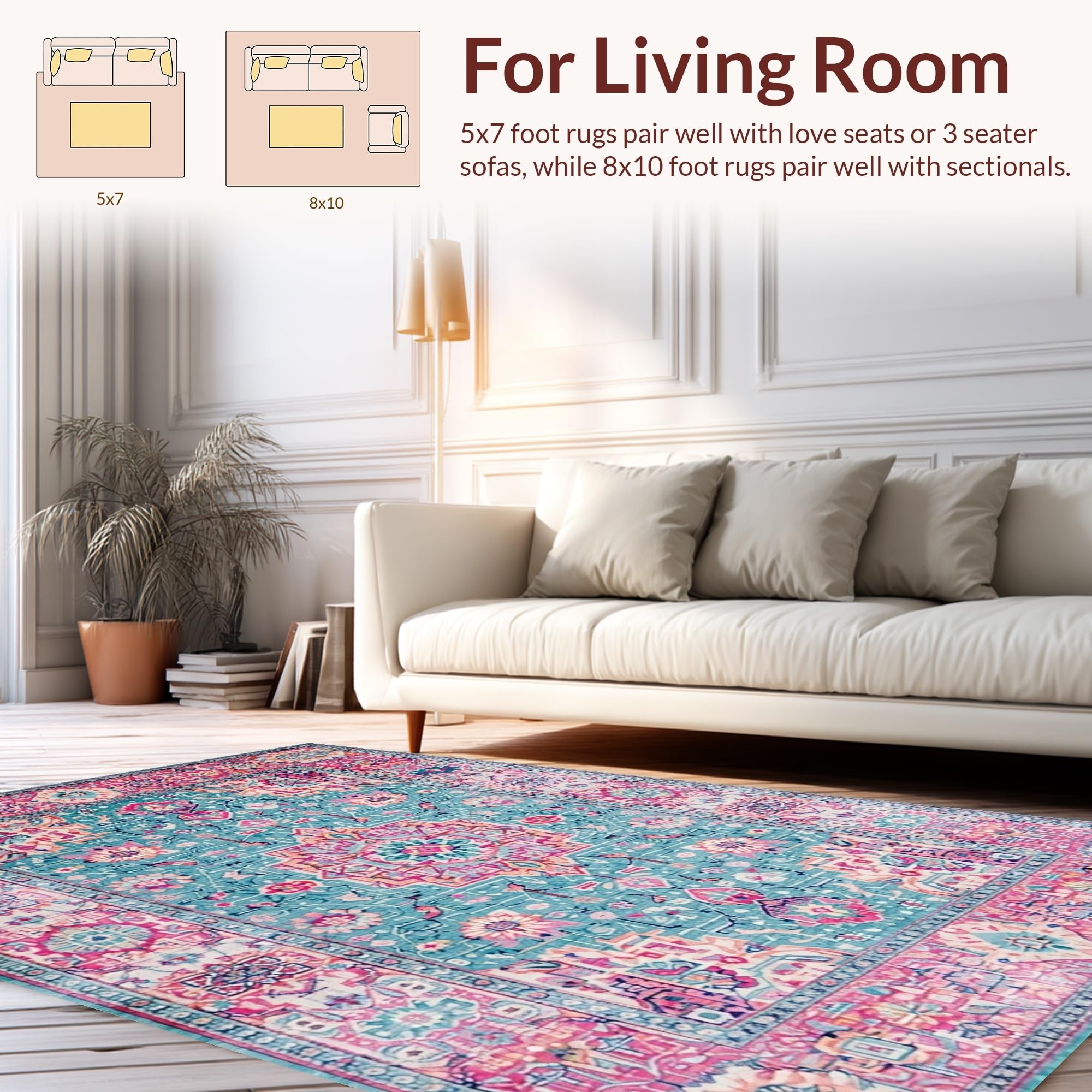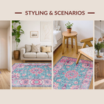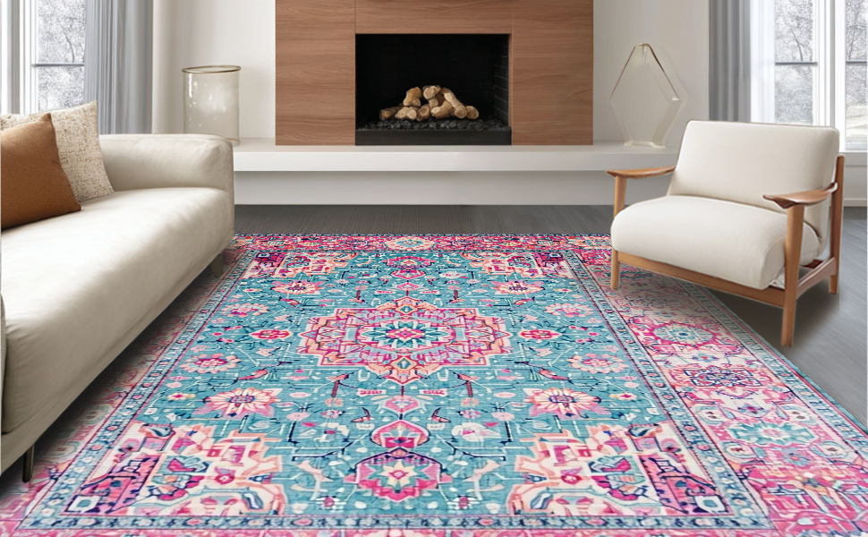 Ultra Soft Area Rug, Non Slip, Stain Resistant, Washable Area Rugs for Living Room, Bedroom, Artful Colorful Medallion Pattern(Blue) Overview:
