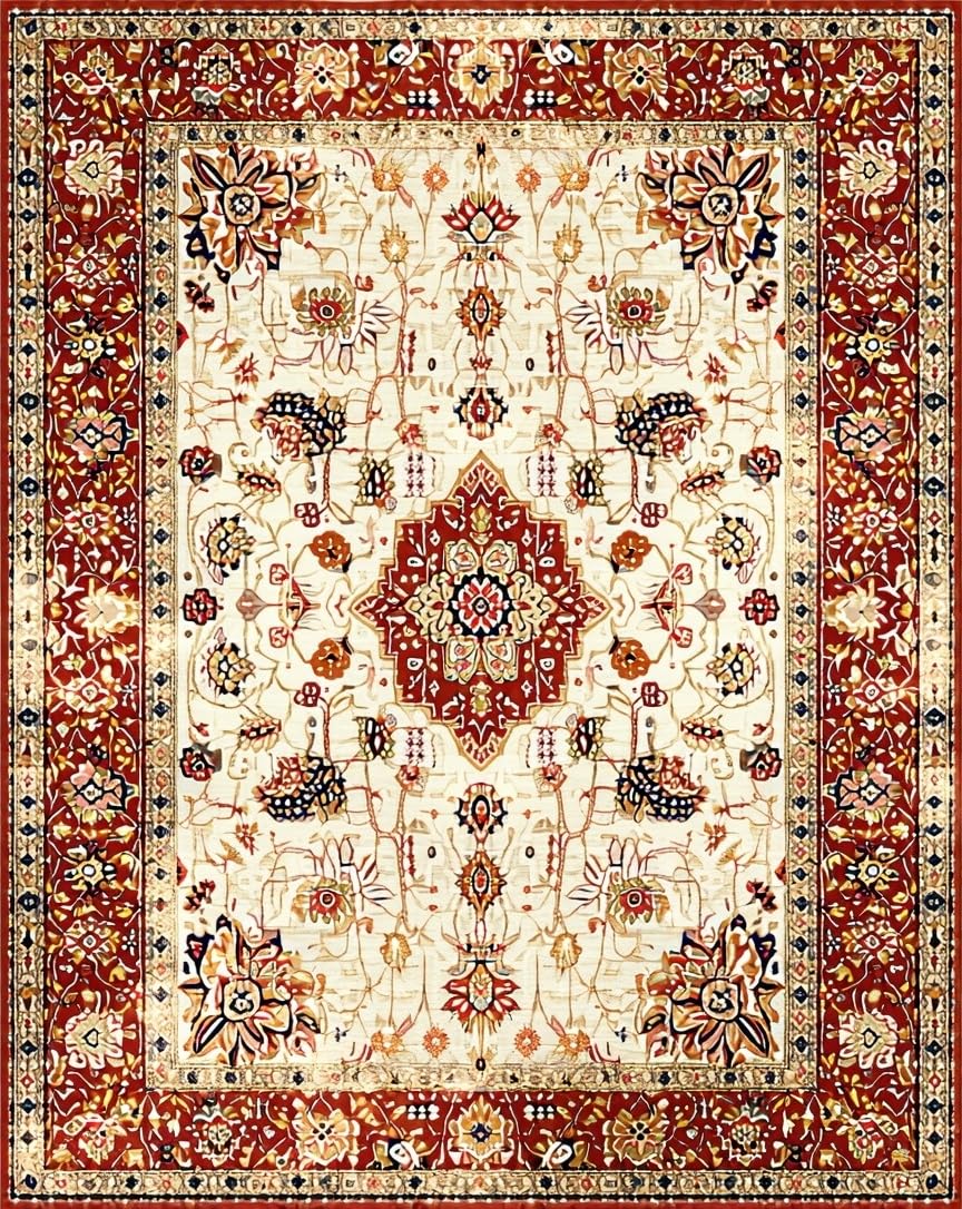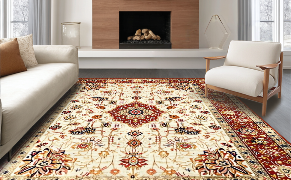 Ultra Soft Area Rug, Non Slip, Stain Resistant, Washable Area Rugs for Living Room, Bedroom, Artful Colorful Medallion Style(Beige) Overview: