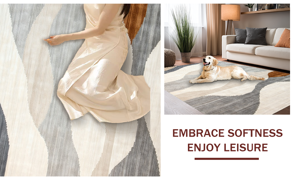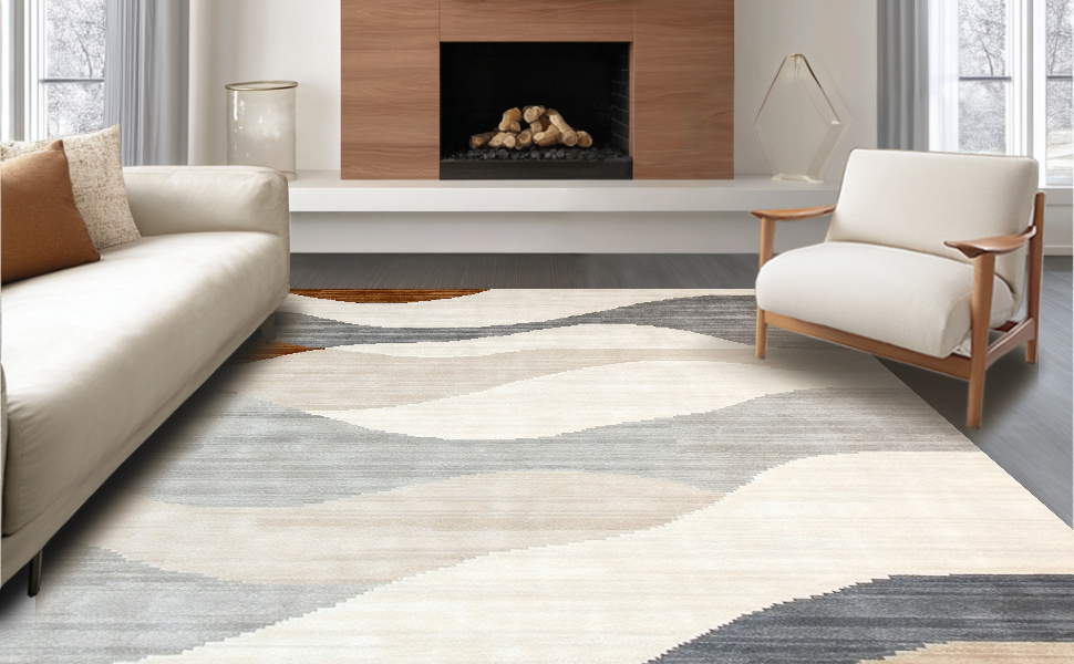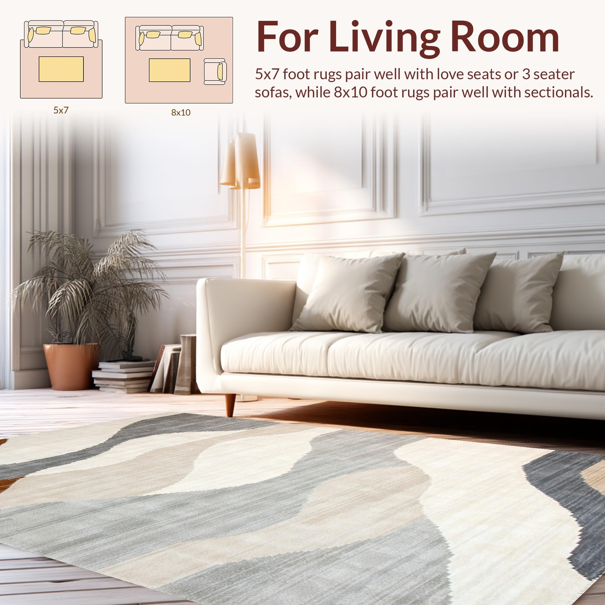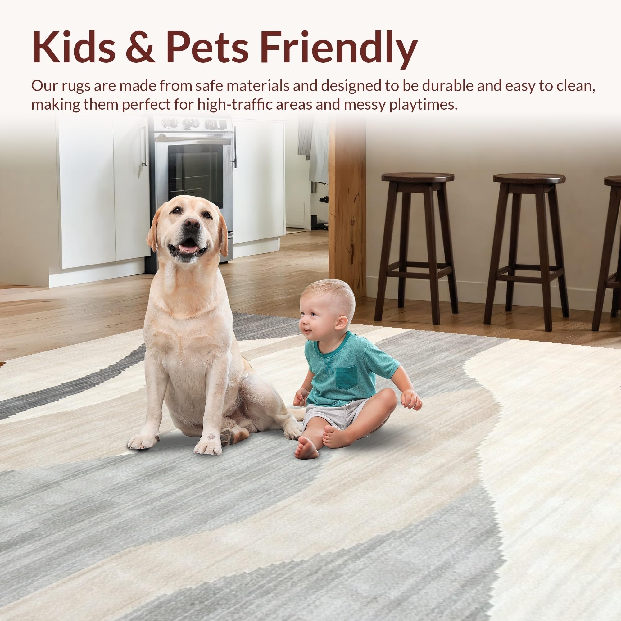 Ultra Soft Area Rug, Non Slip, Stain Resistant, Washable Area Rugs for Living Room, Bedroom, Artful Contemporary Linear Design(Beige) Overview: