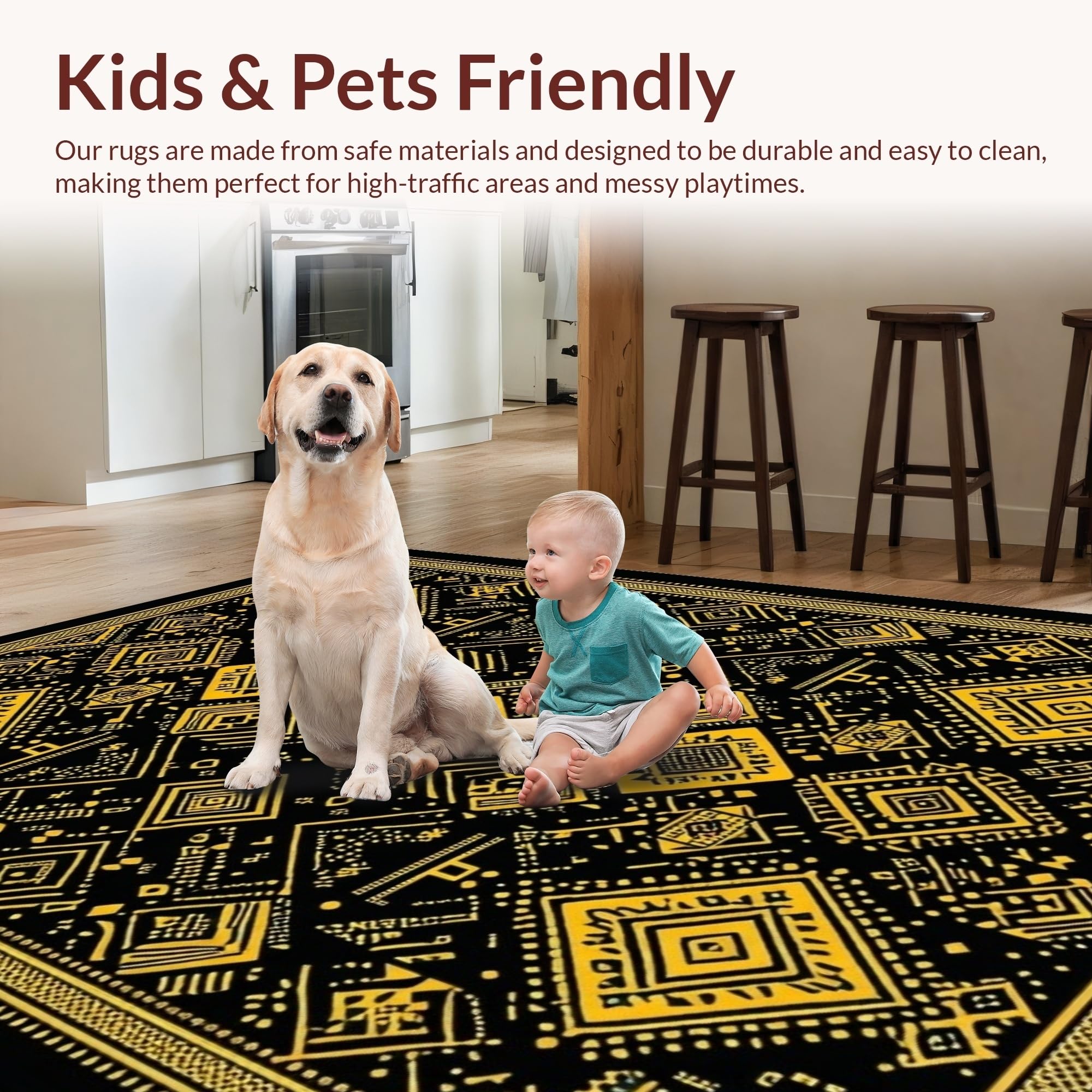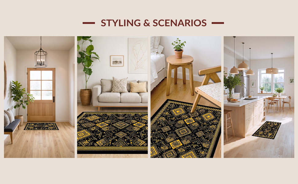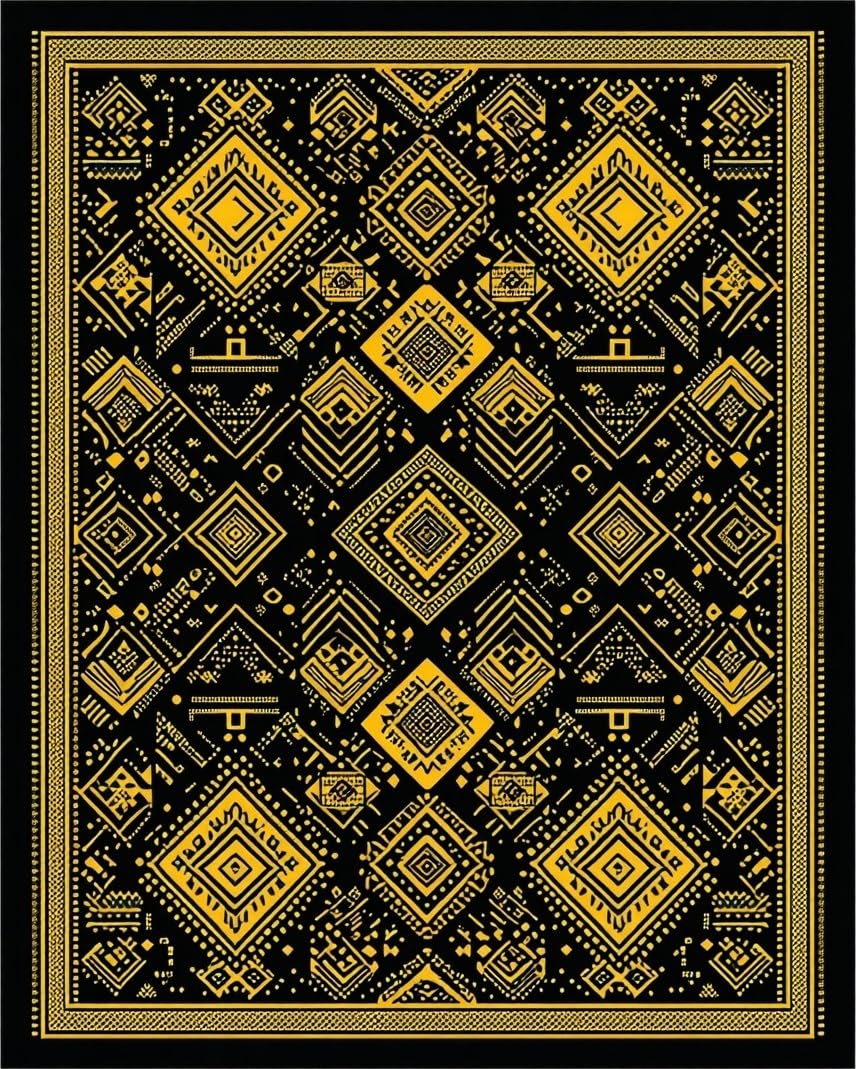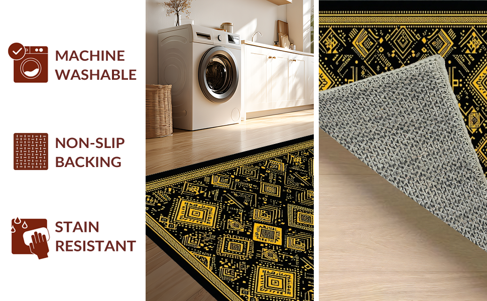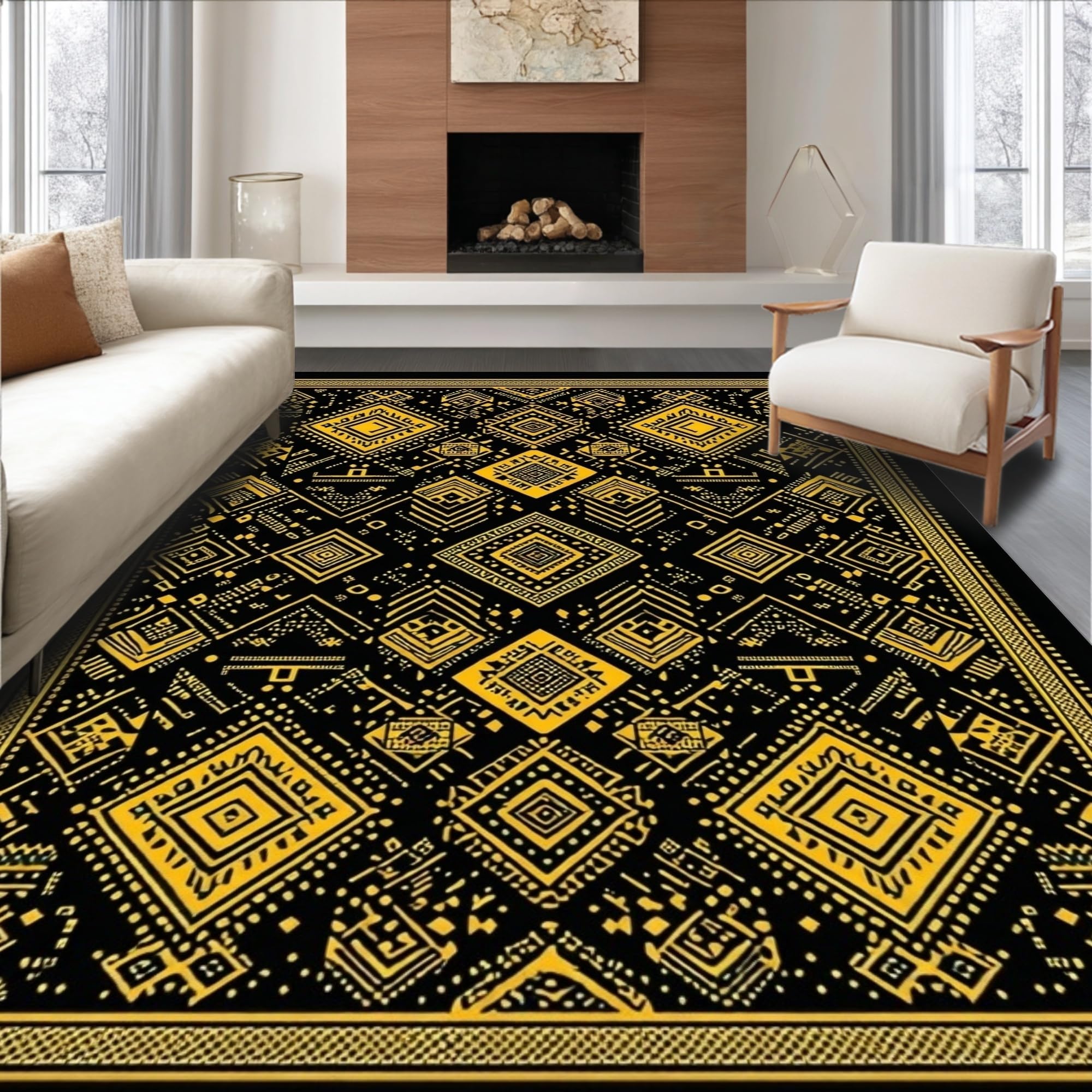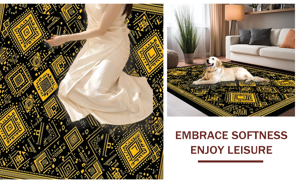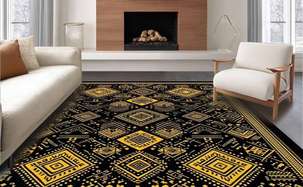 Ultra Soft Area Rug, Non Slip, Stain Resistant, Washable Area Rugs for Living Room, Bedroom, Artful Contemporary Symmetrical Design(Black) Overview: