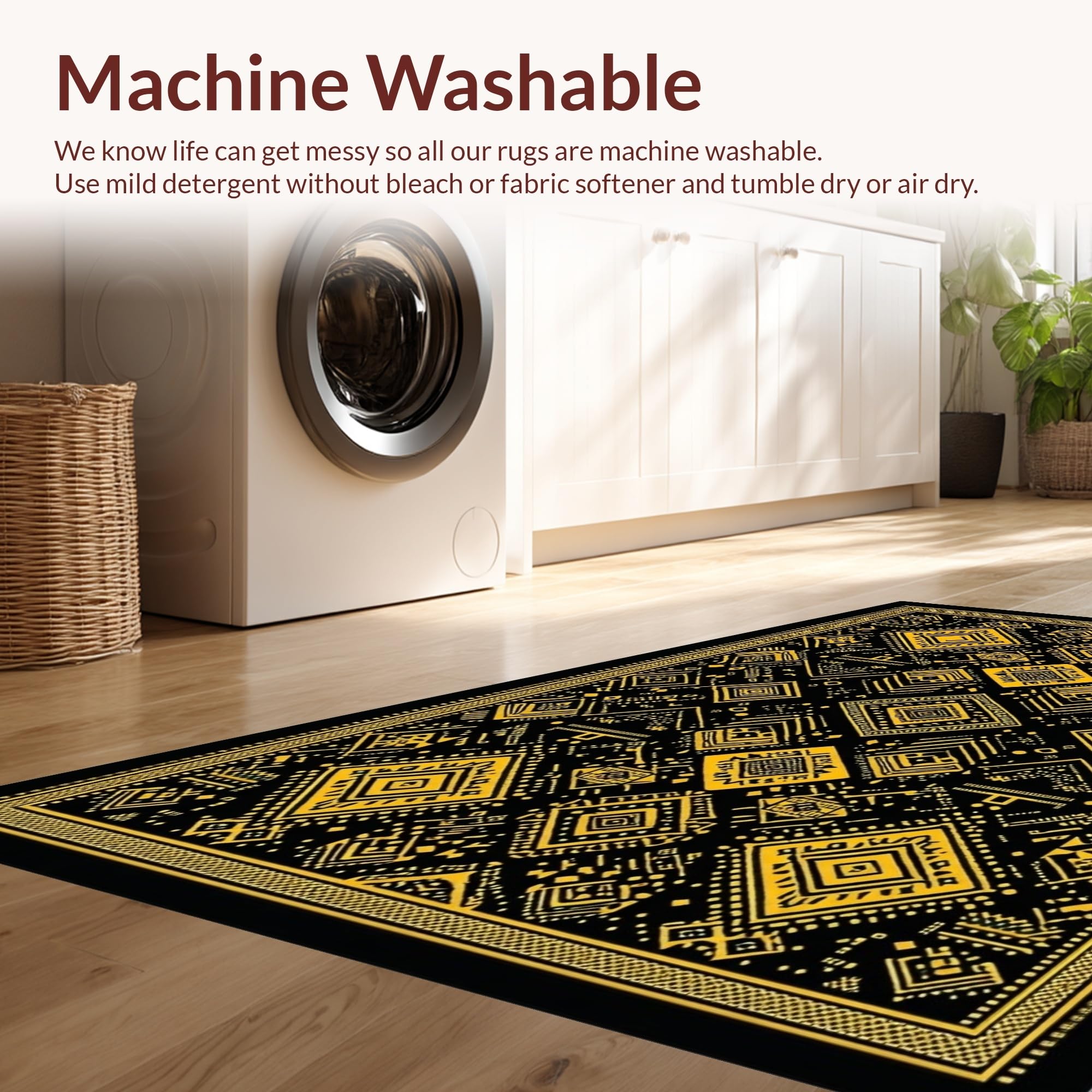 - Machine Washable: Our rugs can be easily thrown in the wash machine.