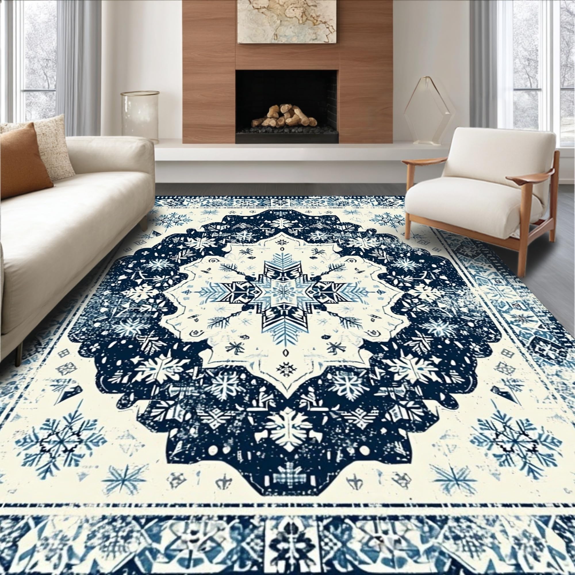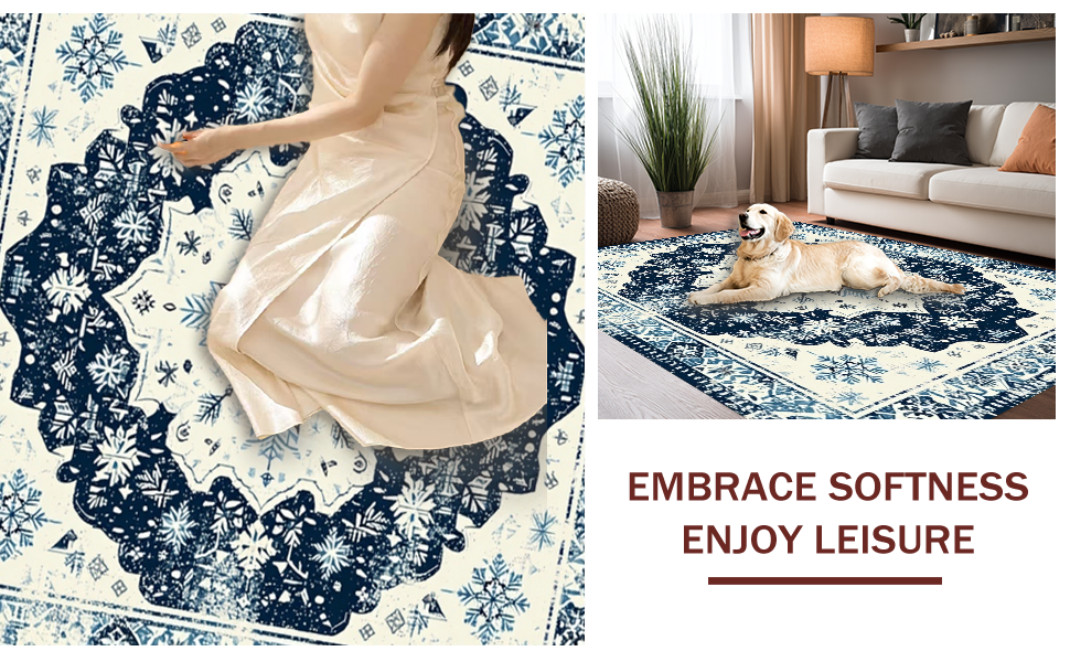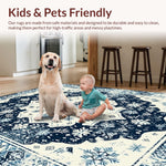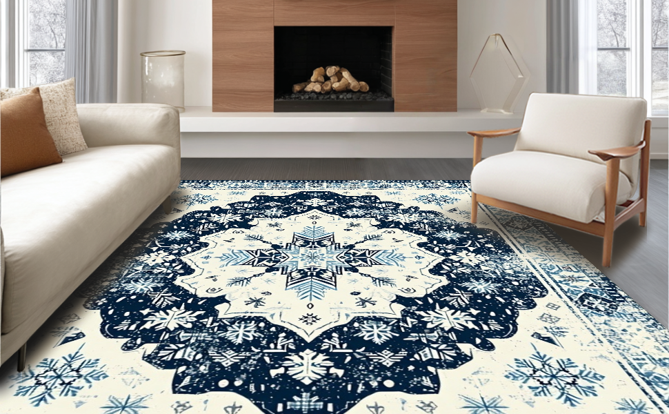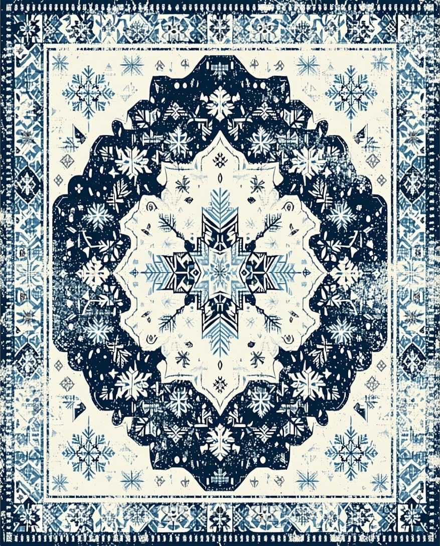 Ultra Soft Area Rug, Non Slip, Stain Resistant, Washable Area Rugs for Living Room, Bedroom, Artful Cream and Navy Trellis(Blue) Overview: