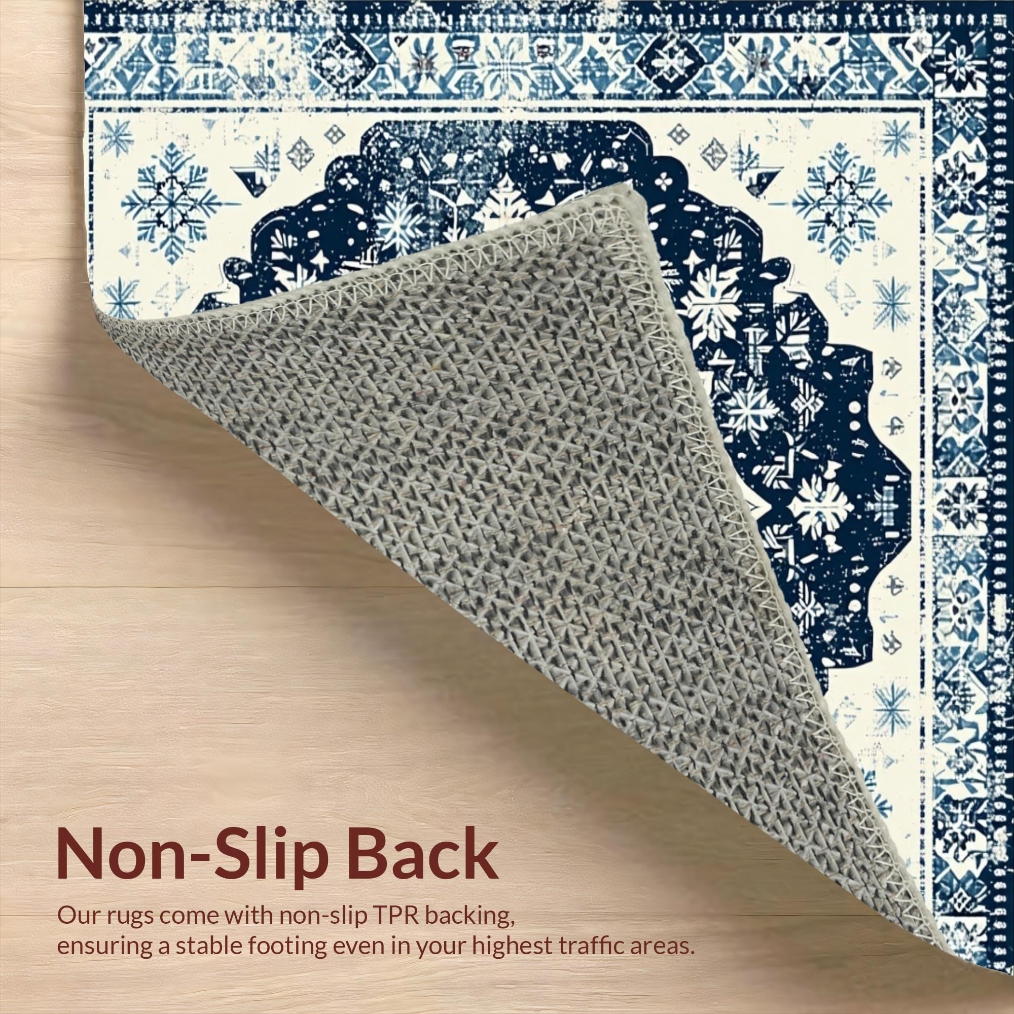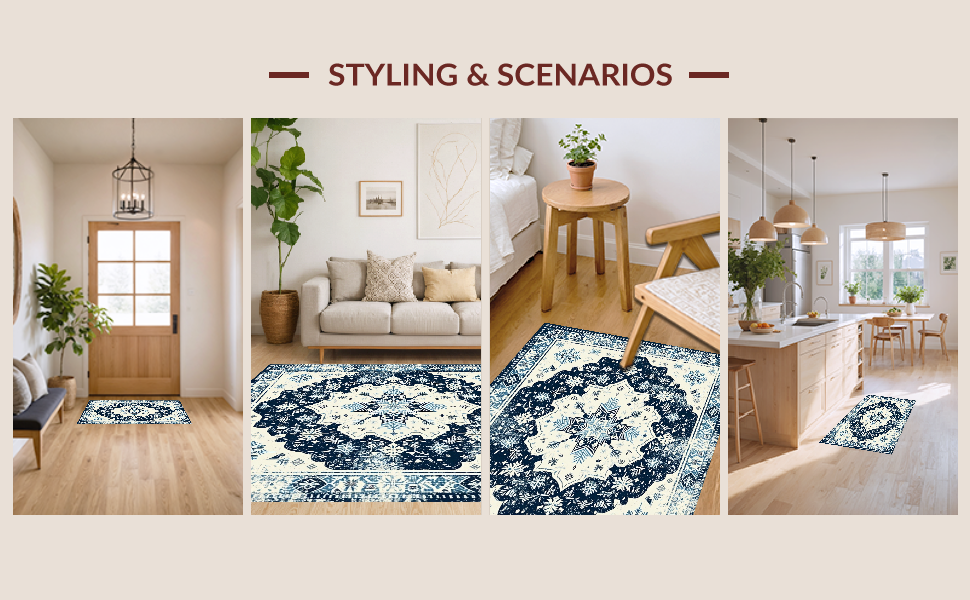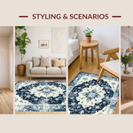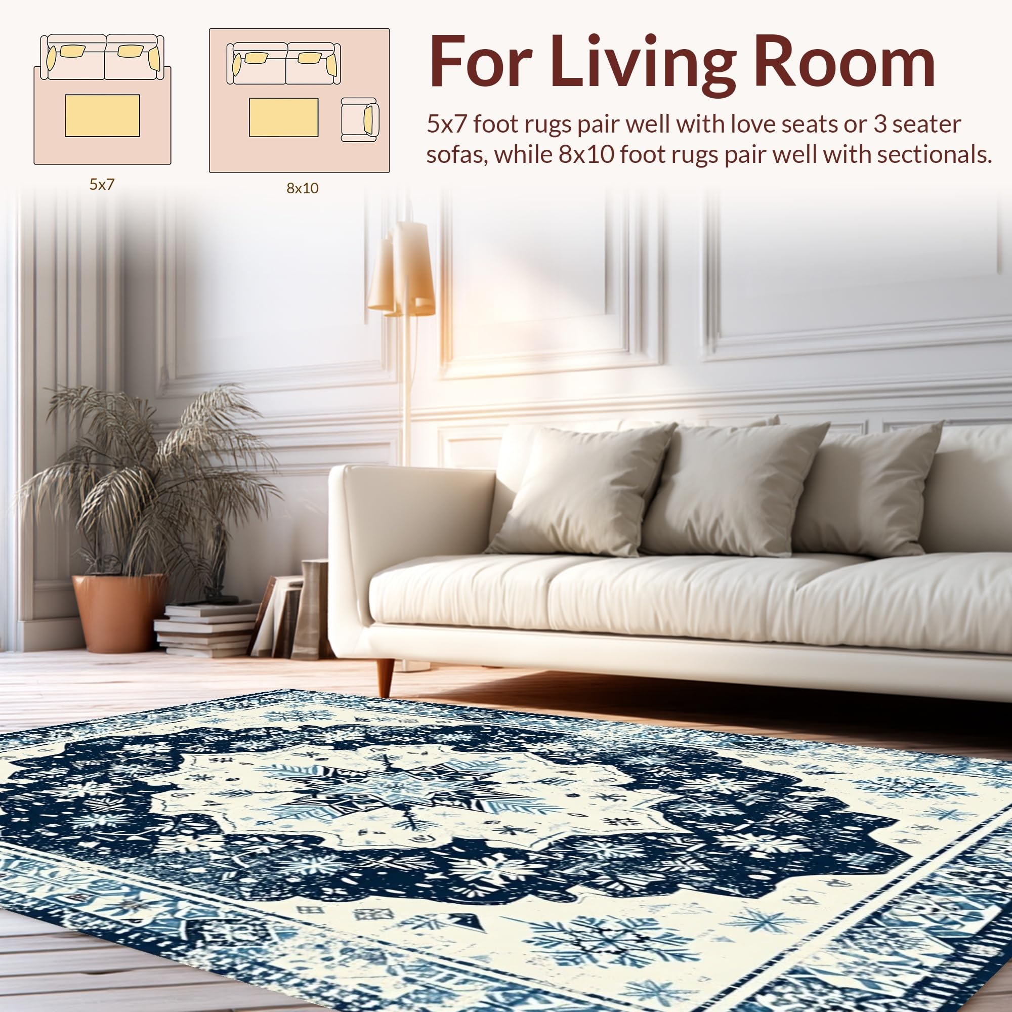 Ultra Soft Area Rug, Non Slip, Stain Resistant, Washable Area Rugs for Living Room, Bedroom, Artful Cream and Navy Trellis(Blue) Overview: