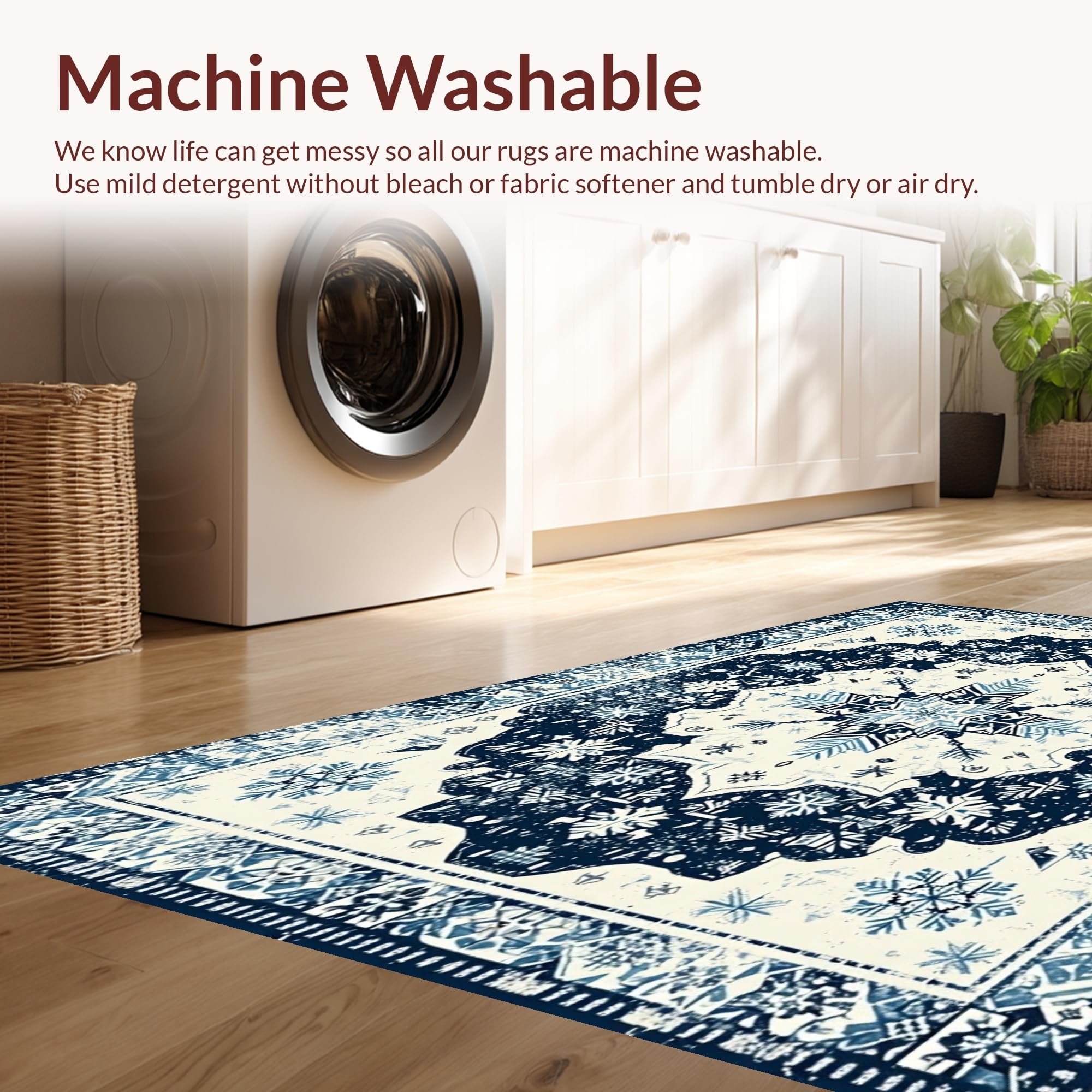 - Machine Washable: Our rugs can be easily thrown in the wash machine.