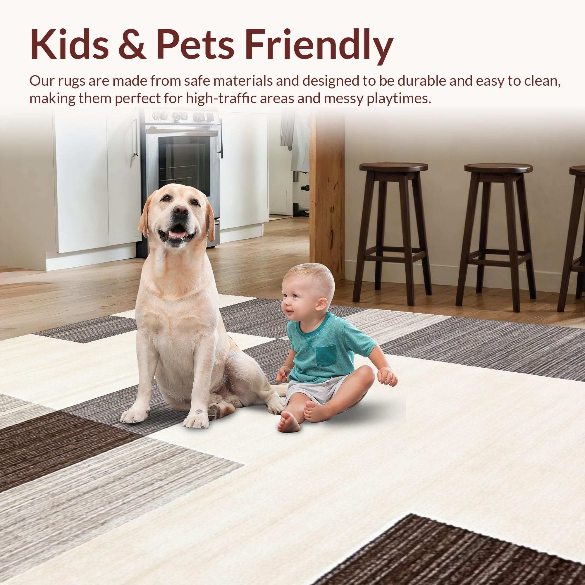 Ultra Soft Area Rug, Non Slip, Stain Resistant, Washable Area Rugs for Living Room, Bedroom, Artful Cream Medallion Layout(Beige) Overview: