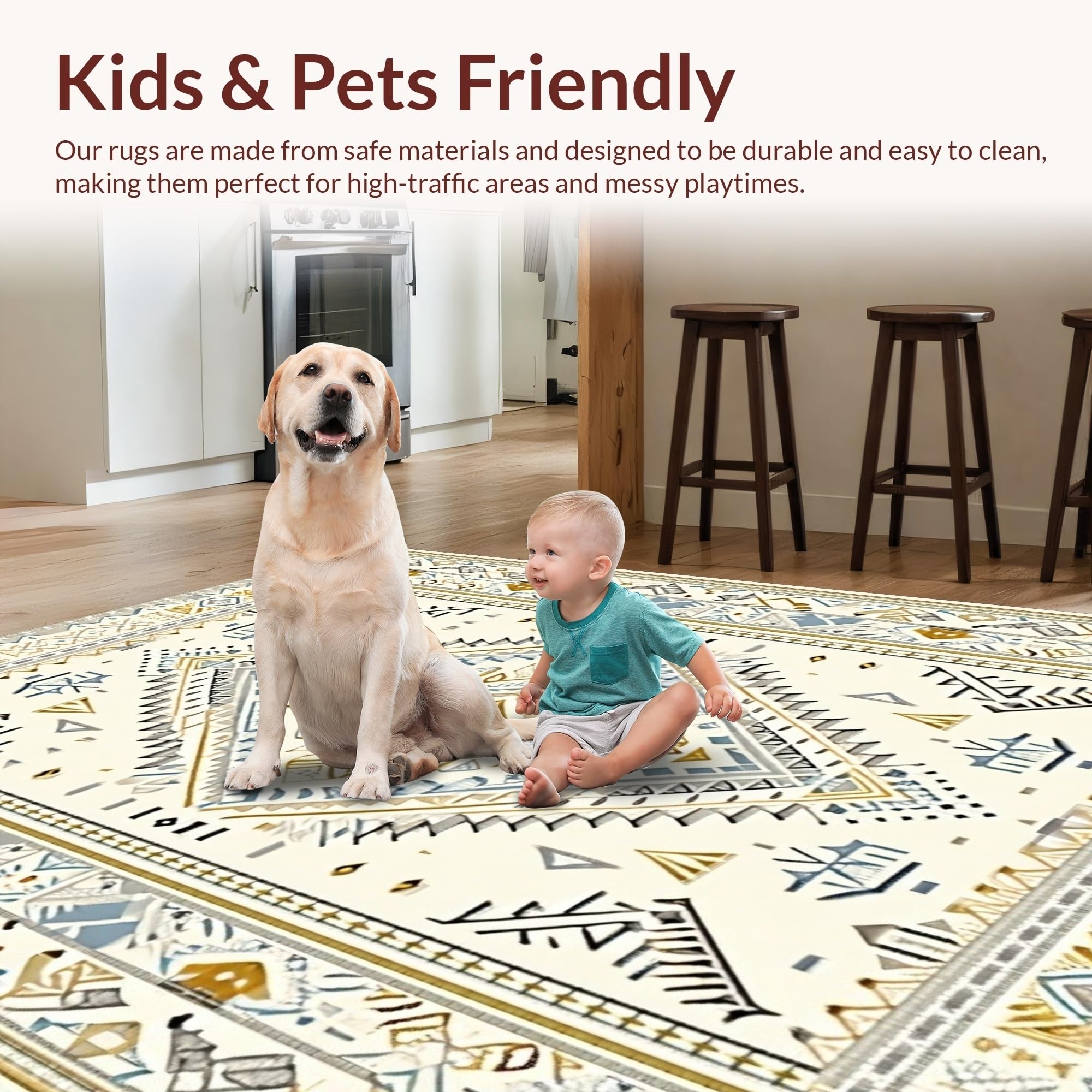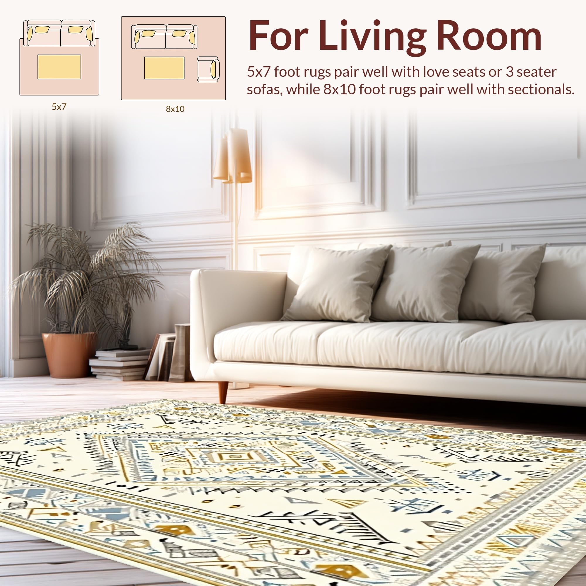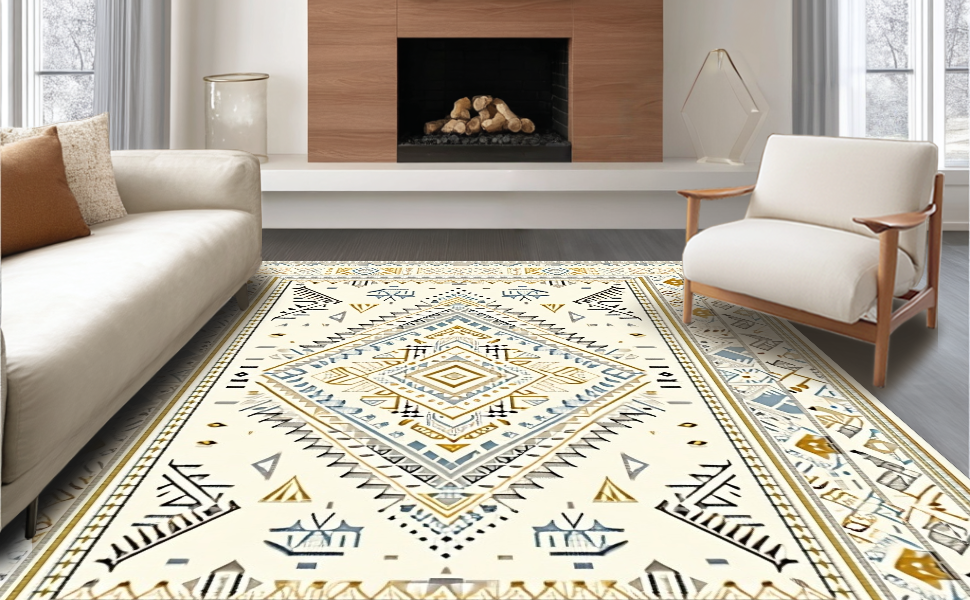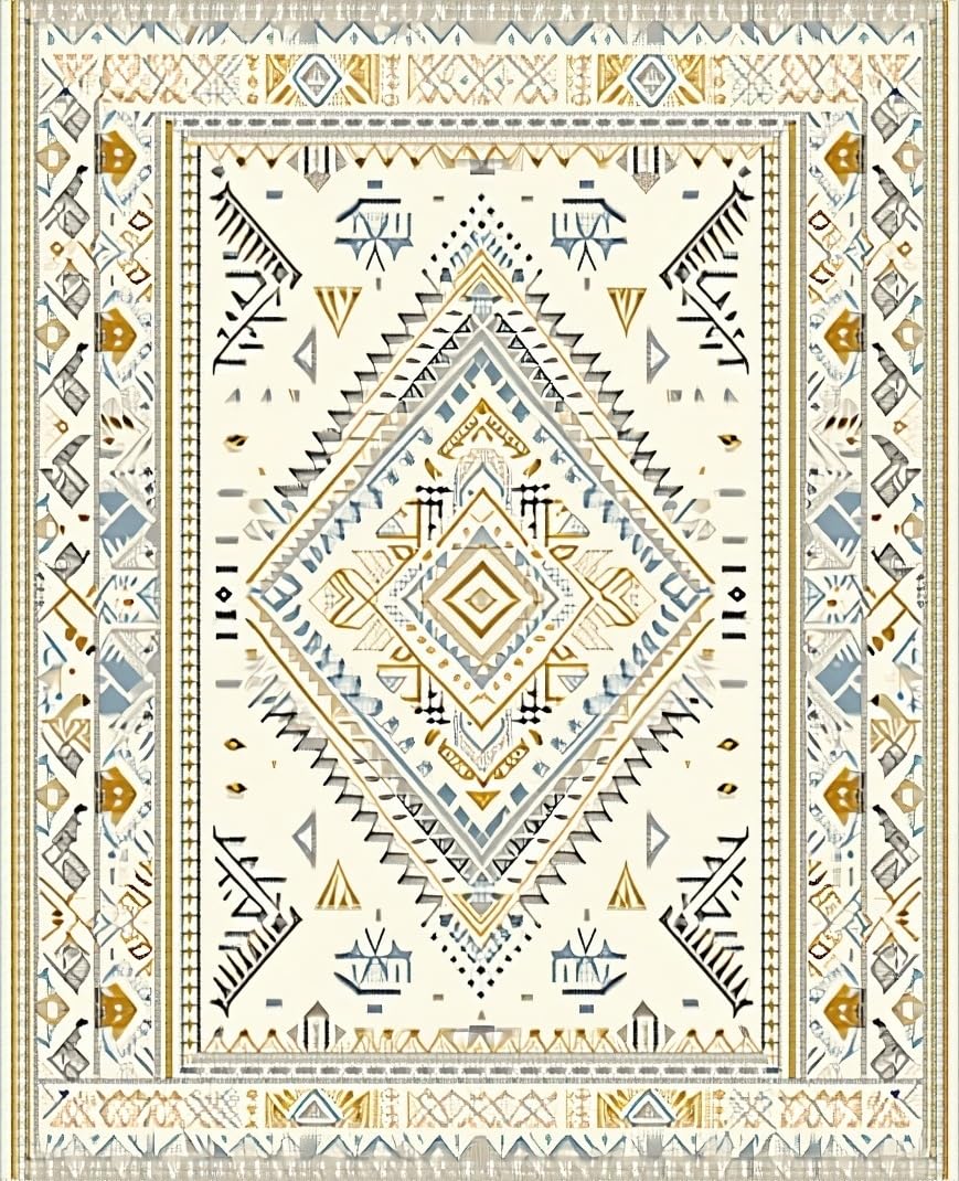 Ultra Soft Area Rug, Non Slip, Stain Resistant, Washable Area Rugs for Living Room, Bedroom, Artful Creamy Medallion Theme(Beige) Overview: