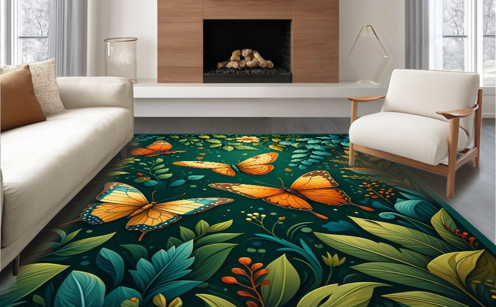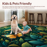 Ultra Soft Area Rug, Non Slip, Stain Resistant, Washable Area Rugs for Living Room, Bedroom, Artful Dark Green Floral Palette(Green) Overview: