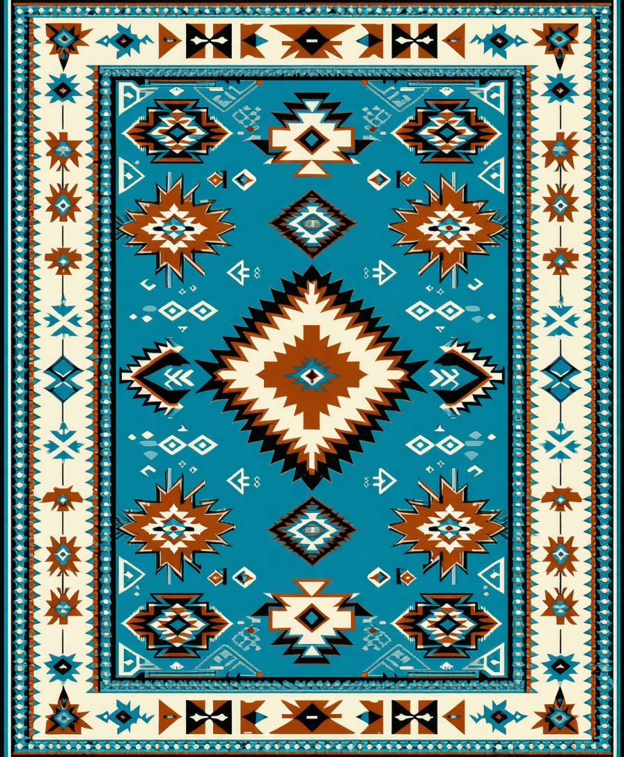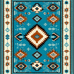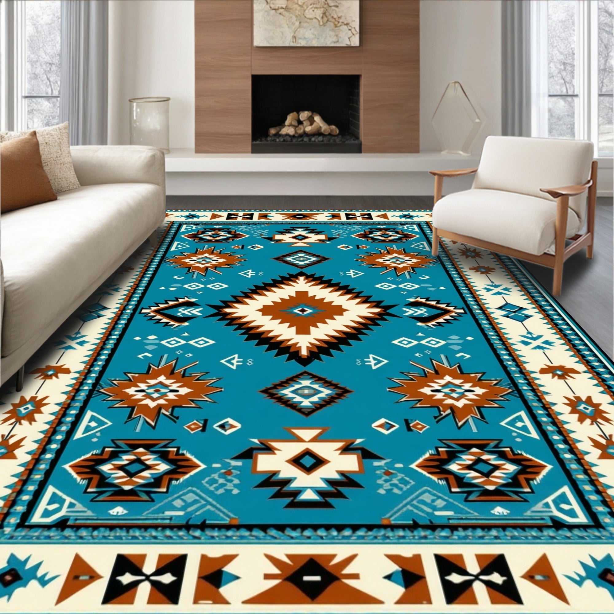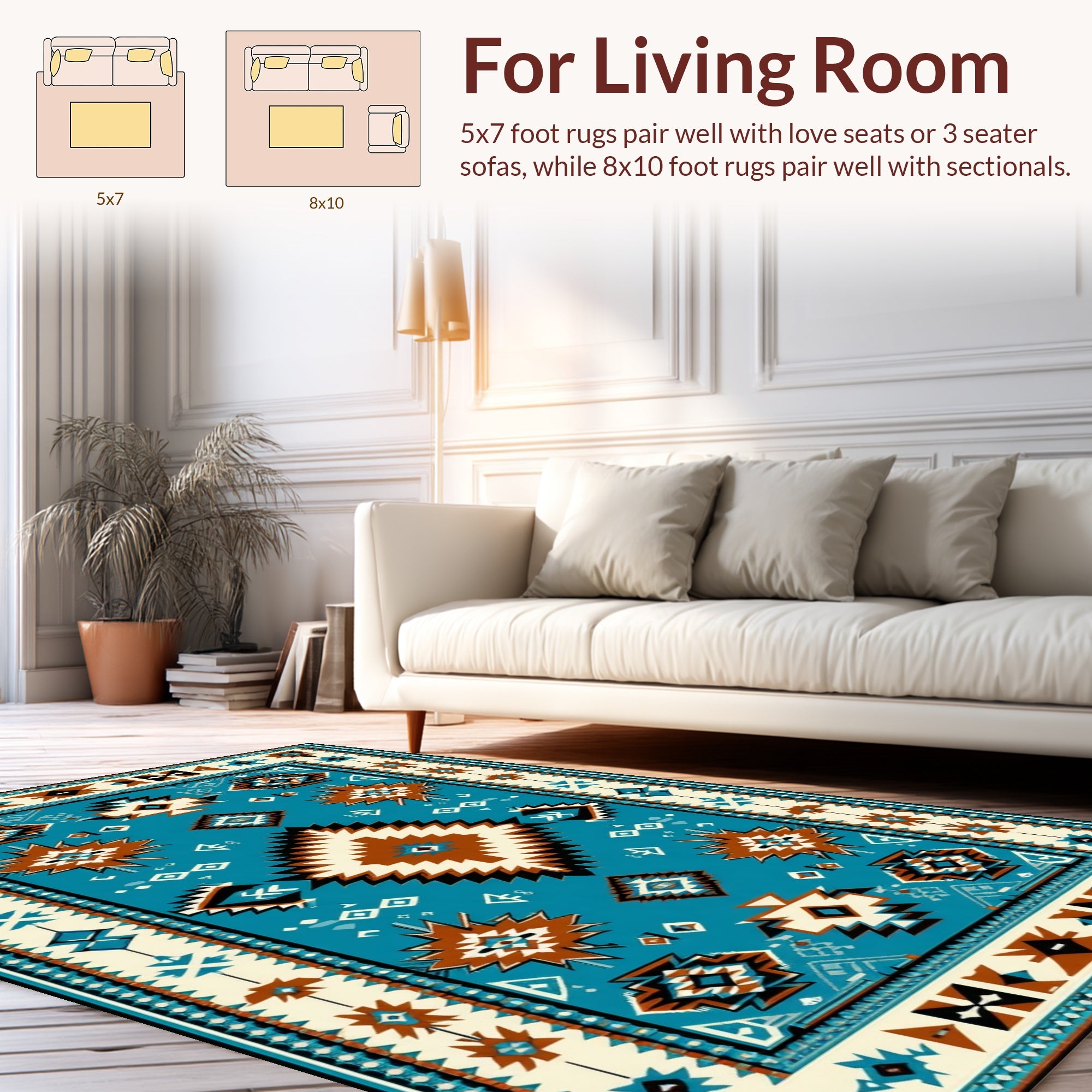 Flatwoven High Traffic Area Rug, Artful Motif with Southwestern Vibes, Non Slip, Stain Resistant, Washable Area Rugs for Living Room, Bedroom (Blue) Overview: