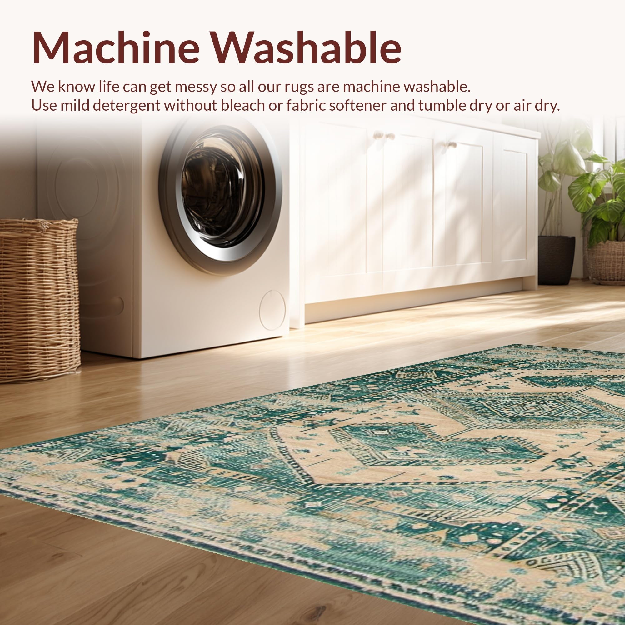 - Machine Washable: Our rugs can be easily thrown in the wash machine.