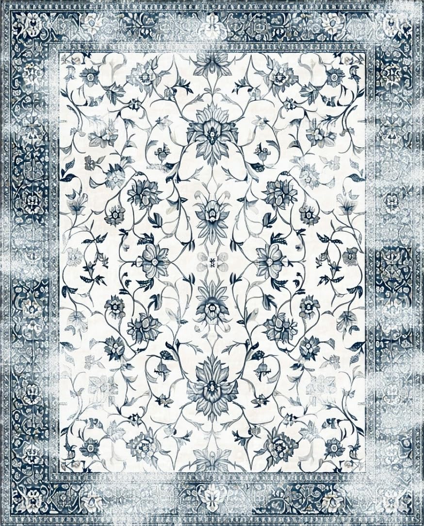 Ultra Soft Area Rug, Non Slip, Stain Resistant, Washable Area Rugs for Living Room, Bedroom, Artful Distressed Geometric Aesthetic(White) Overview: