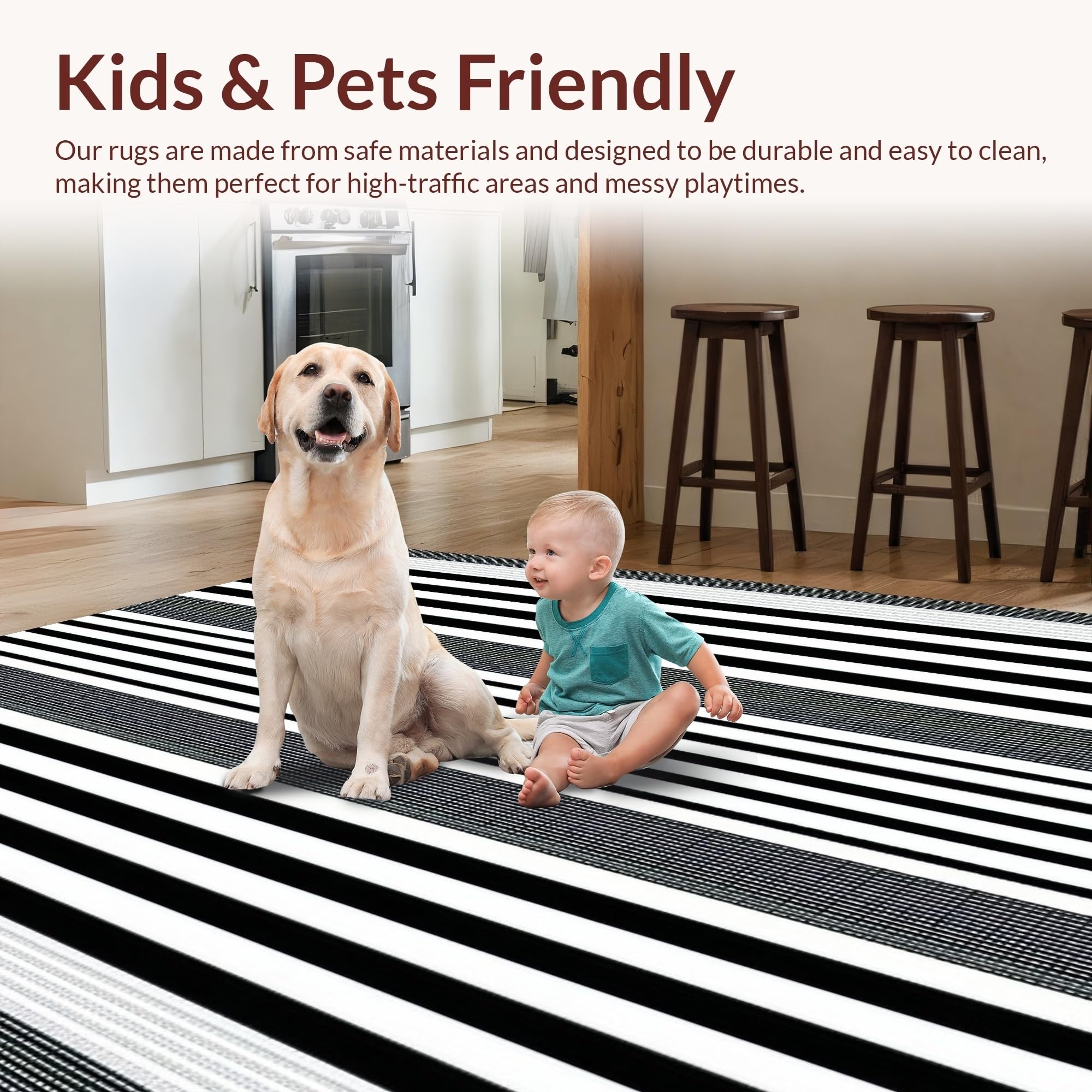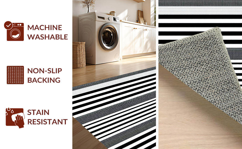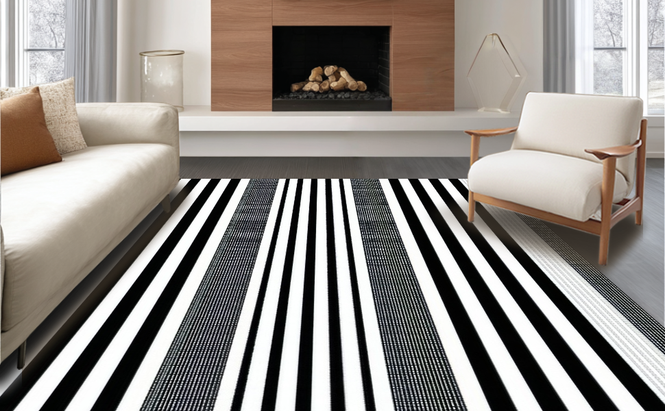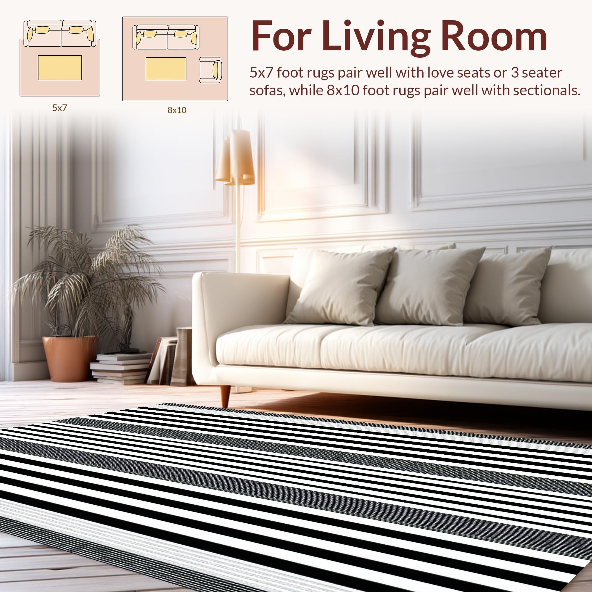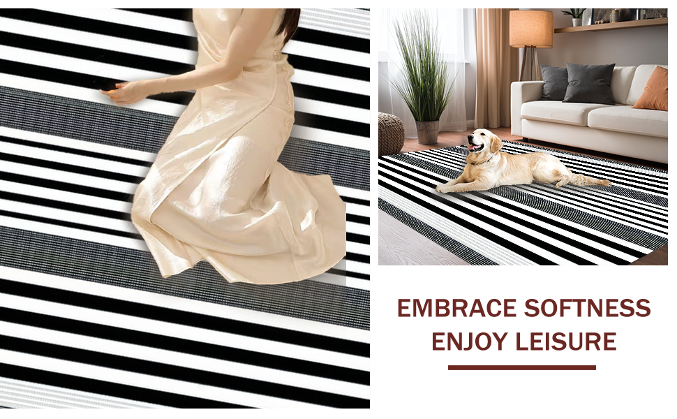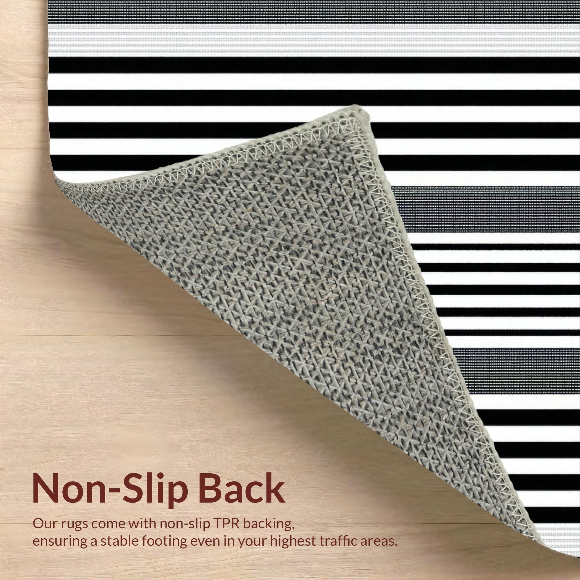 Ultra Soft Area Rug, Non Slip, Stain Resistant, Washable Area Rugs for Living Room, Bedroom, Artful Dual-Tone Horizontal Lines(Black) Overview: