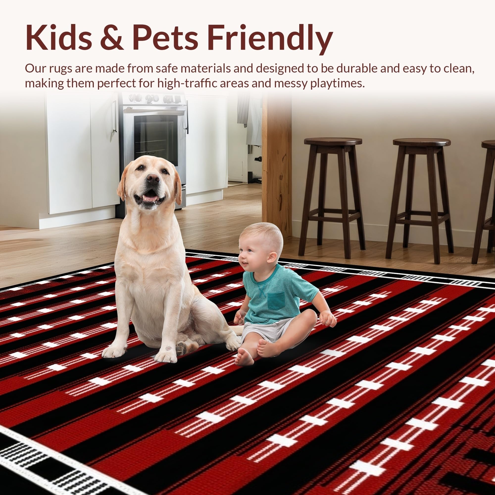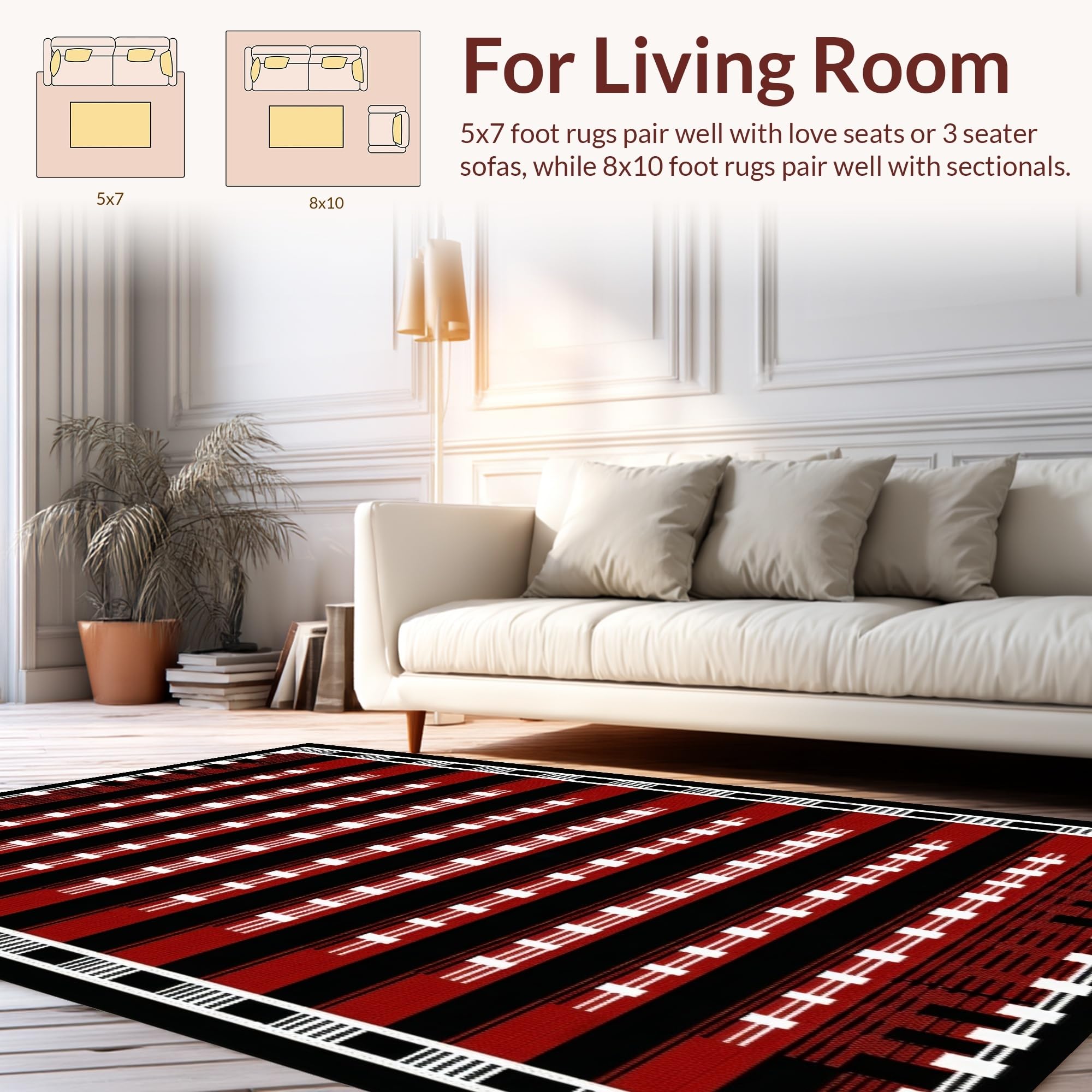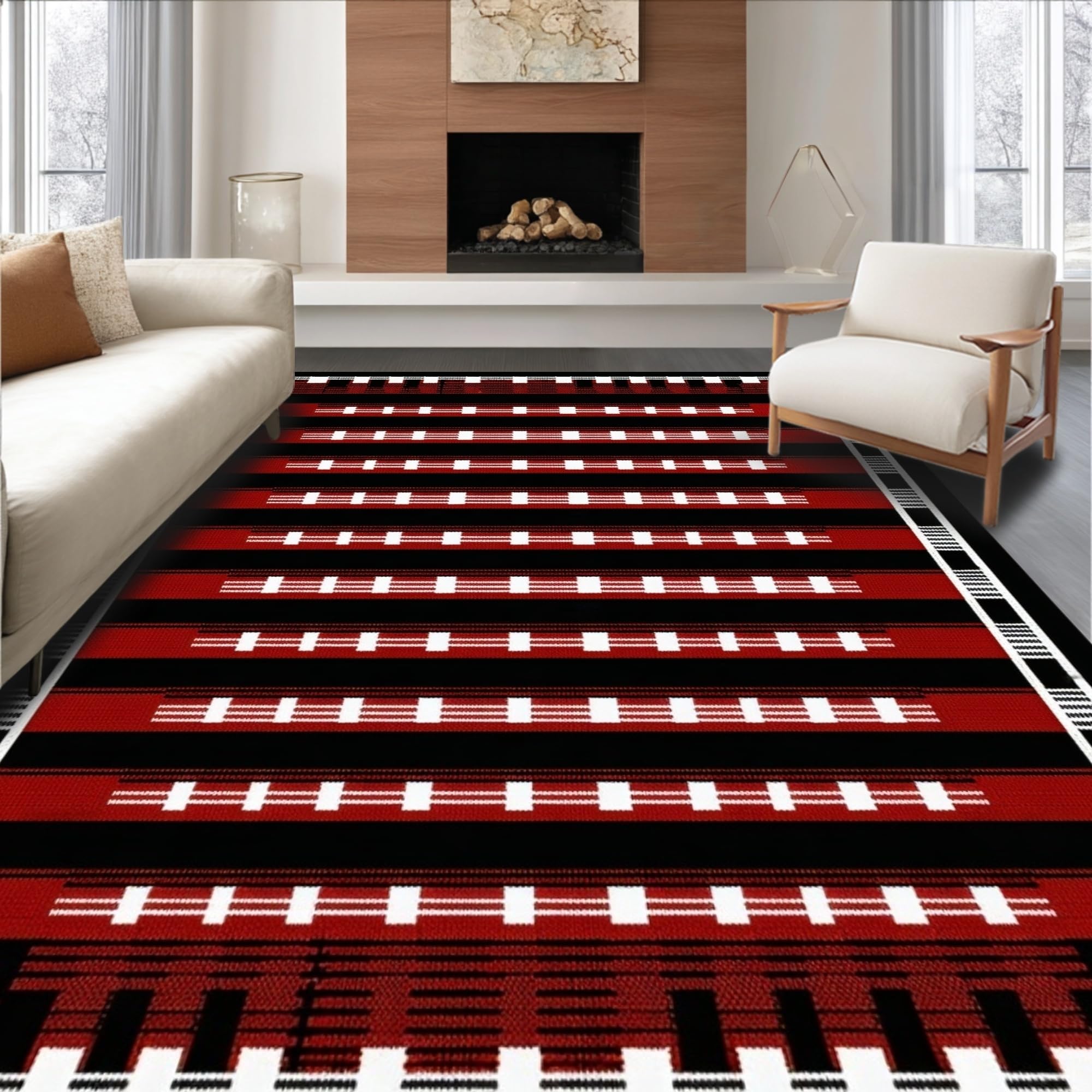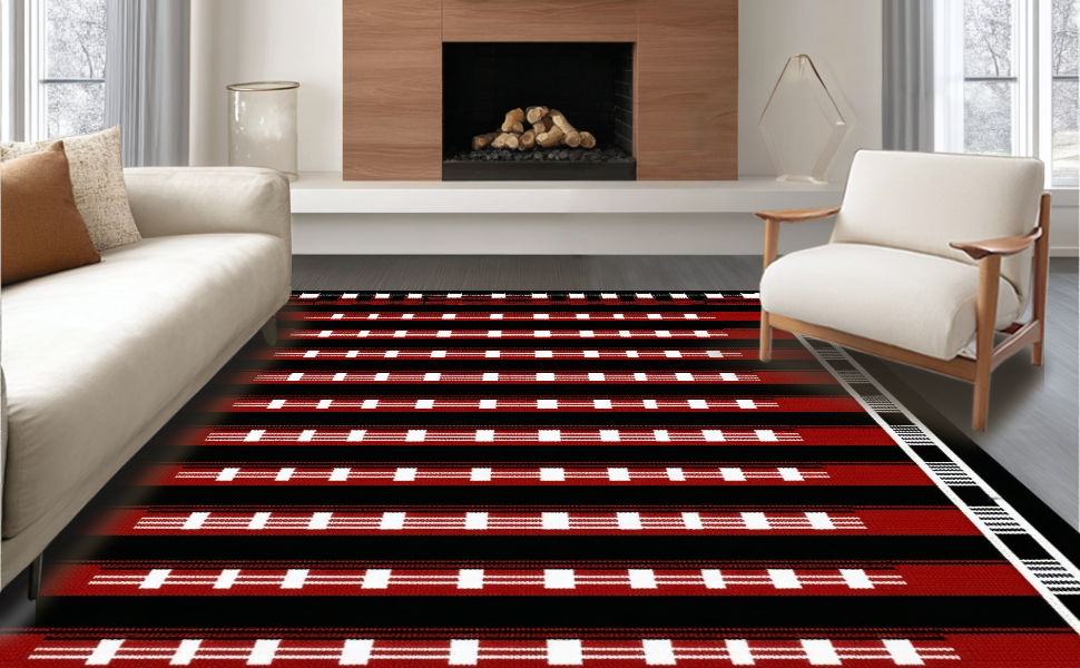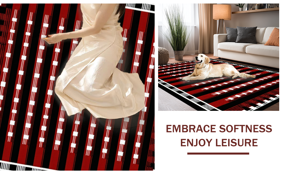 Ultra Soft Area Rug, Non Slip, Stain Resistant, Washable Area Rugs for Living Room, Bedroom, Artful Dynamic Dual Game Surface(Red) Overview: