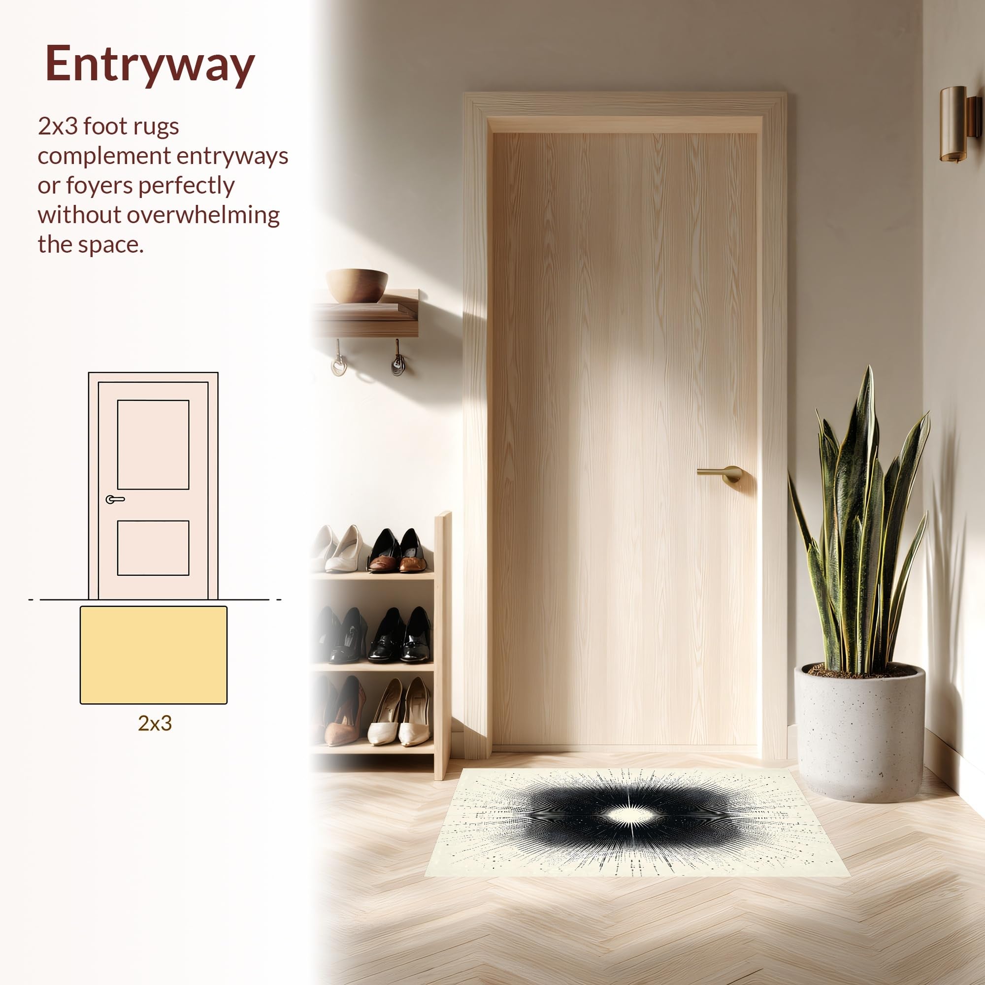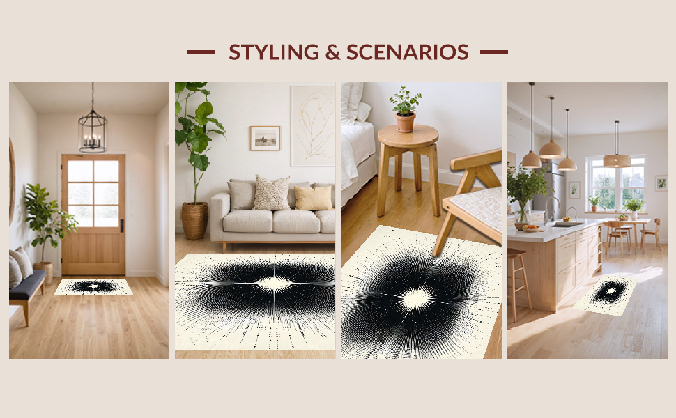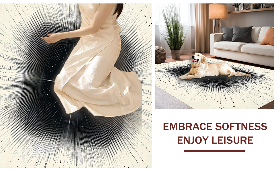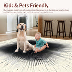 Ultra Soft Area Rug, Non Slip, Stain Resistant, Washable Area Rugs for Living Room, Bedroom, Artful Dynamic Linear Pattern Arrangement(Black) Overview: