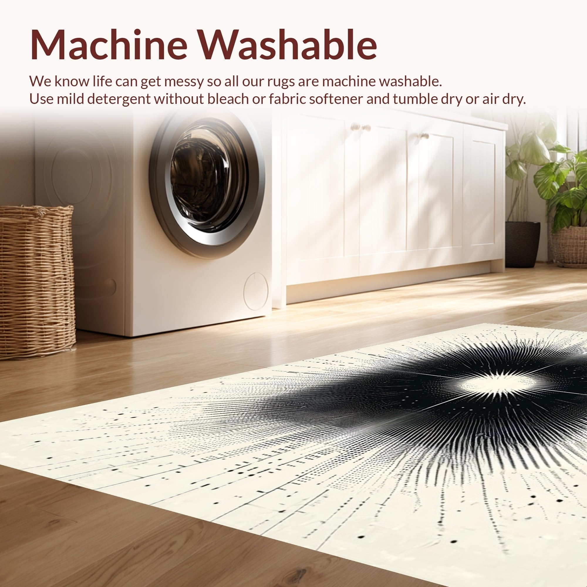 - Machine Washable: Our rugs can be easily thrown in the wash machine.