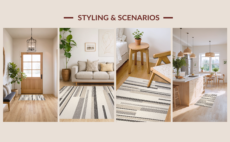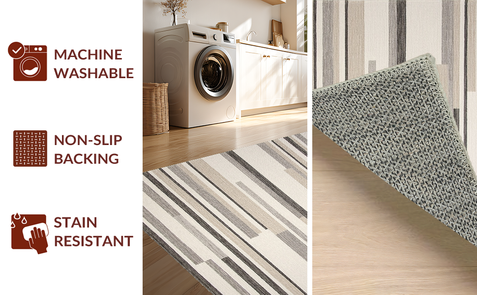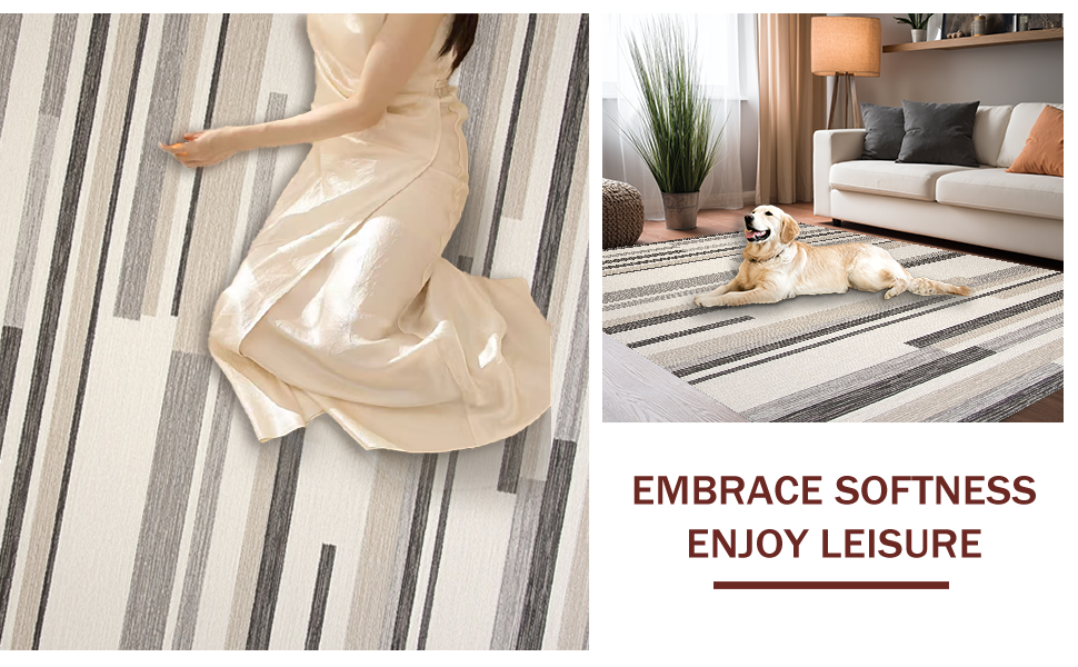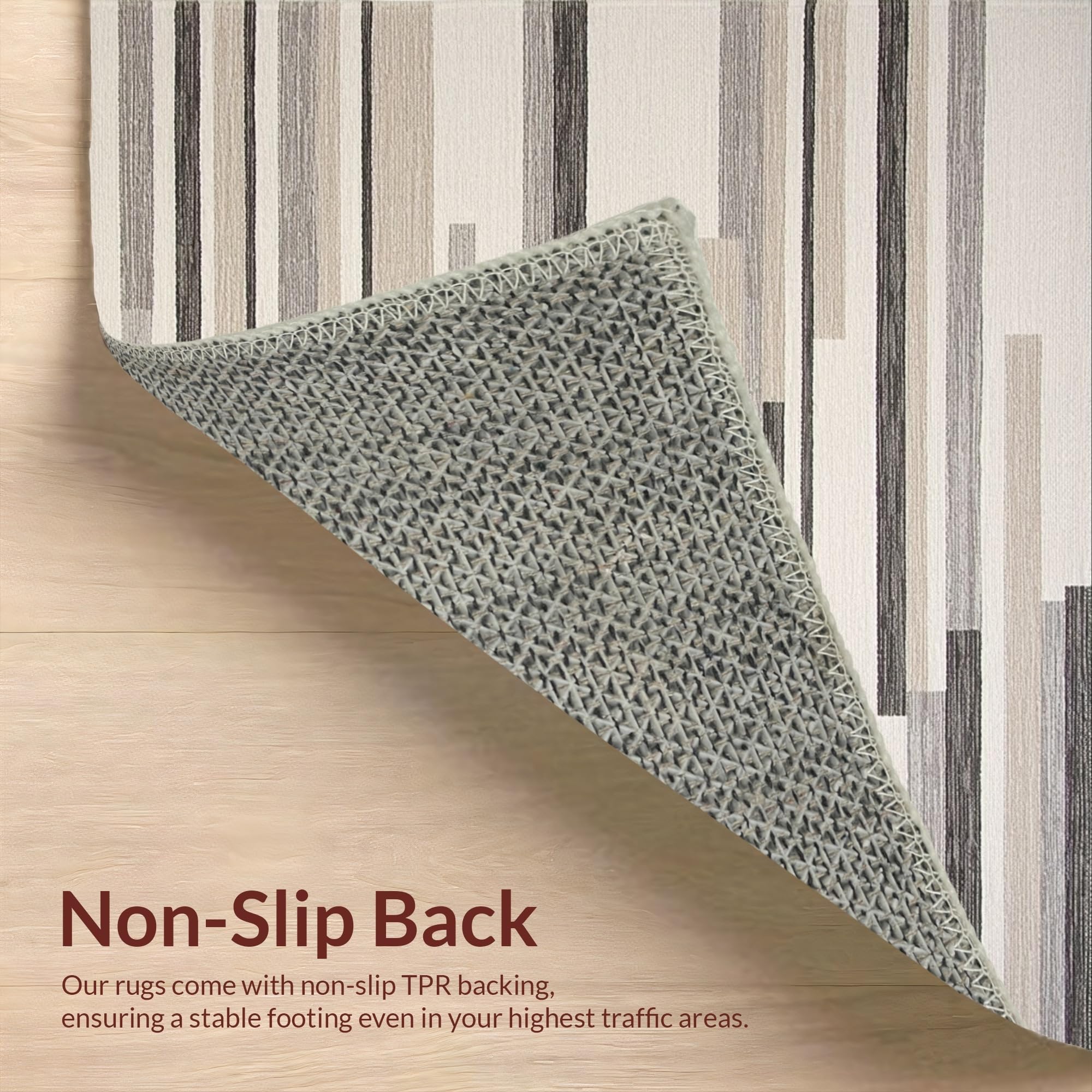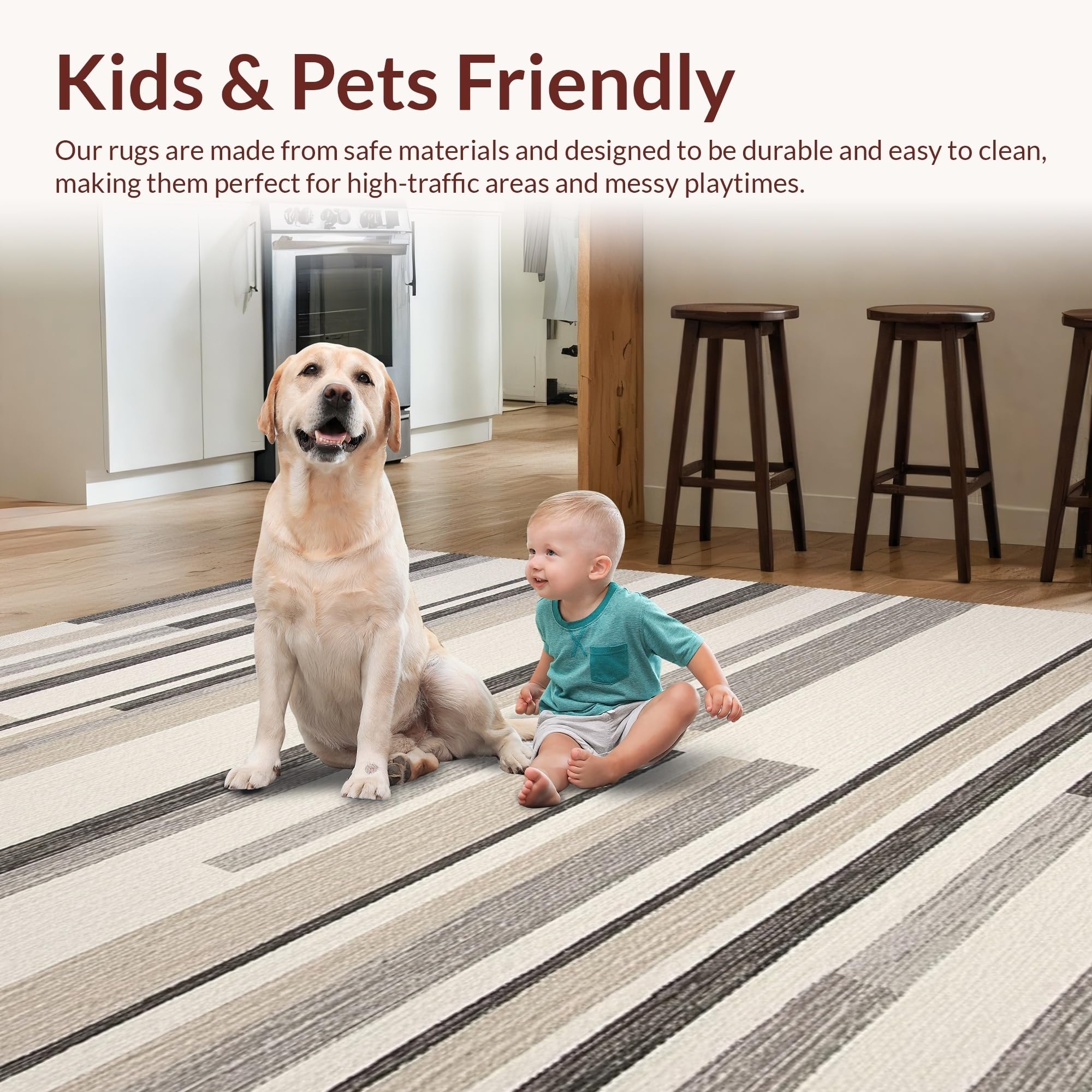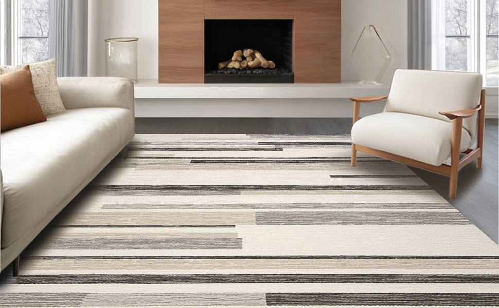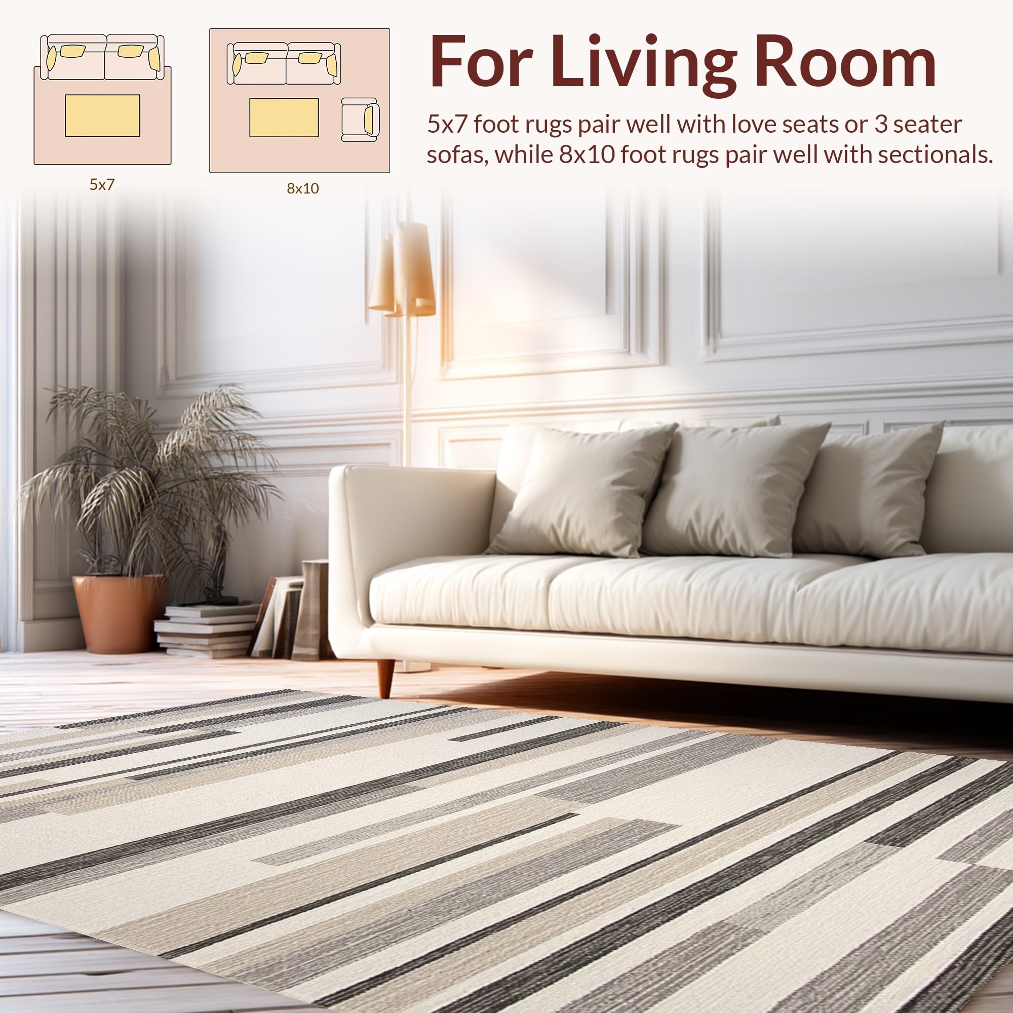 Ultra Soft Area Rug, Non Slip, Stain Resistant, Washable Area Rugs for Living Room, Bedroom, Artful Earthy Abstract Stripes(Beige) Overview: