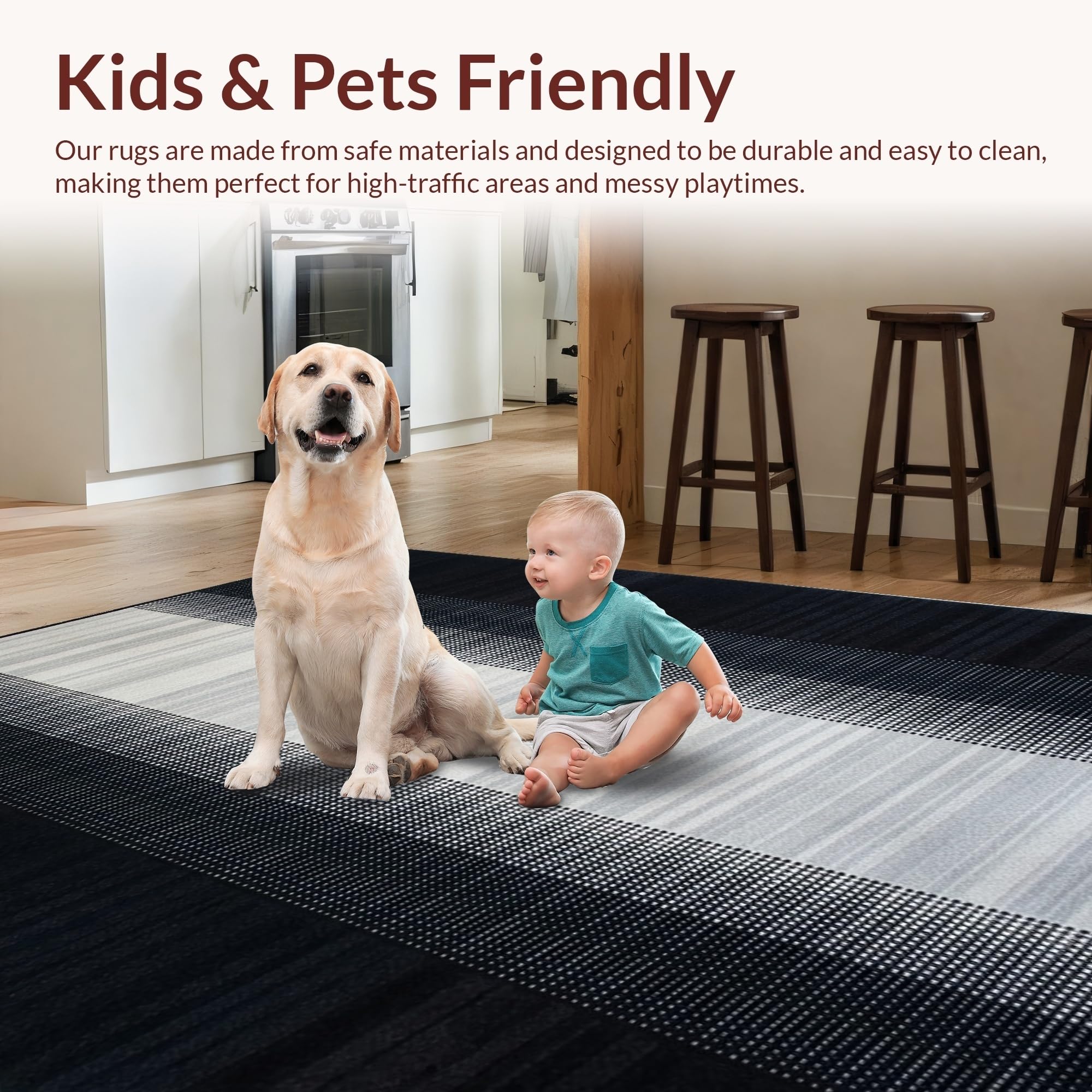 Ultra Soft Area Rug, Non Slip, Stain Resistant, Washable Area Rugs for Living Room, Bedroom, Artful Earthy Tones Shag(Black) Overview: