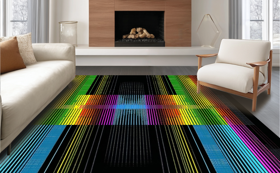 Ultra Soft Area Rug, Non Slip, Stain Resistant, Washable Area Rugs for Living Room, Bedroom, Artful Eclectic Color Fusion(Blue) Overview: