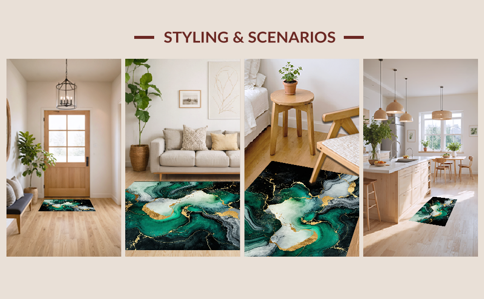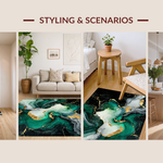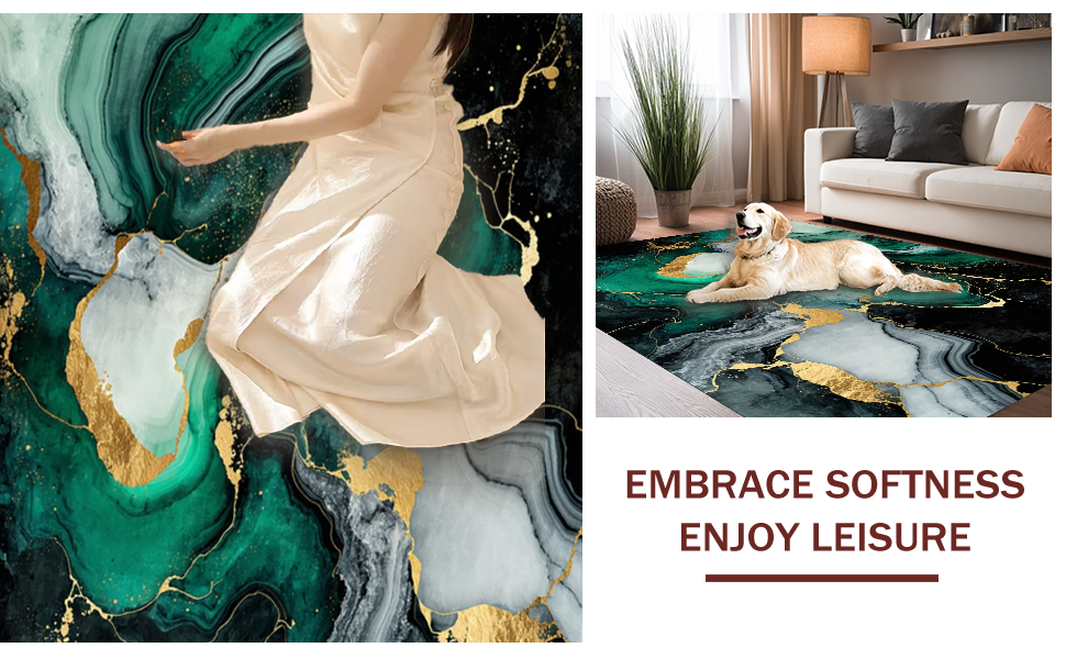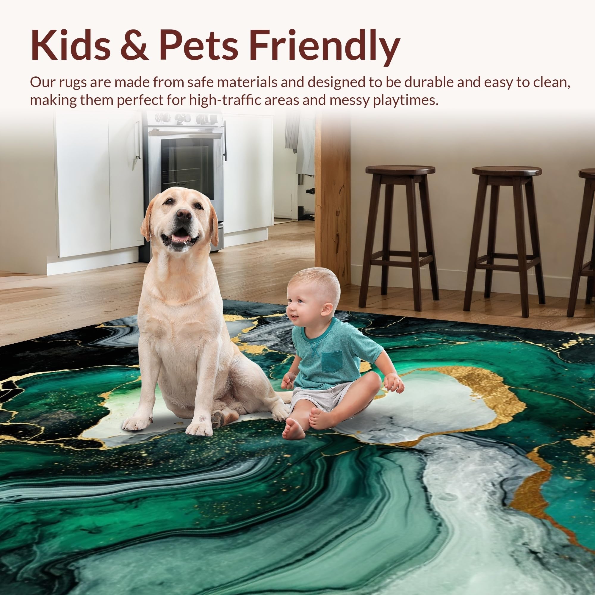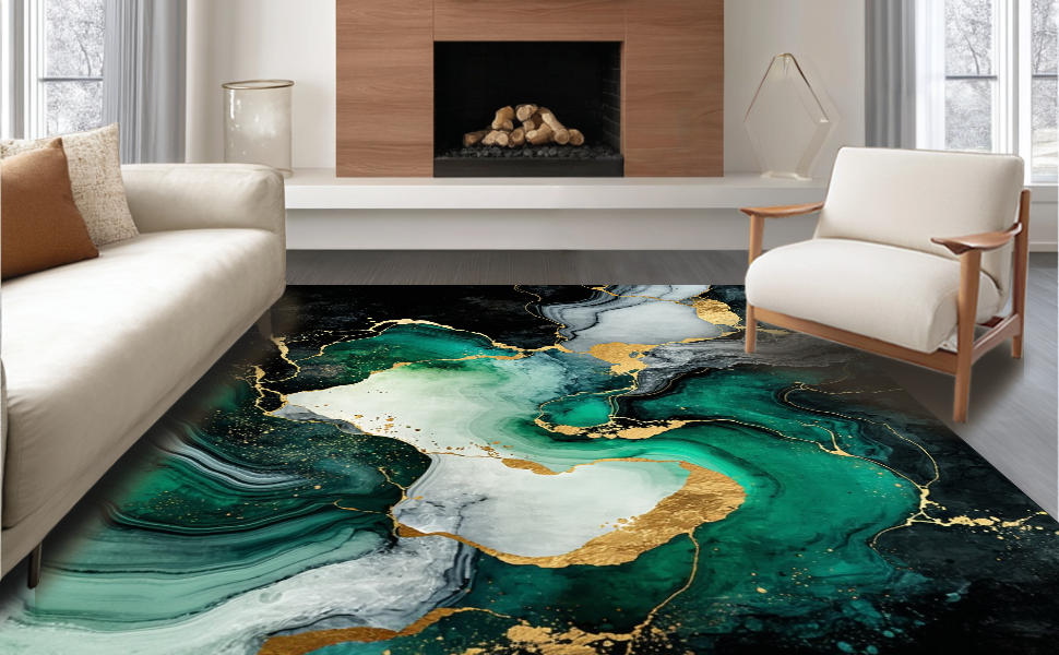 Ultra Soft Area Rug, Non Slip, Stain Resistant, Washable Area Rugs for Living Room, Bedroom, Artful Emerald and Black Contrast(Black) Overview: