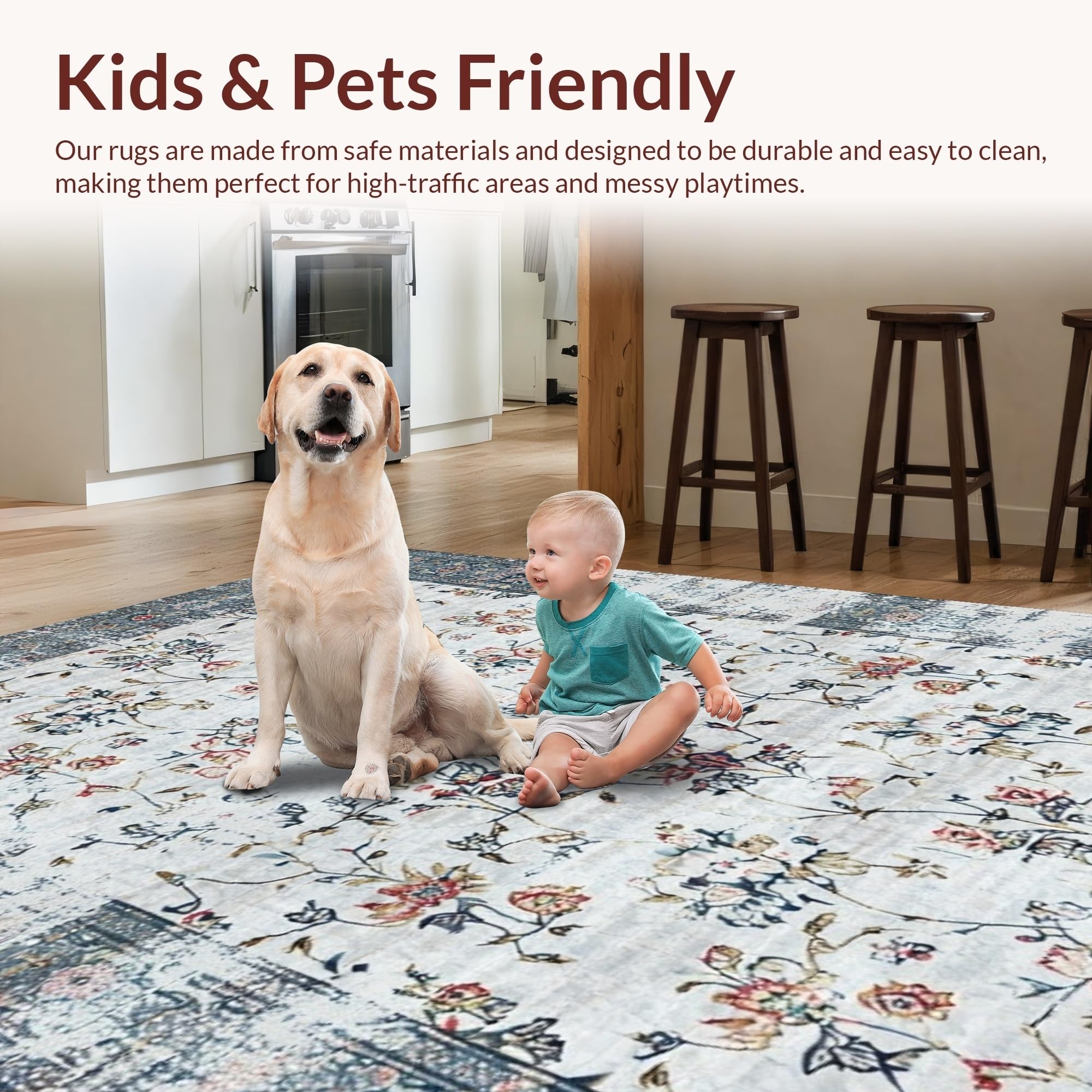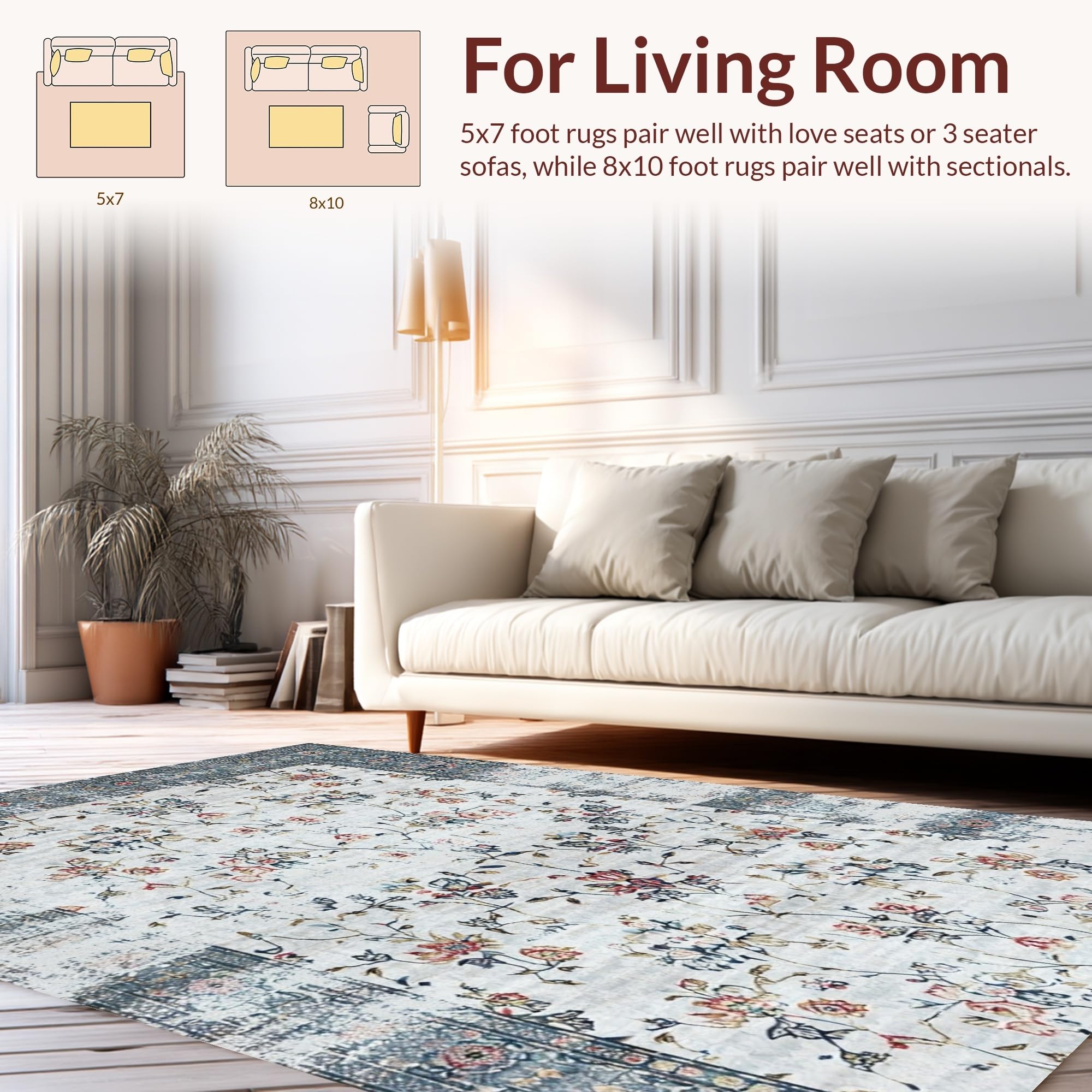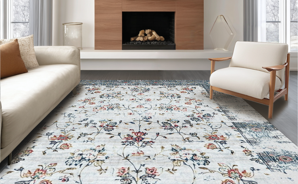 Ultra Soft Area Rug, Non Slip, Stain Resistant, Washable Area Rugs for Living Room, Bedroom, Artful Faded Diamond Composition(Ivory) Overview: