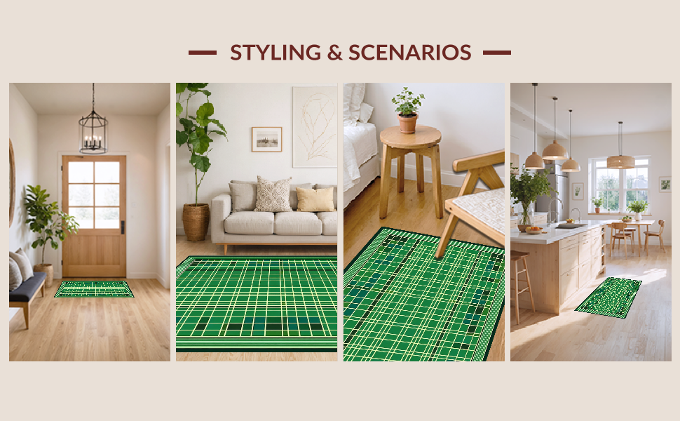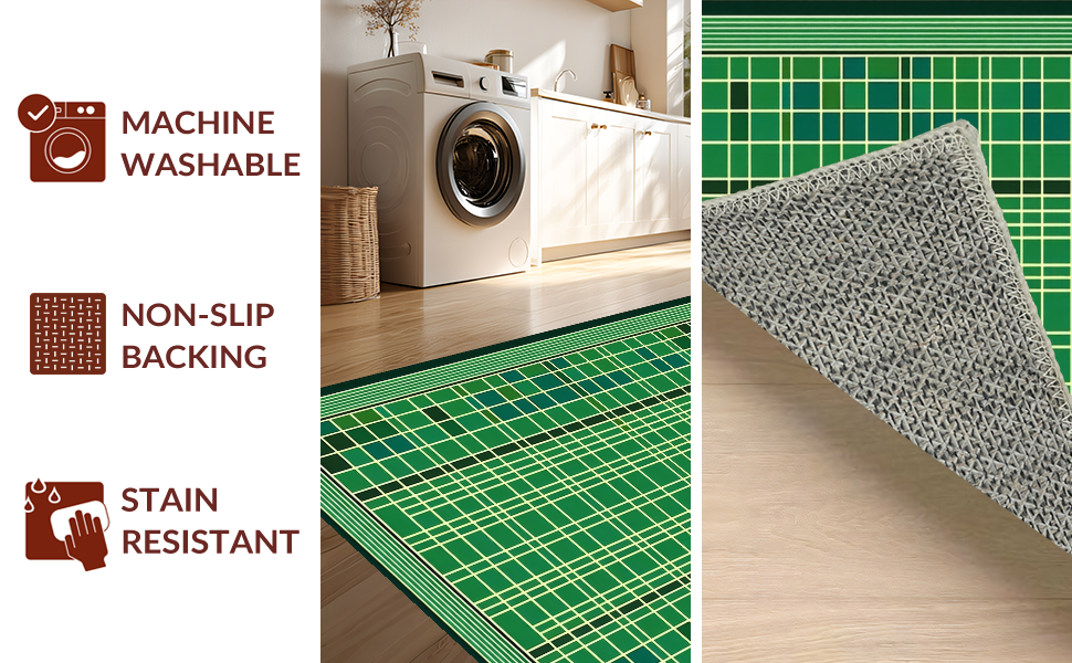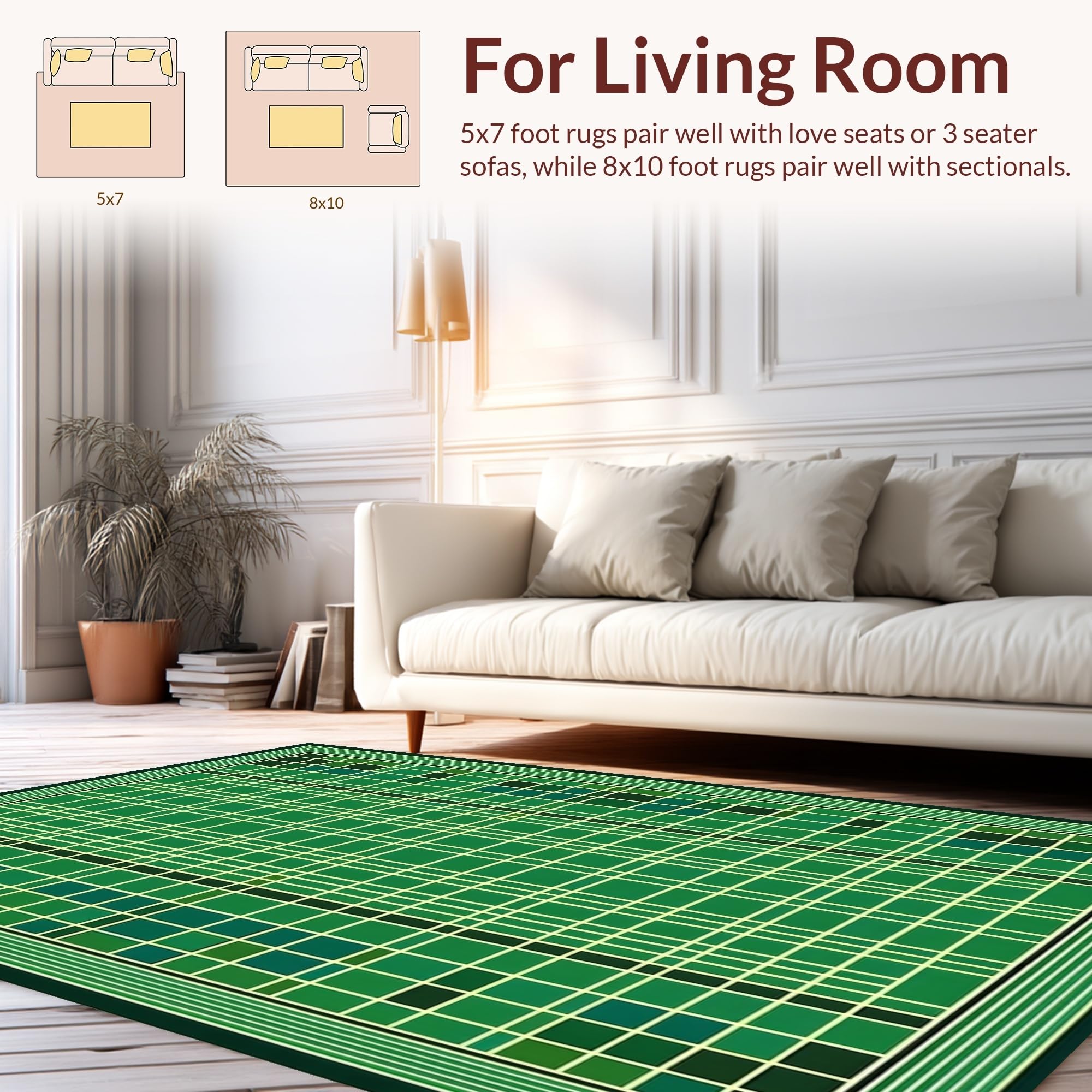 Ultra Soft Area Rug, Non Slip, Stain Resistant, Washable Area Rugs for Living Room, Bedroom, Artful Geometric Dance Pattern(Green) Overview: