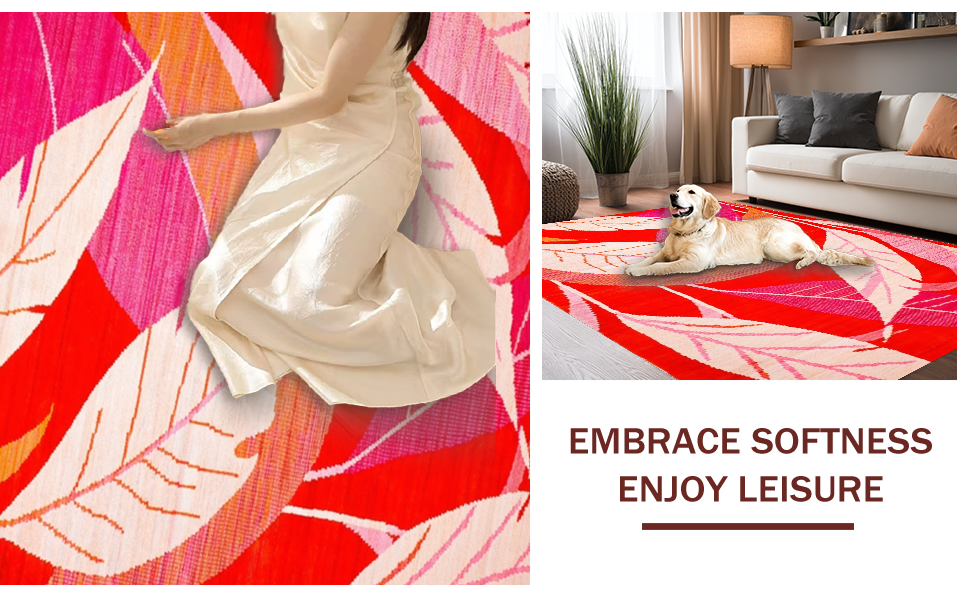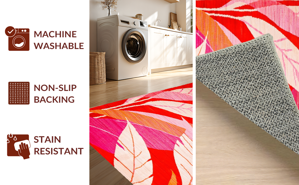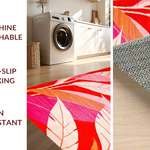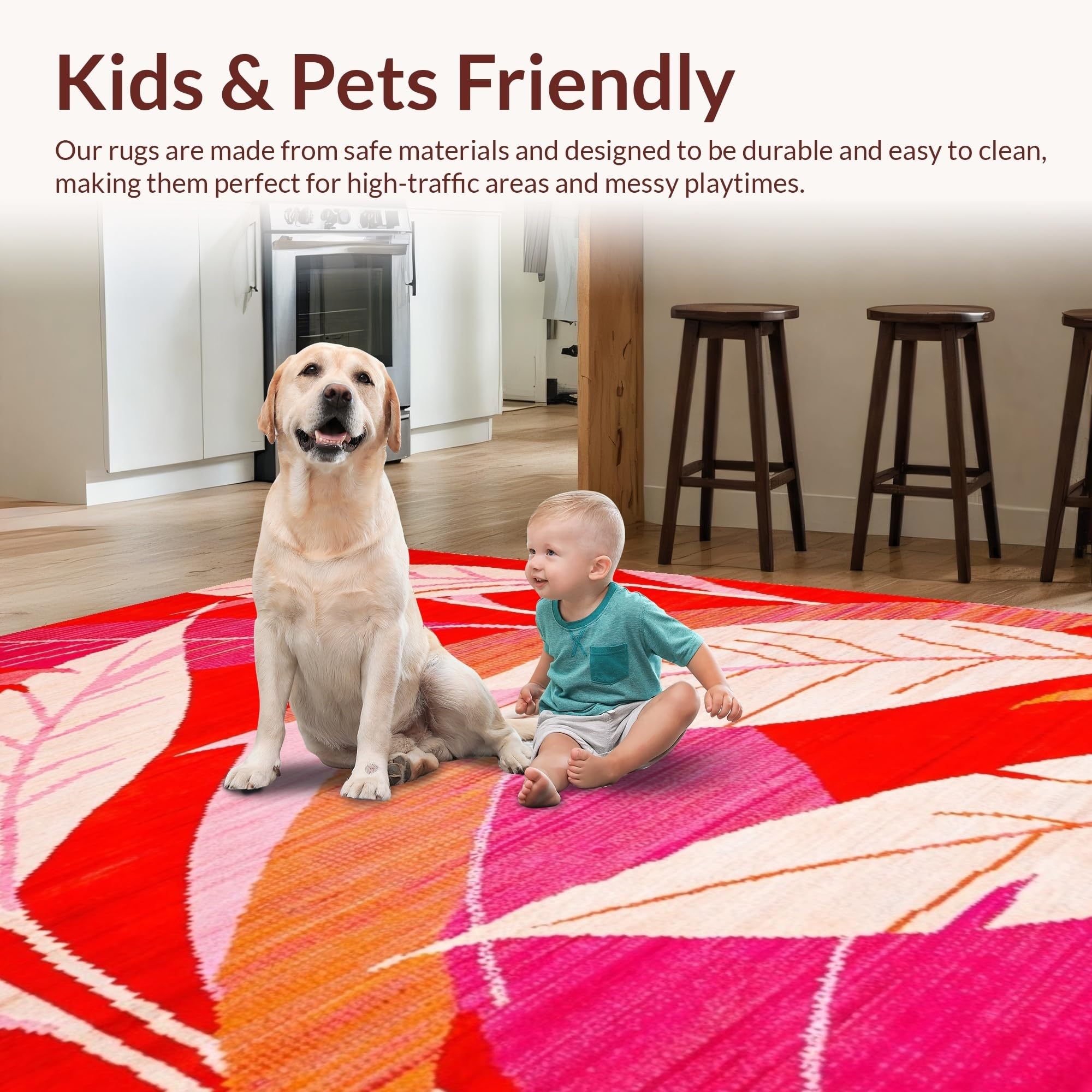 Ultra Soft Area Rug, Non Slip, Stain Resistant, Washable Area Rugs for Living Room, Bedroom, Artful Geometric Leaf Arrangement(Red) Overview: