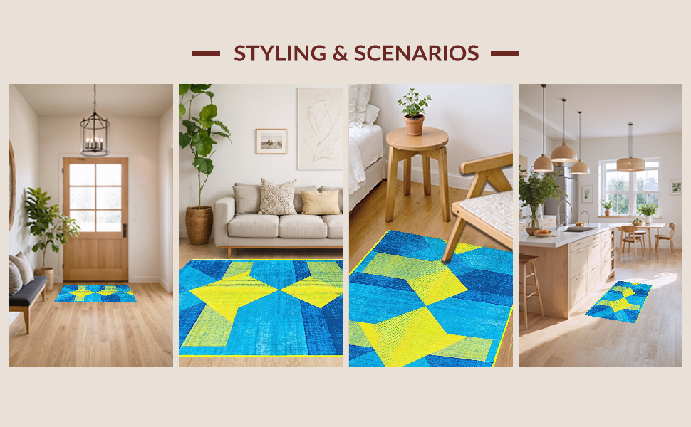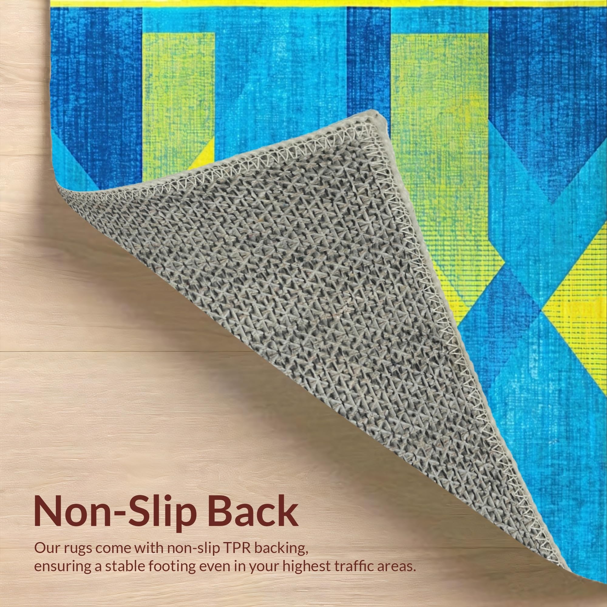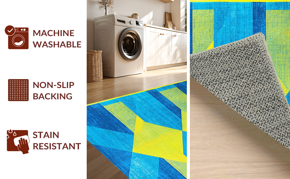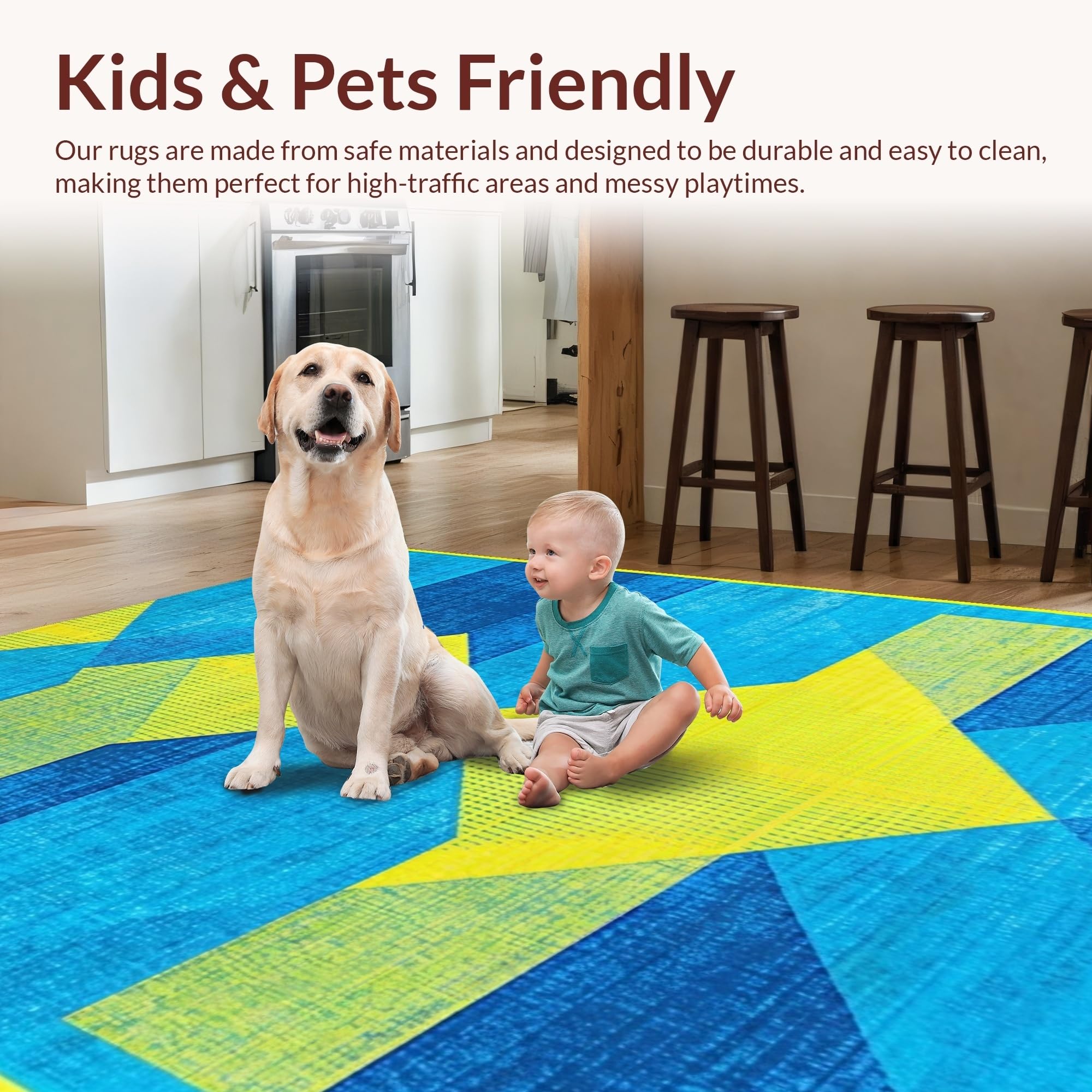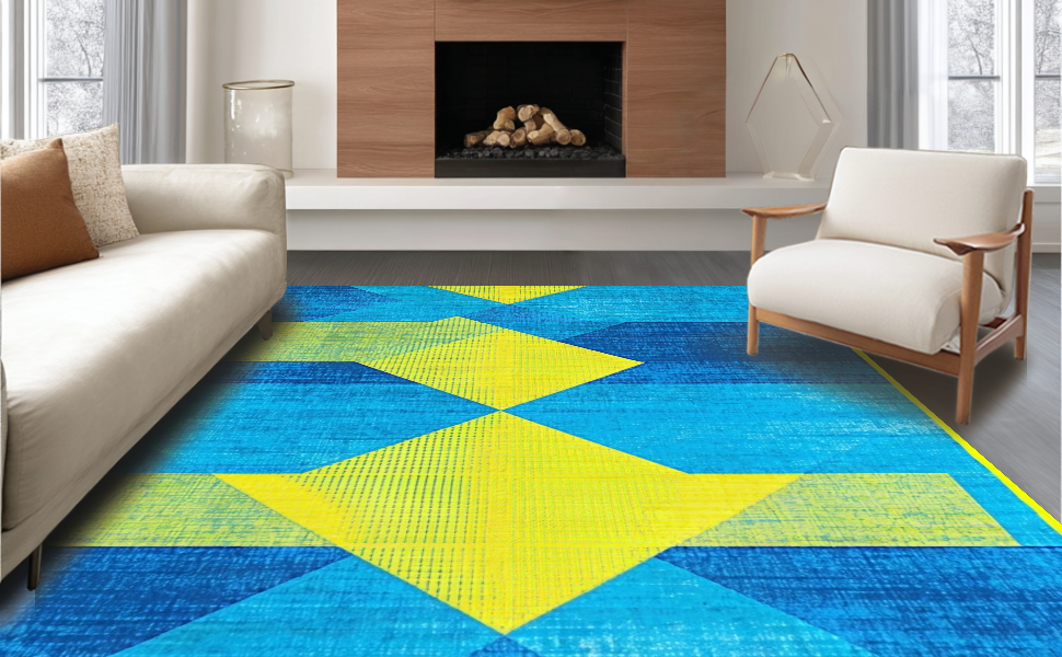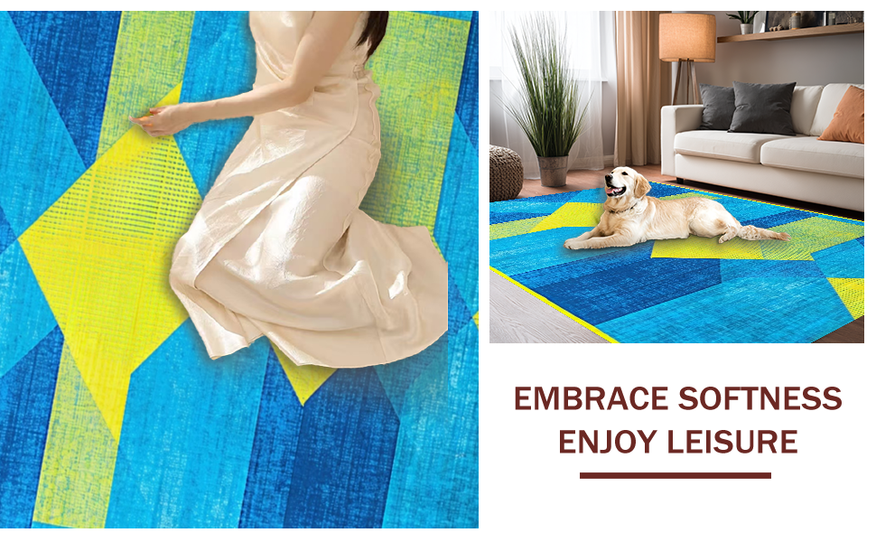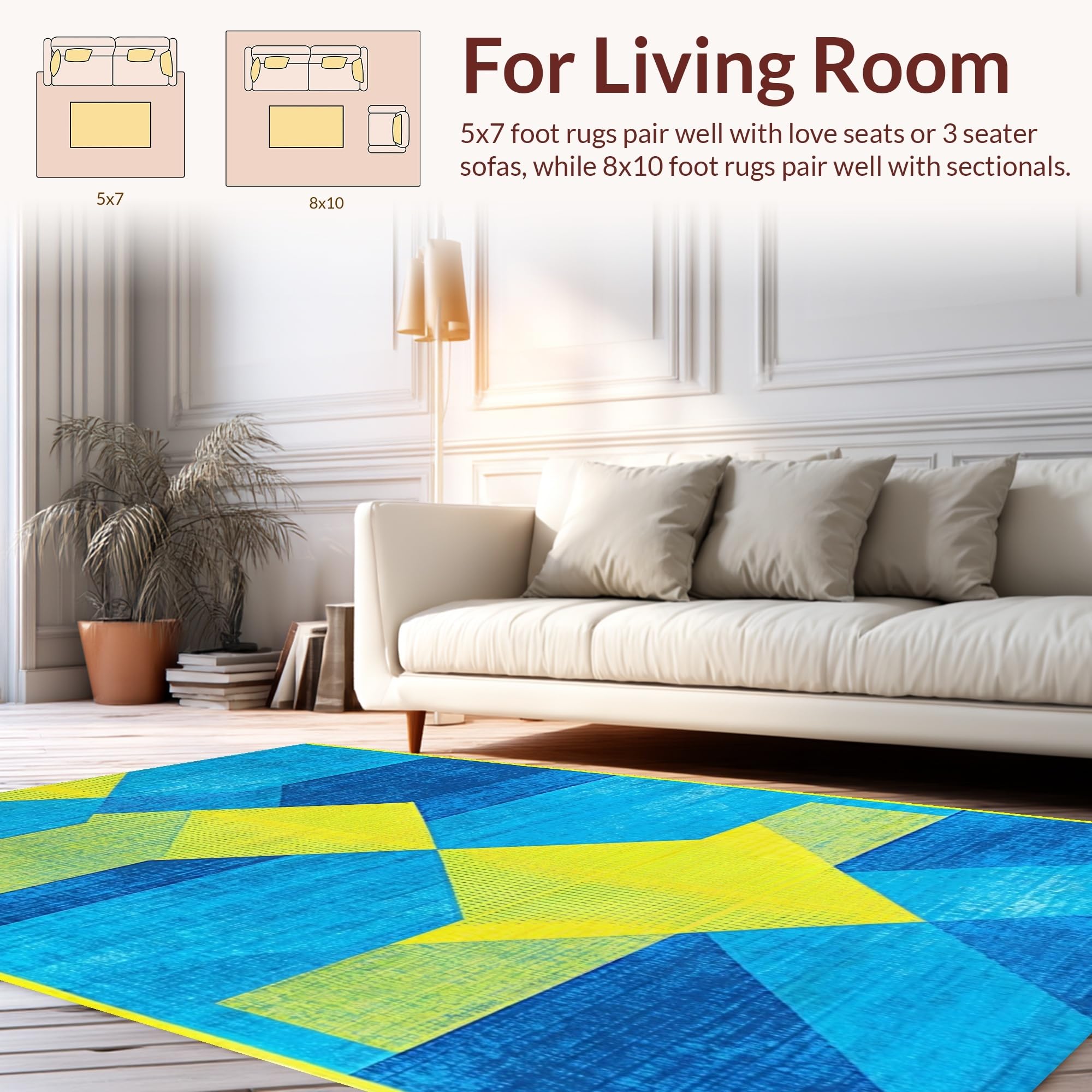 Ultra Soft Area Rug, Non Slip, Stain Resistant, Washable Area Rugs for Living Room, Bedroom, Artful Geometric Soft Aesthetic(Blue) Overview: