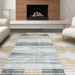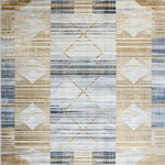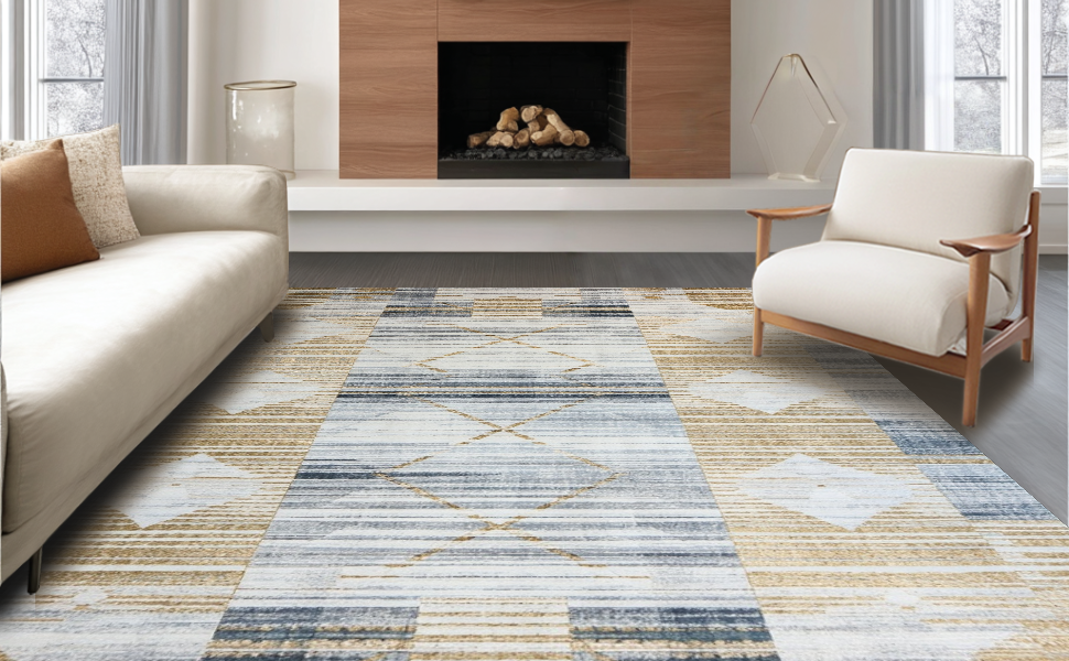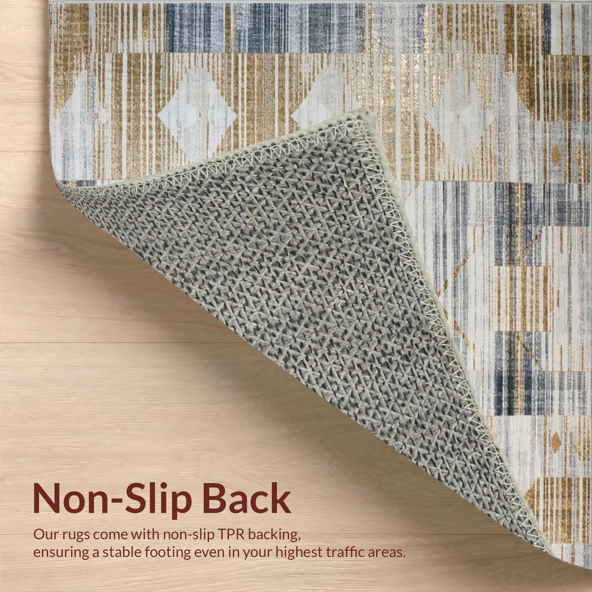 Ultra Soft Area Rug, Non Slip, Stain Resistant, Washable Area Rugs for Living Room, Bedroom, Artful Gold-Accented Linear Patterns(Gold) Overview: