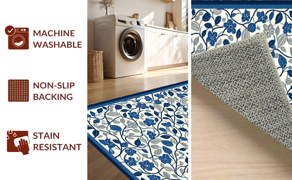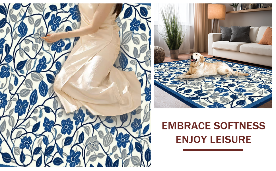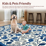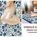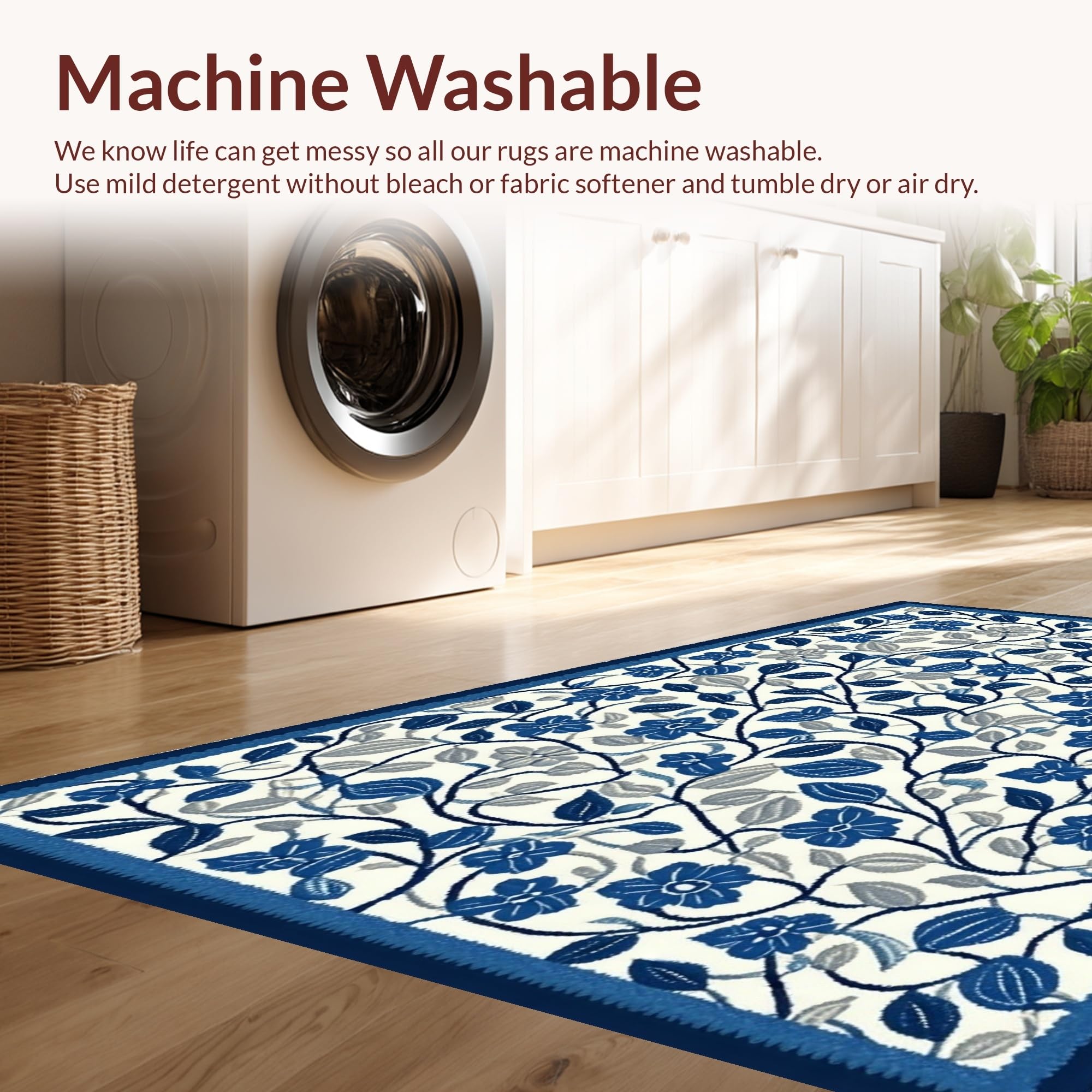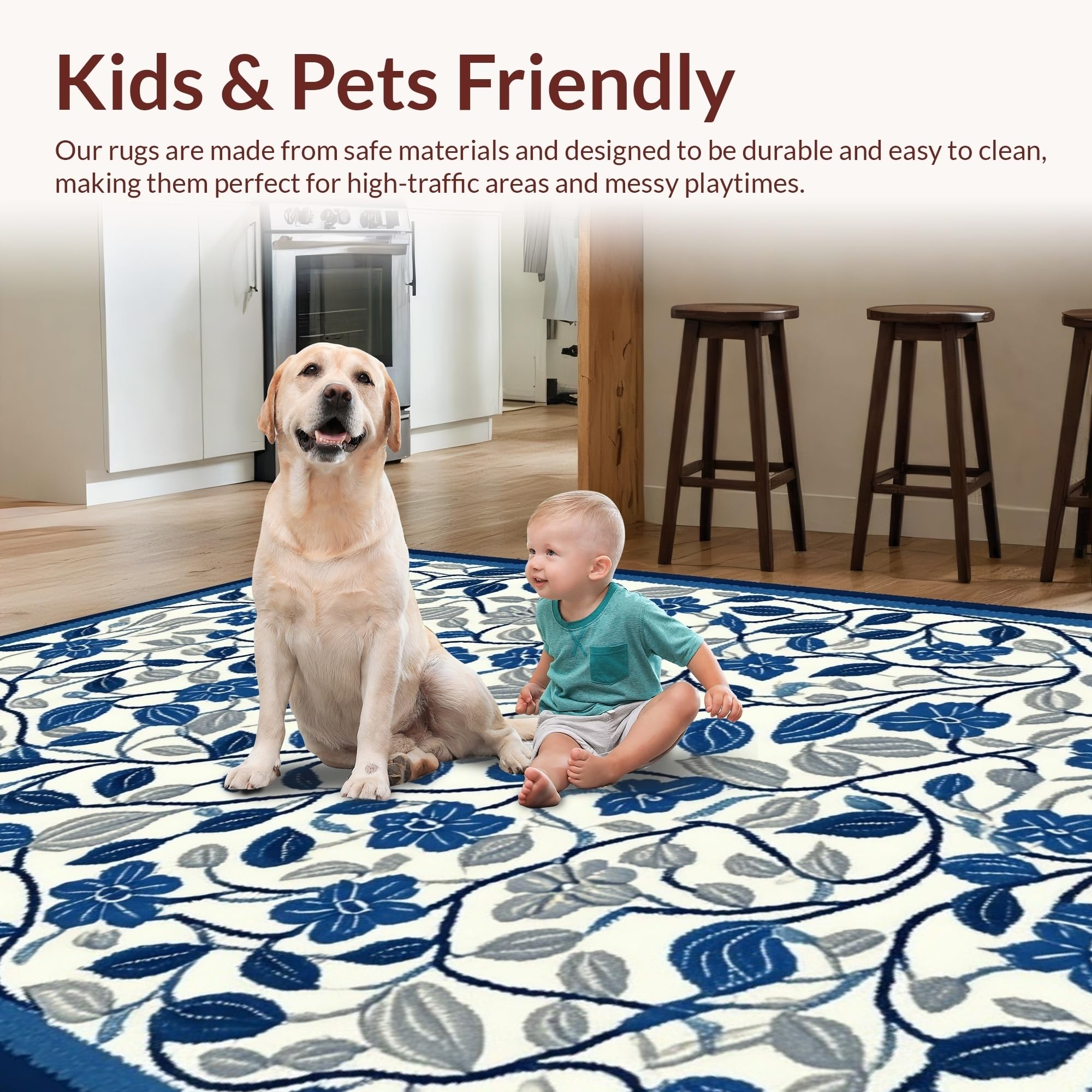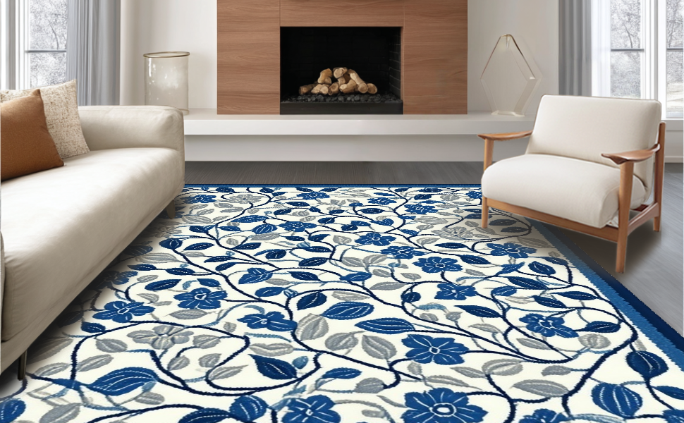 Ultra Soft Area Rug, Non Slip, Stain Resistant, Washable Area Rugs for Living Room, Bedroom, Artful Graphic Blue Blossom Motif(Blue) Overview:
