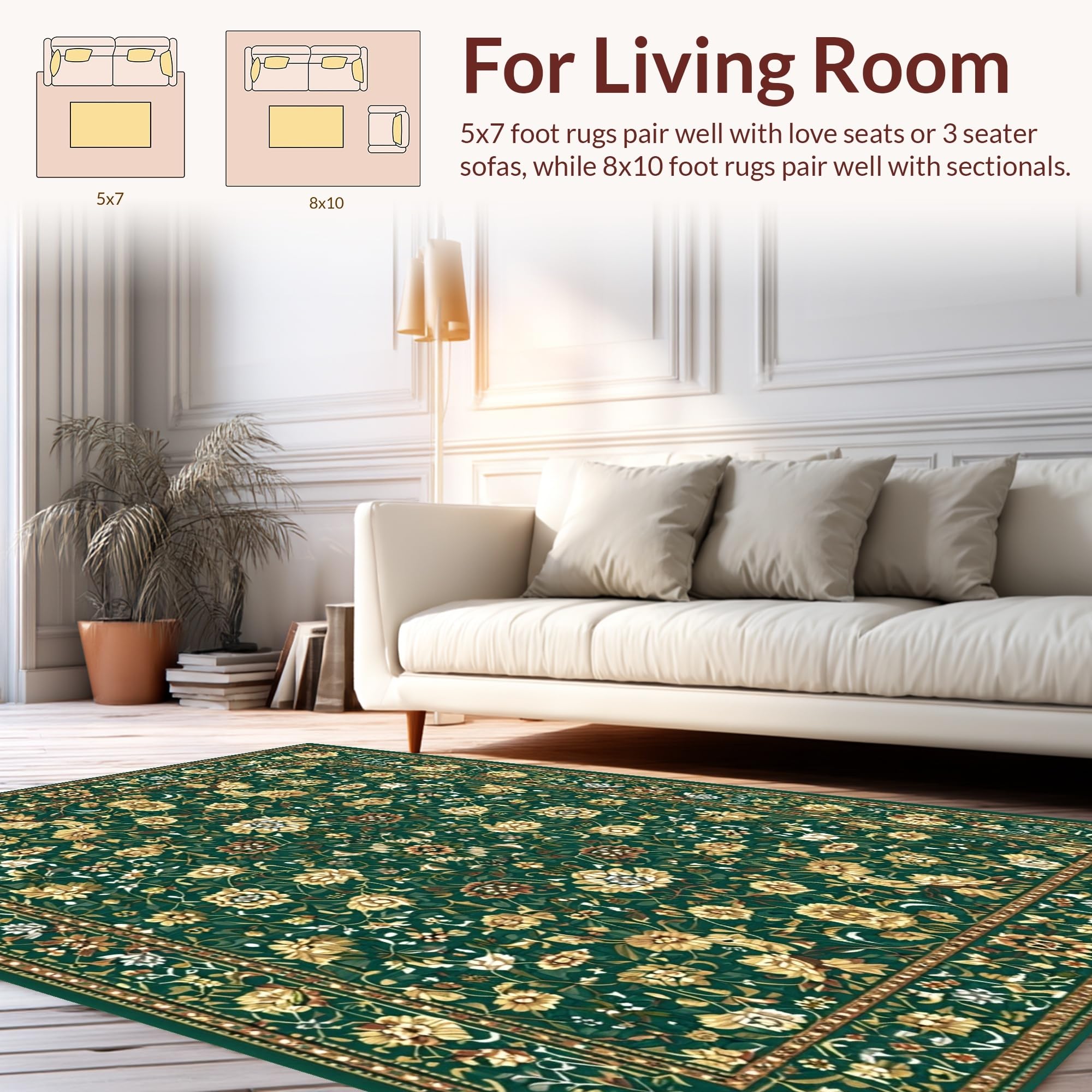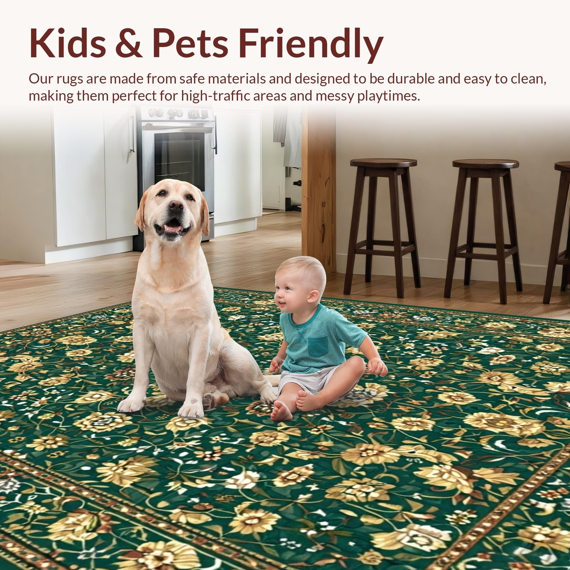 Ultra Soft Area Rug, Non Slip, Stain Resistant, Washable Area Rugs for Living Room, Bedroom, Artful Gray and Gold Fusion(Green) Overview:
