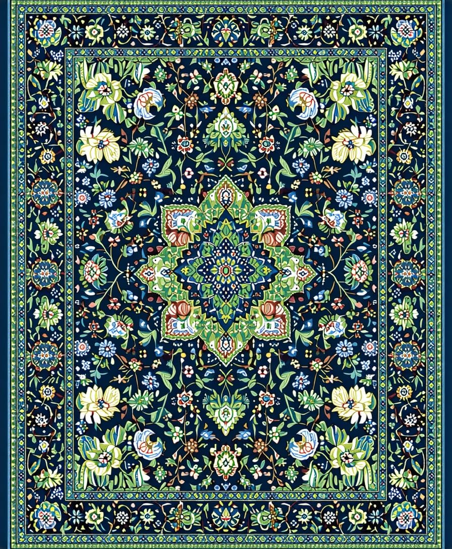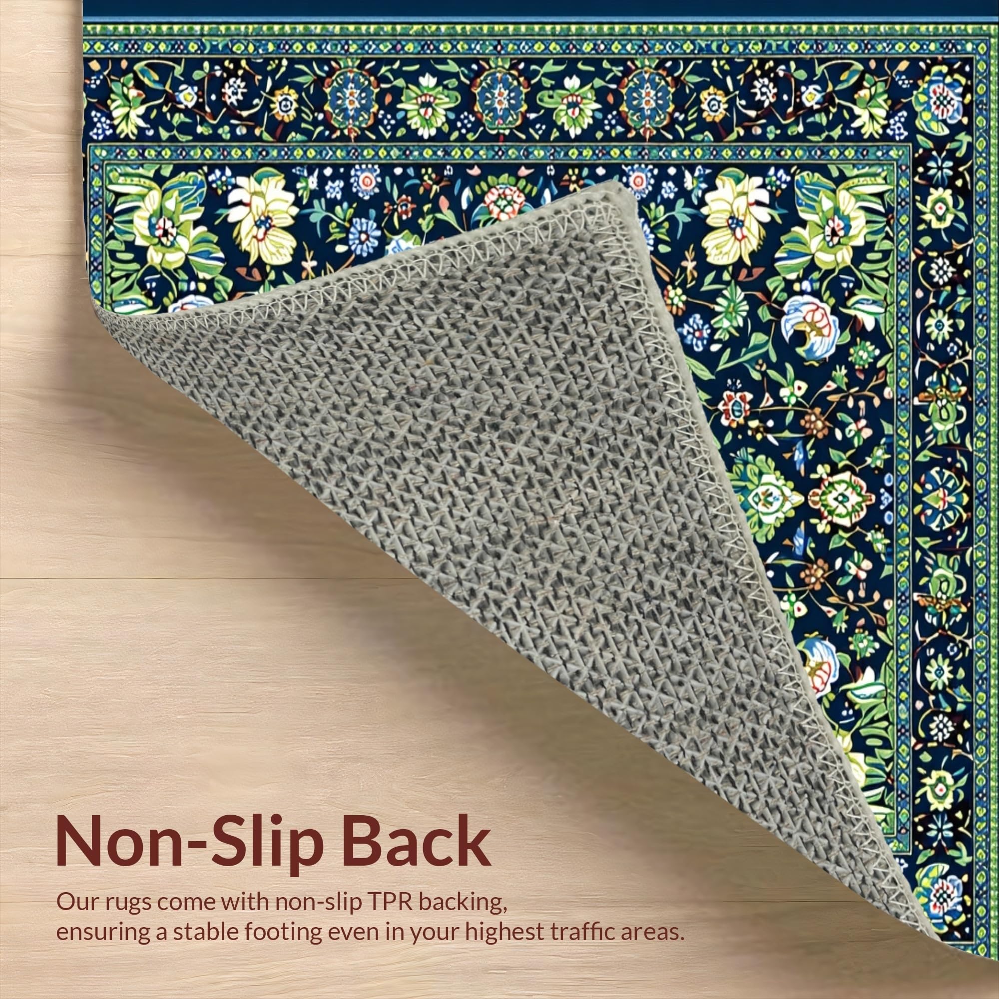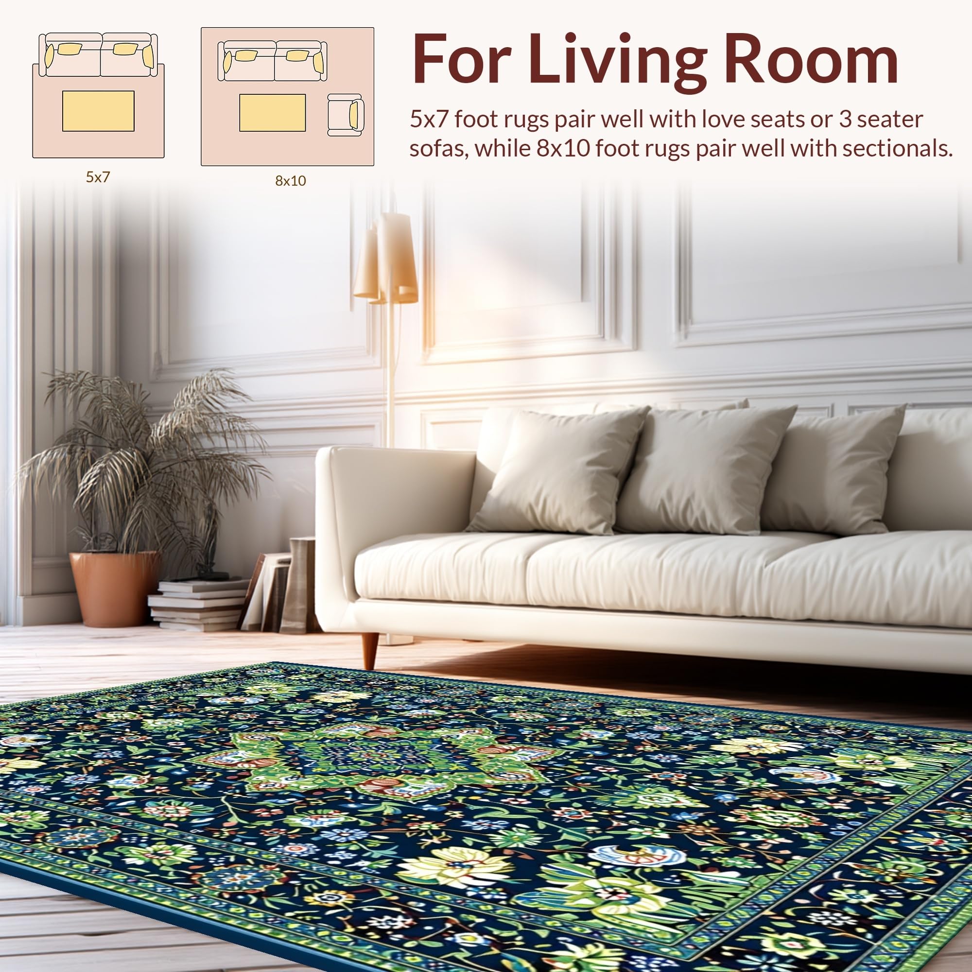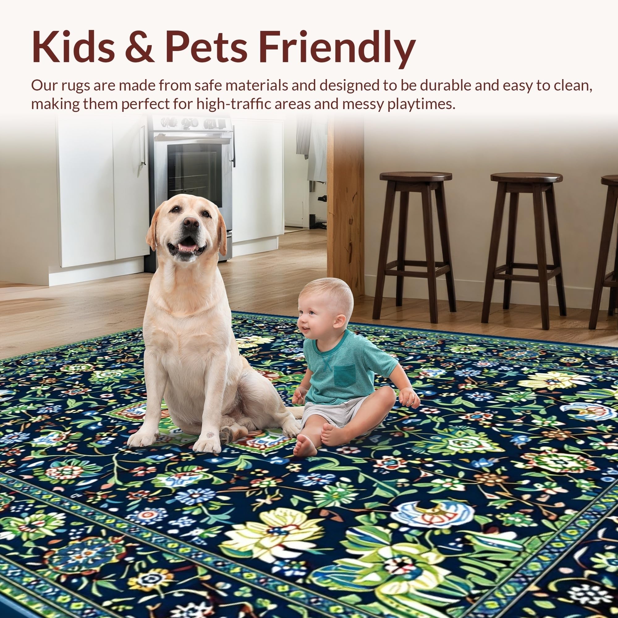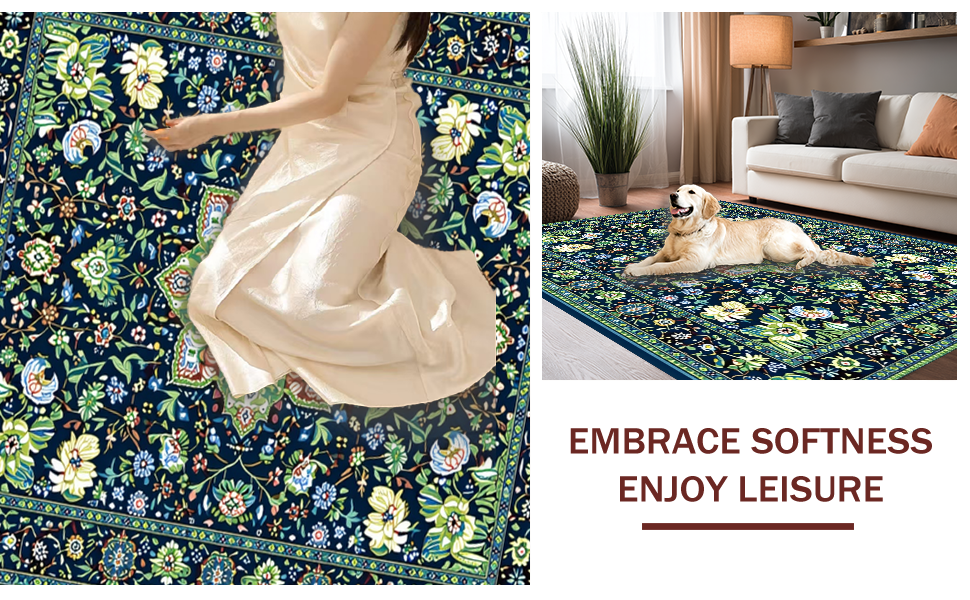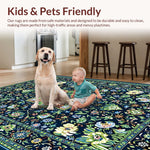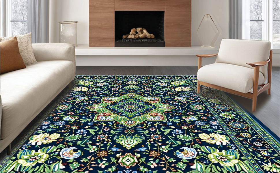 Ultra Soft Area Rug, Non Slip, Stain Resistant, Washable Area Rugs for Living Room, Bedroom, Artful Green and Blue Symmetry(Blue) Overview: