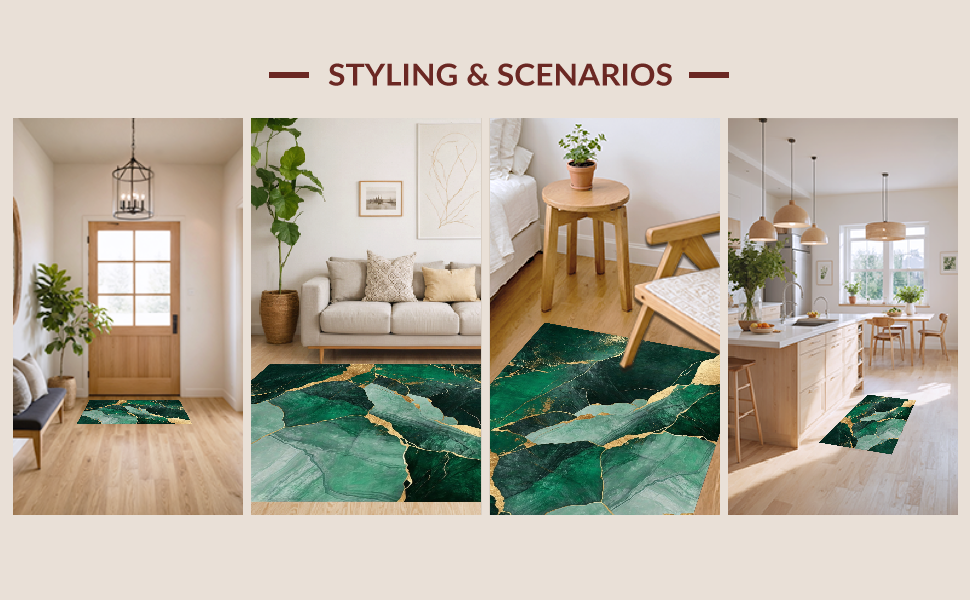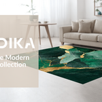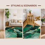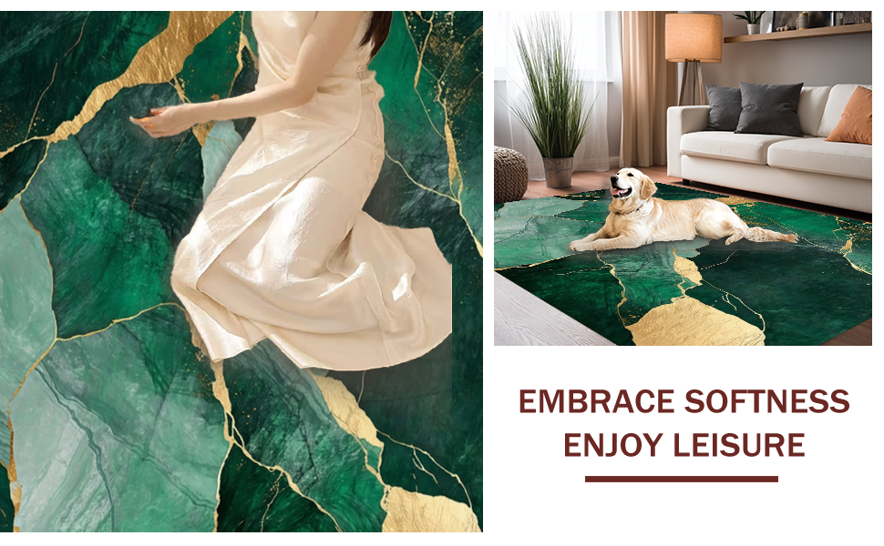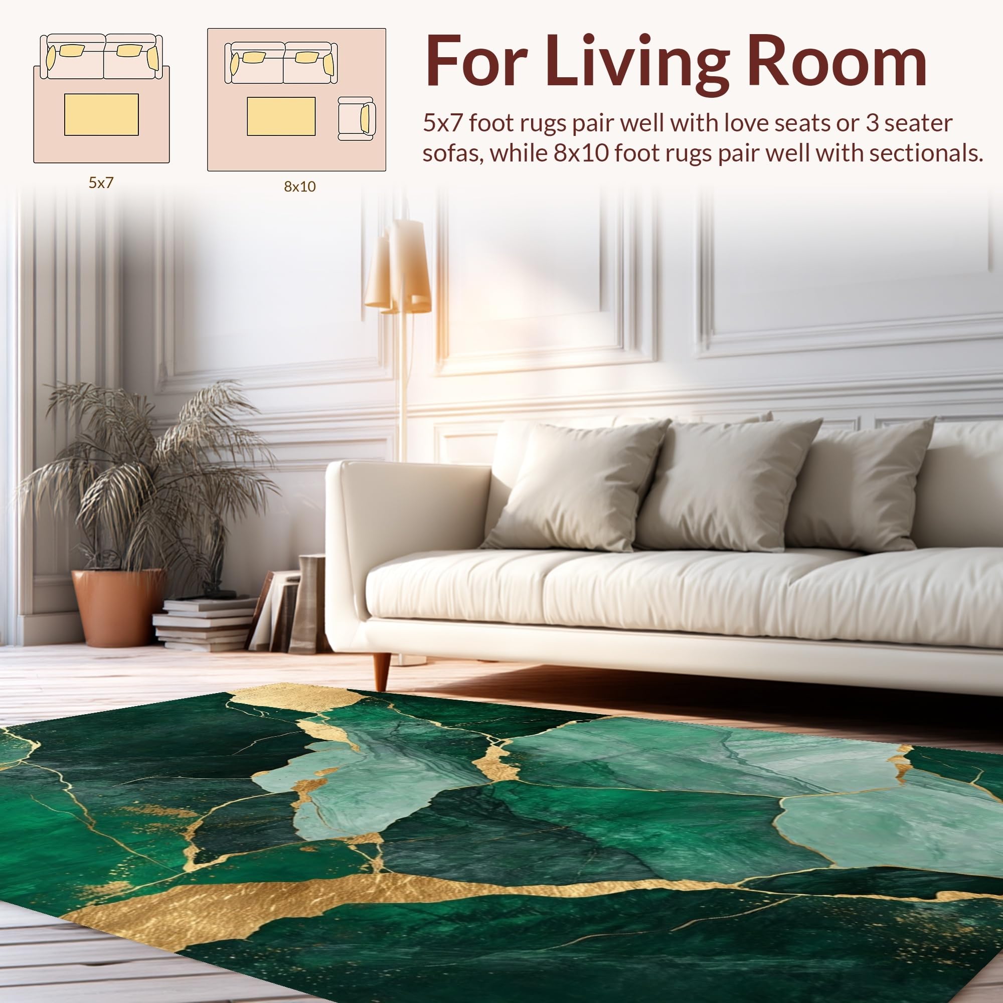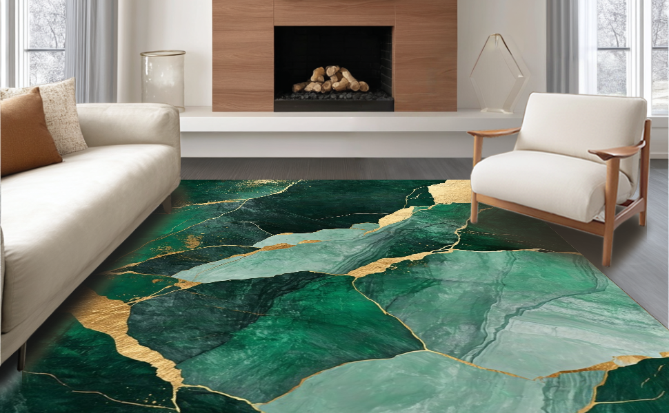 Ultra Soft Area Rug, Non Slip, Stain Resistant, Washable Area Rugs for Living Room, Bedroom, Artful Green and Gold Symmetry(Green) Overview:
