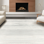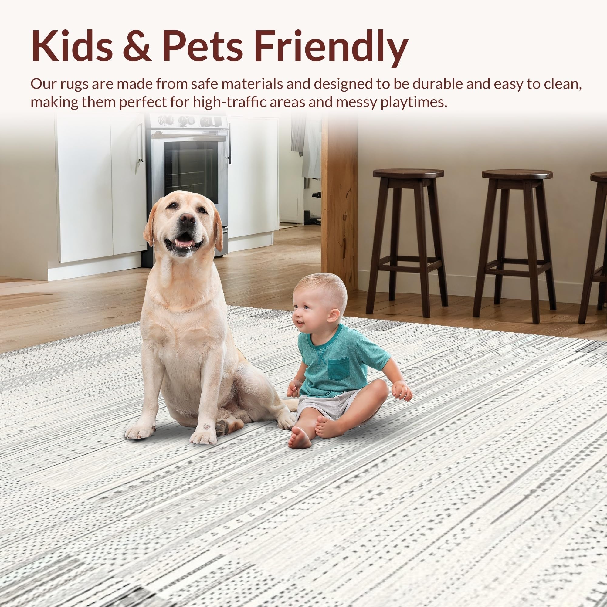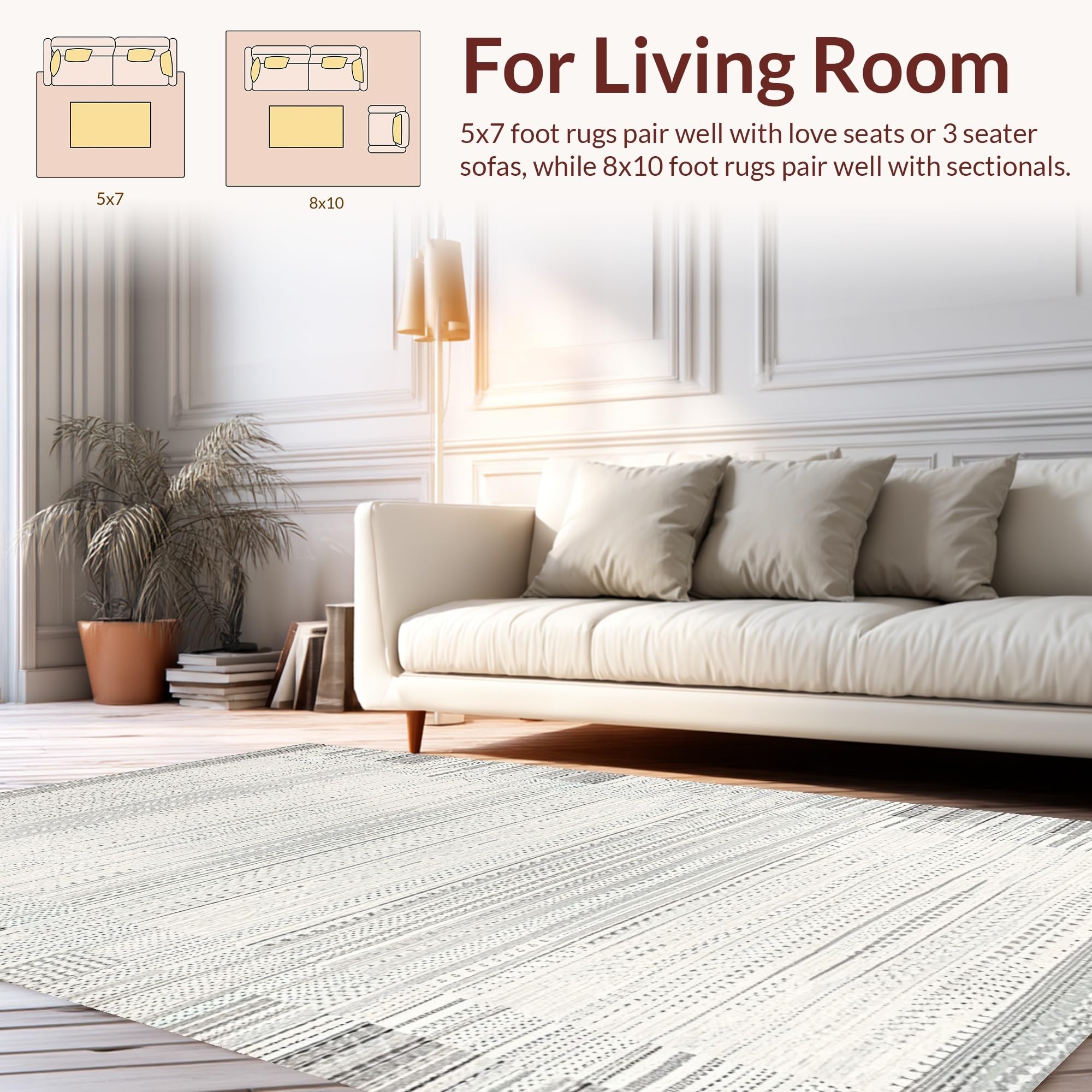 Ultra Soft Area Rug, Non Slip, Stain Resistant, Washable Area Rugs for Living Room, Bedroom, Artful Greyish White Layered Design(Ivory) Overview: