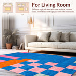 Ultra Soft Area Rug, Non Slip, Stain Resistant, Washable Area Rugs for Living Room, Bedroom, Artful Harmonious Checker Motif(Blue) Overview: