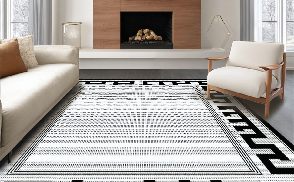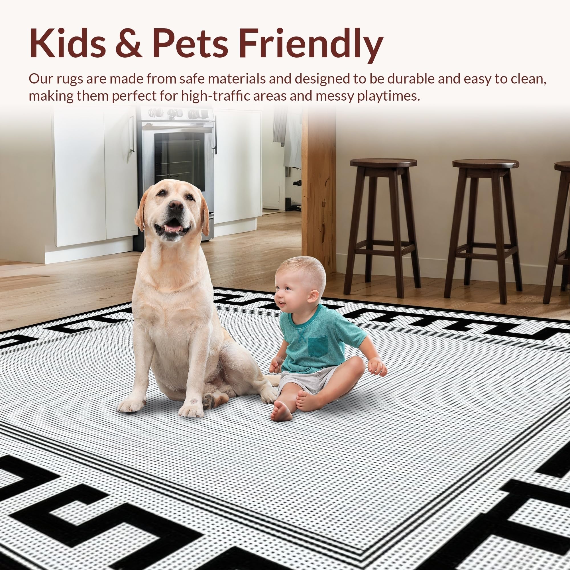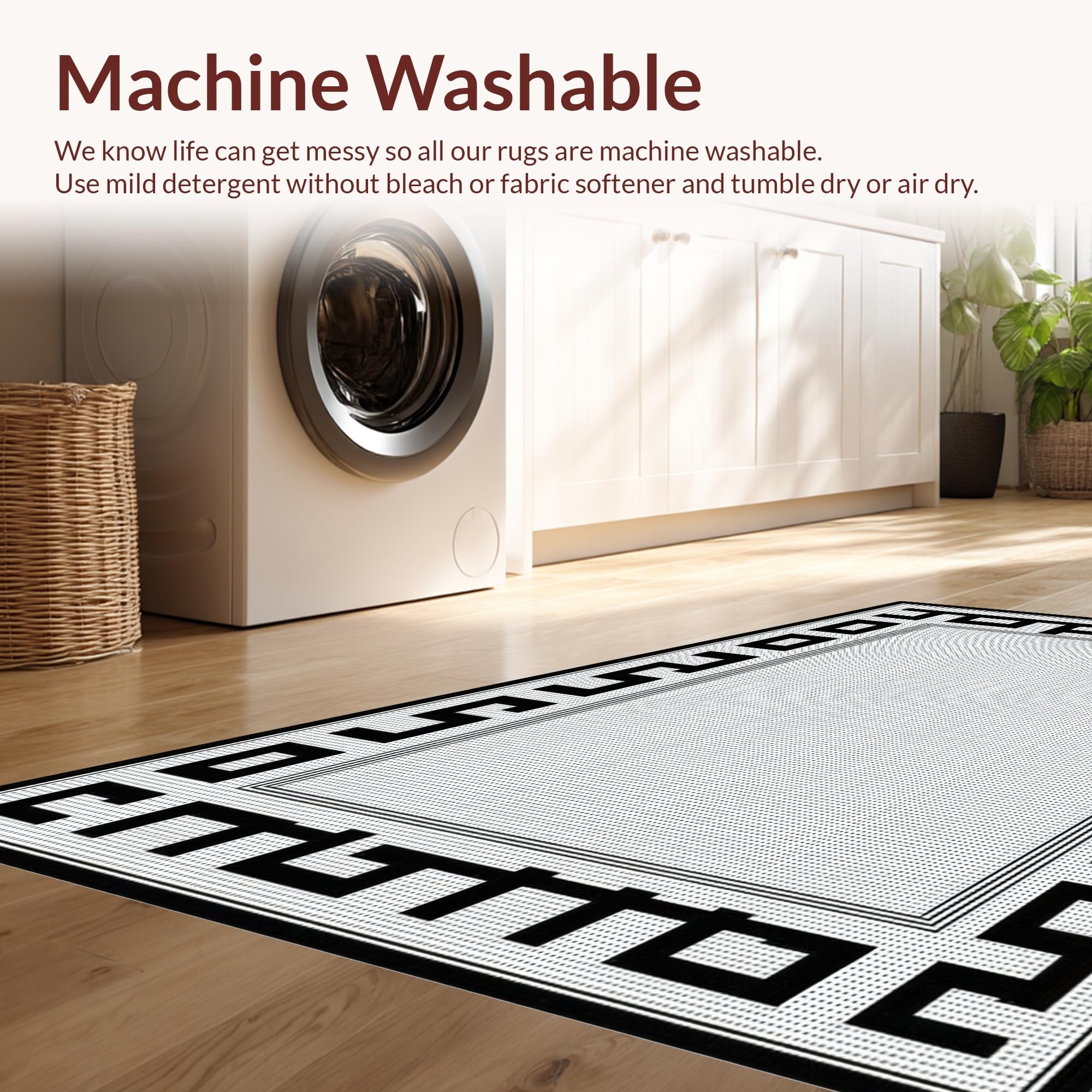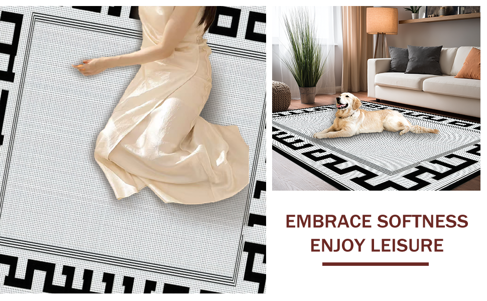 Ultra Soft Area Rug, Non Slip, Stain Resistant, Washable Area Rugs for Living Room, Bedroom, Artful High-Contrast Decorative Elements(Black) Overview: