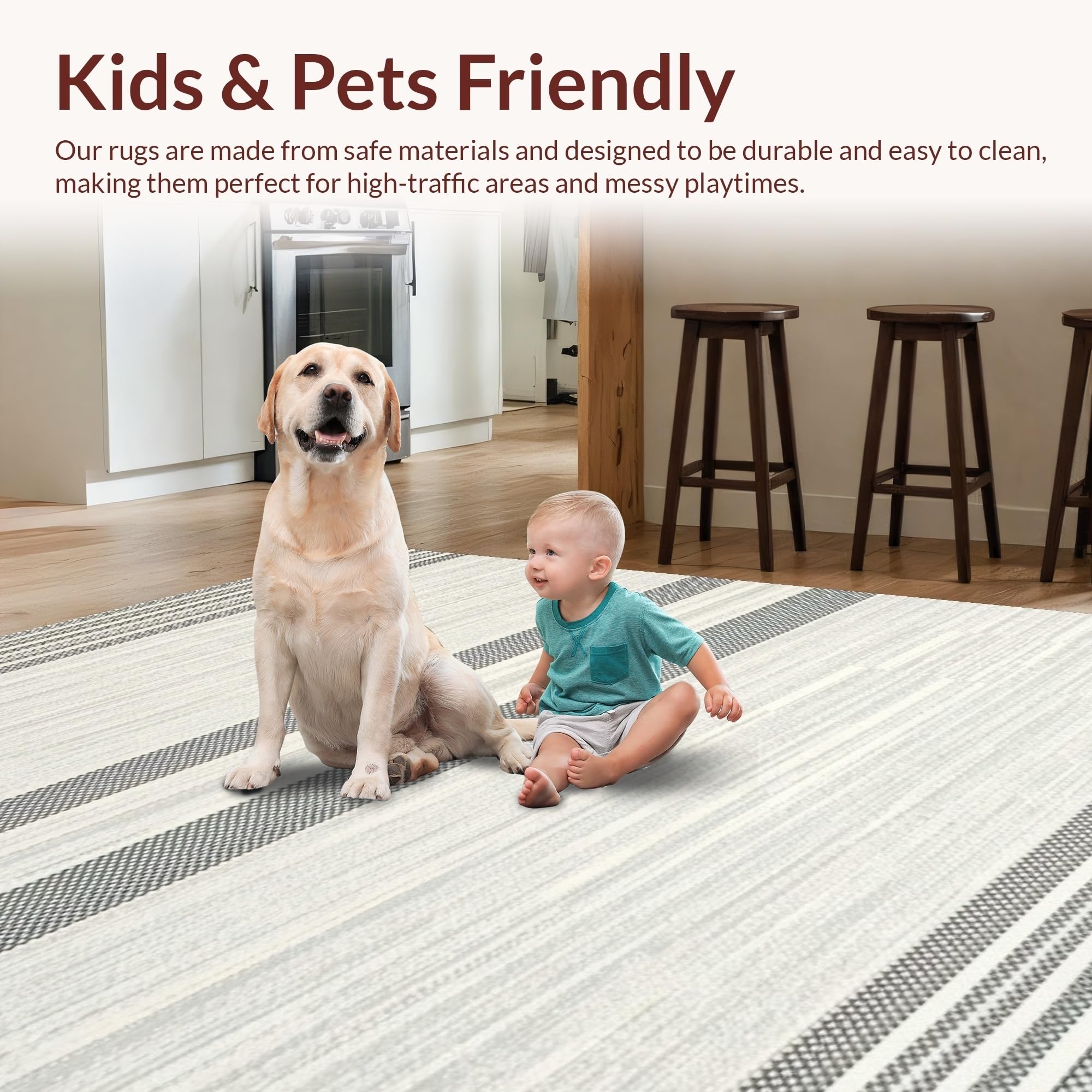 Ultra Soft Area Rug, Non Slip, Stain Resistant, Washable Area Rugs for Living Room, Bedroom, Artful High-Low Textured Layers(Gray) Overview: