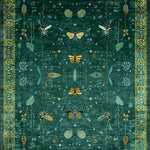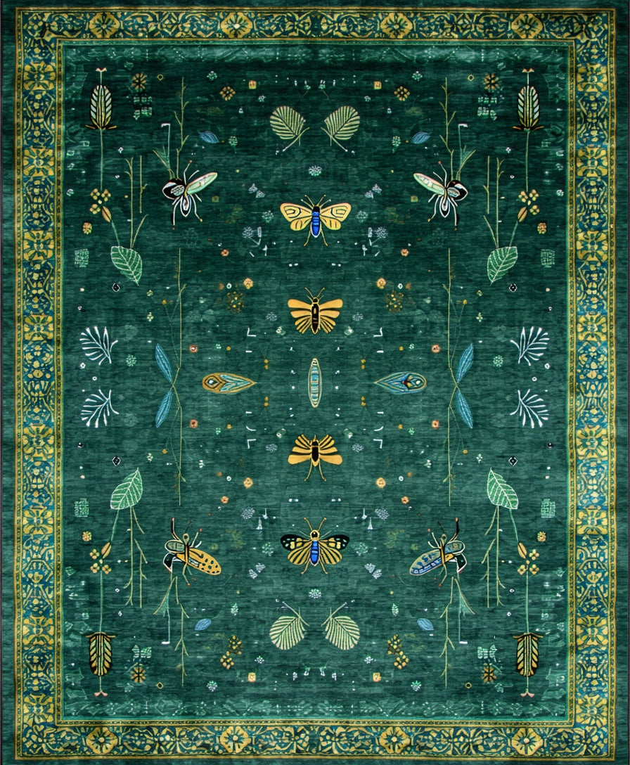 Flatwoven High Traffic Area Rug, Artful Insect Flora Motif, Non Slip, Stain Resistant, Washable Area Rugs for Living Room, Bedroom (Green) Overview: