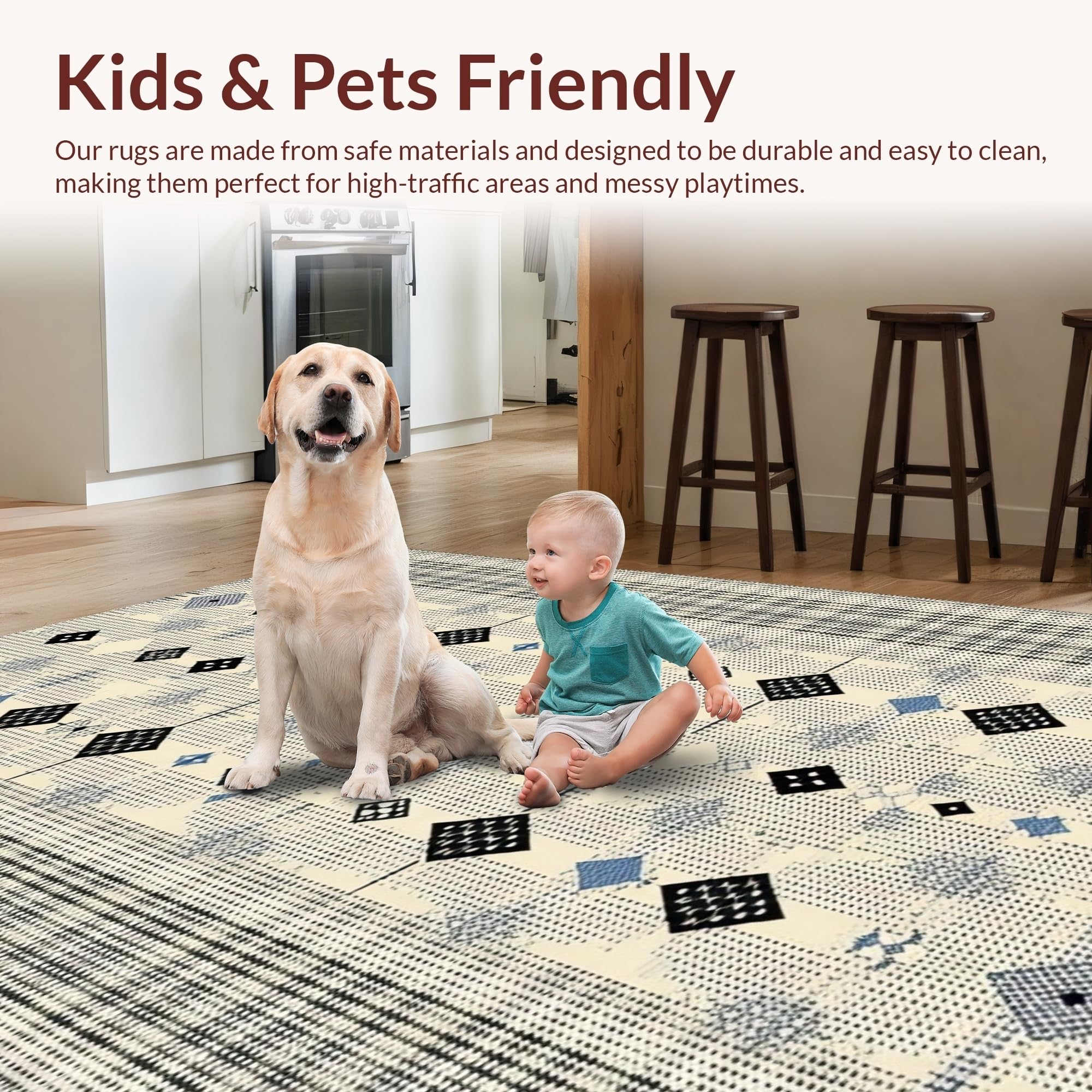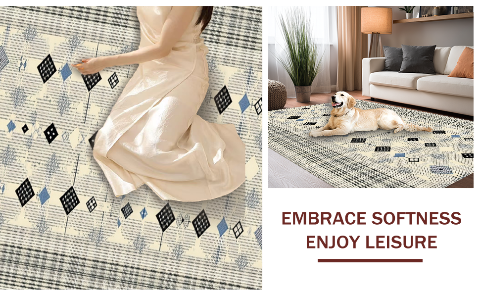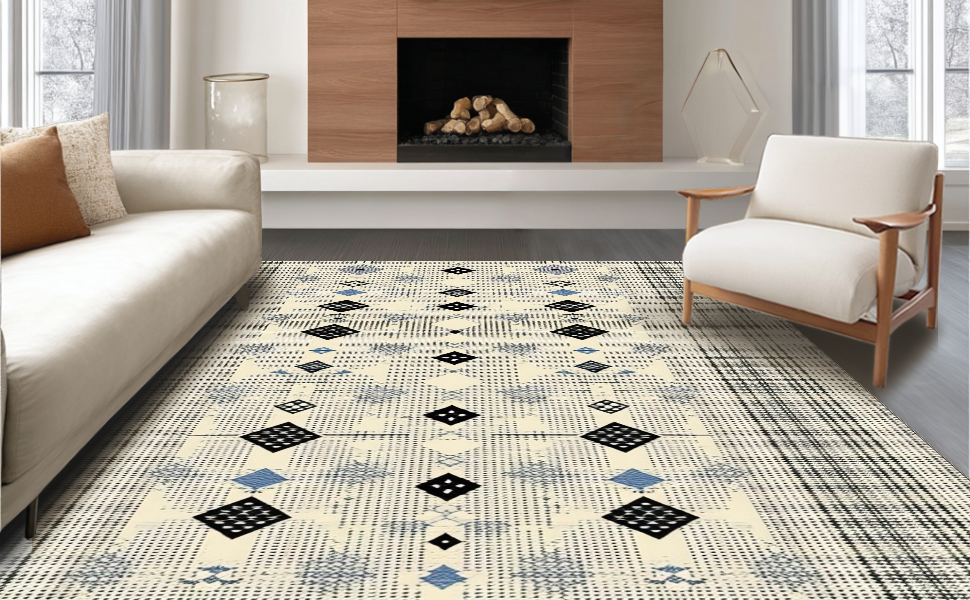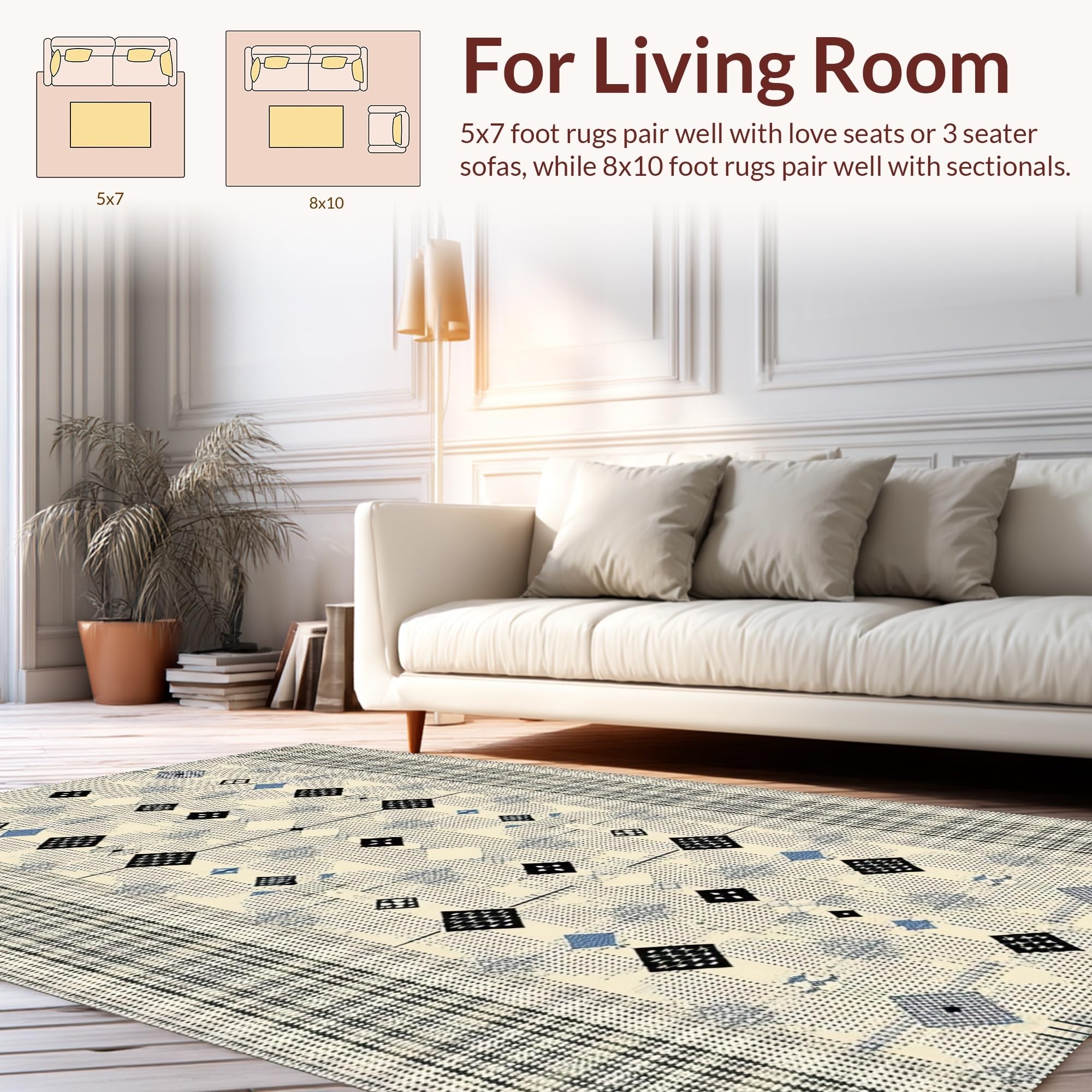 Ultra Soft Area Rug, Non Slip, Stain Resistant, Washable Area Rugs for Living Room, Bedroom, Artful Lattice Inspired Visual Harmony(Beige) Overview: