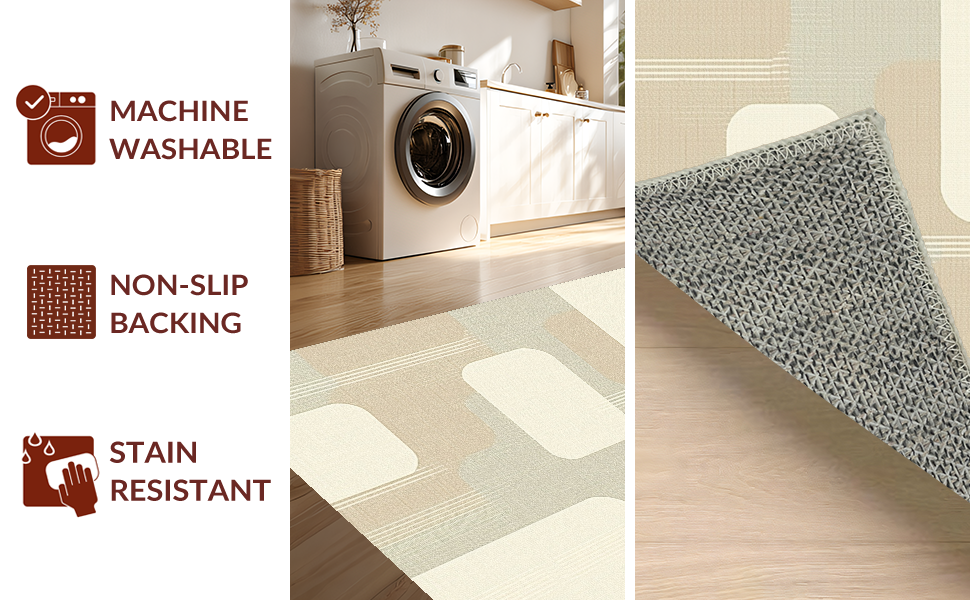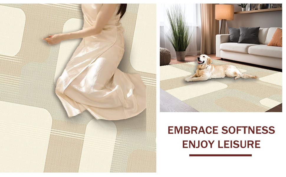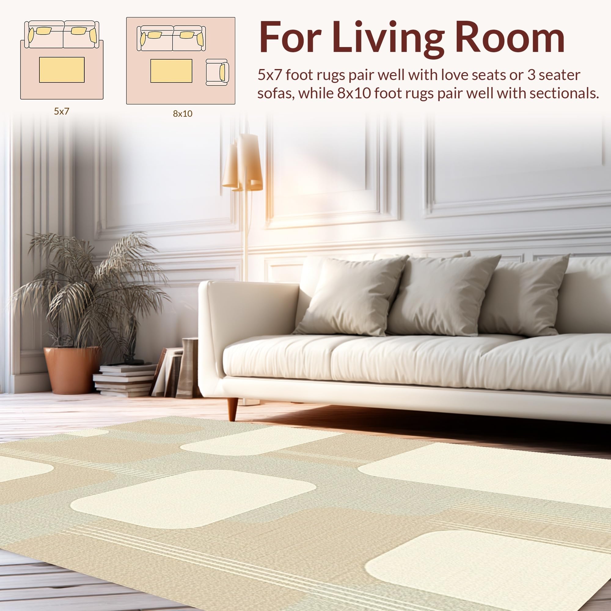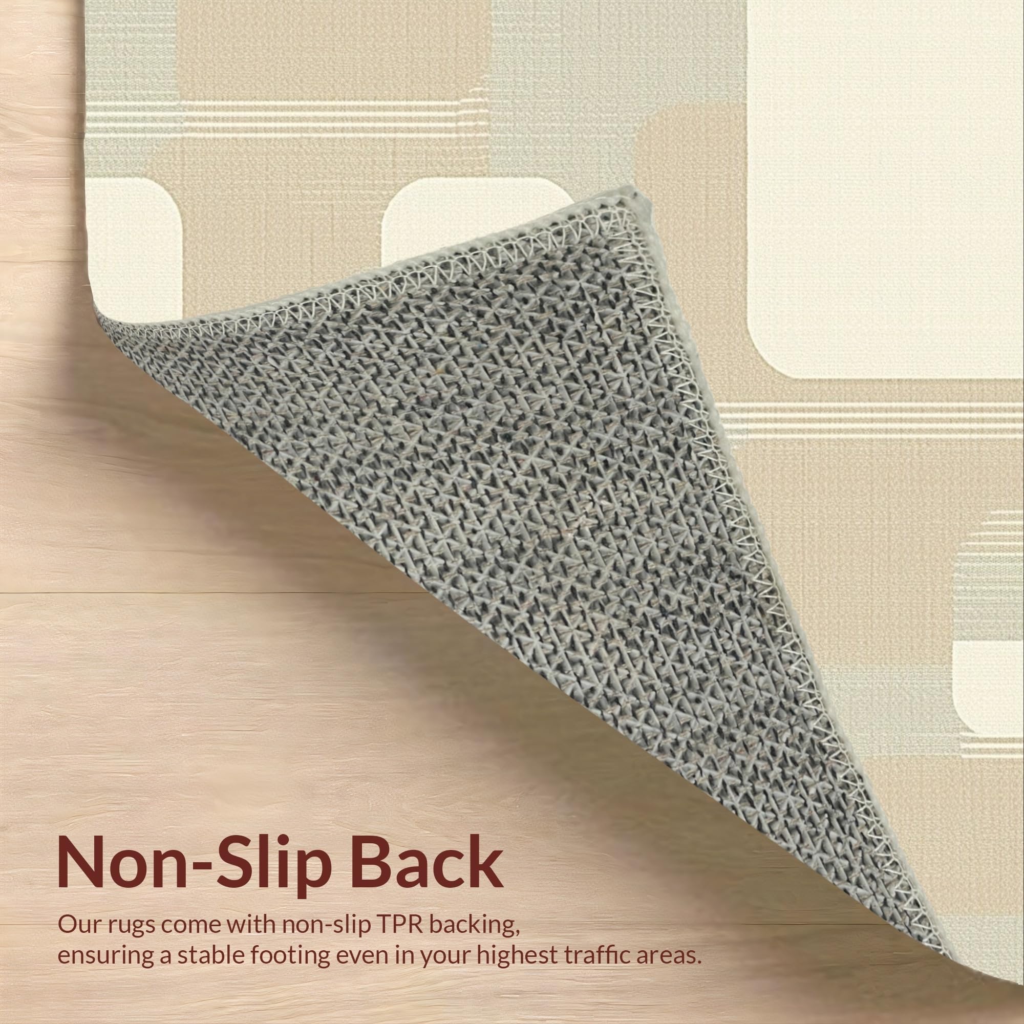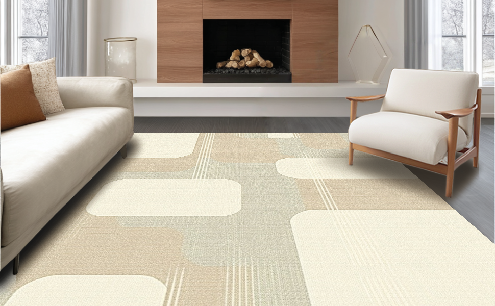 Ultra Soft Area Rug, Non Slip, Stain Resistant, Washable Area Rugs for Living Room, Bedroom, Artful Meandering Lines Tranquil Vibe(Beige) Overview: