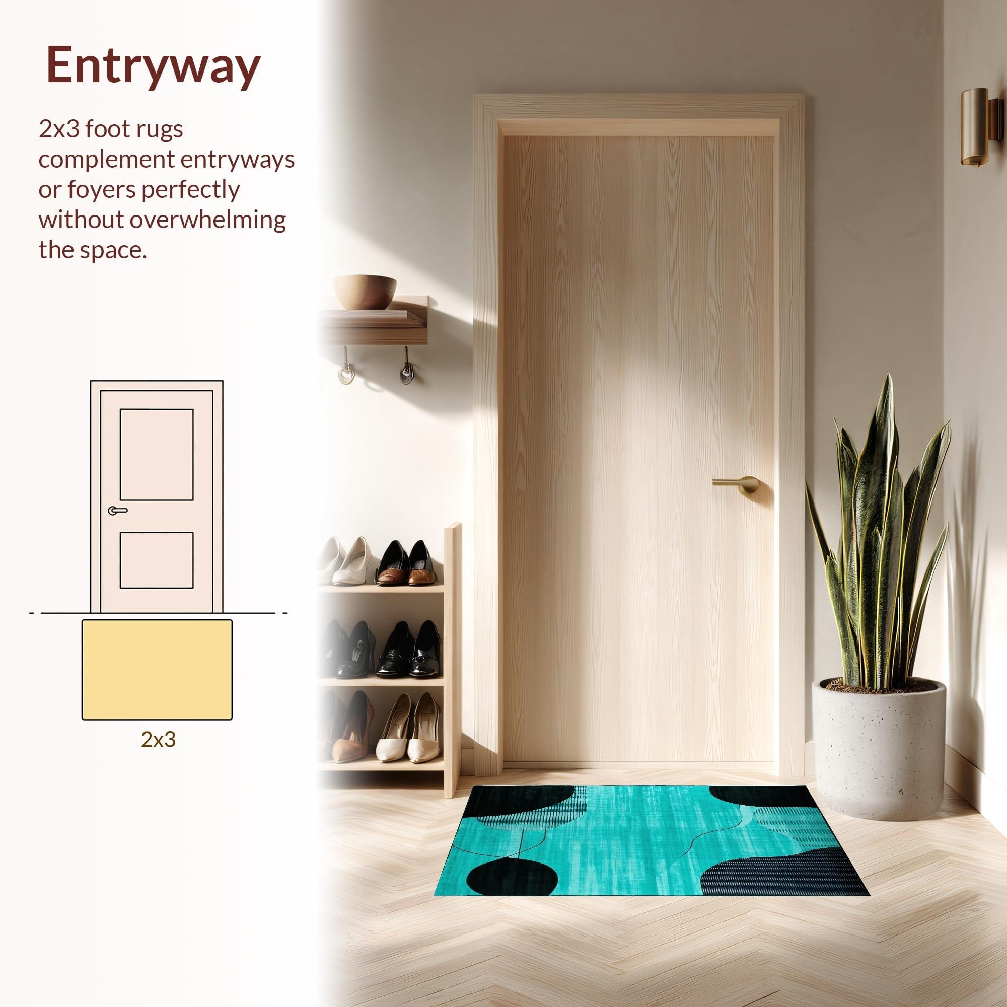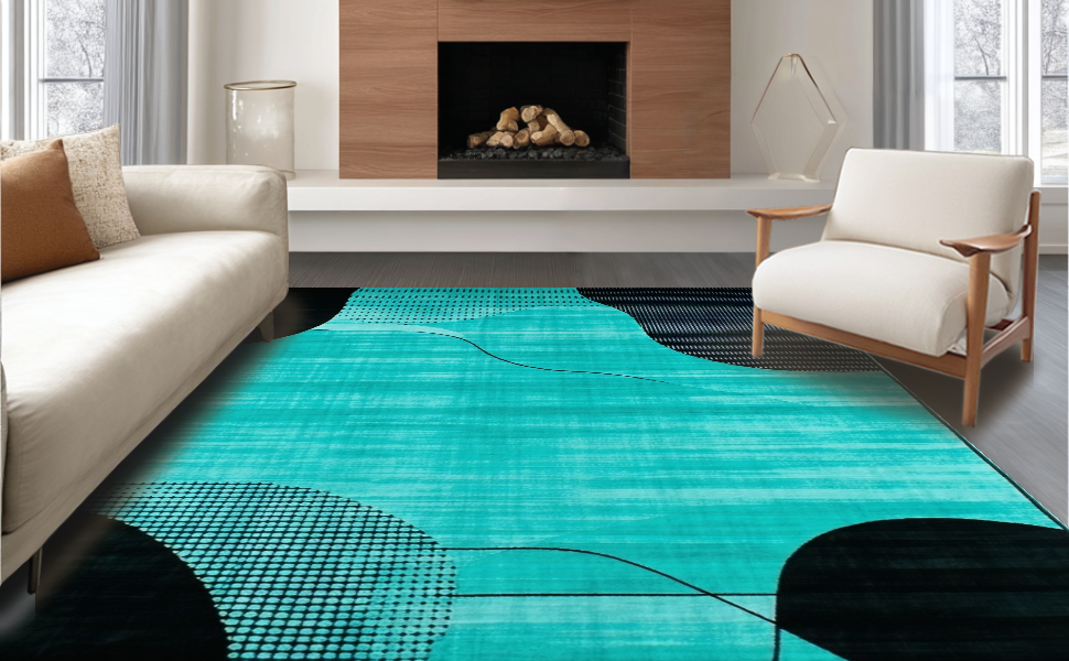 Ultra Soft Area Rug, Non Slip, Stain Resistant, Washable Area Rugs for Living Room, Bedroom, Artful Minimalist Abstract Style(Blue) Overview: