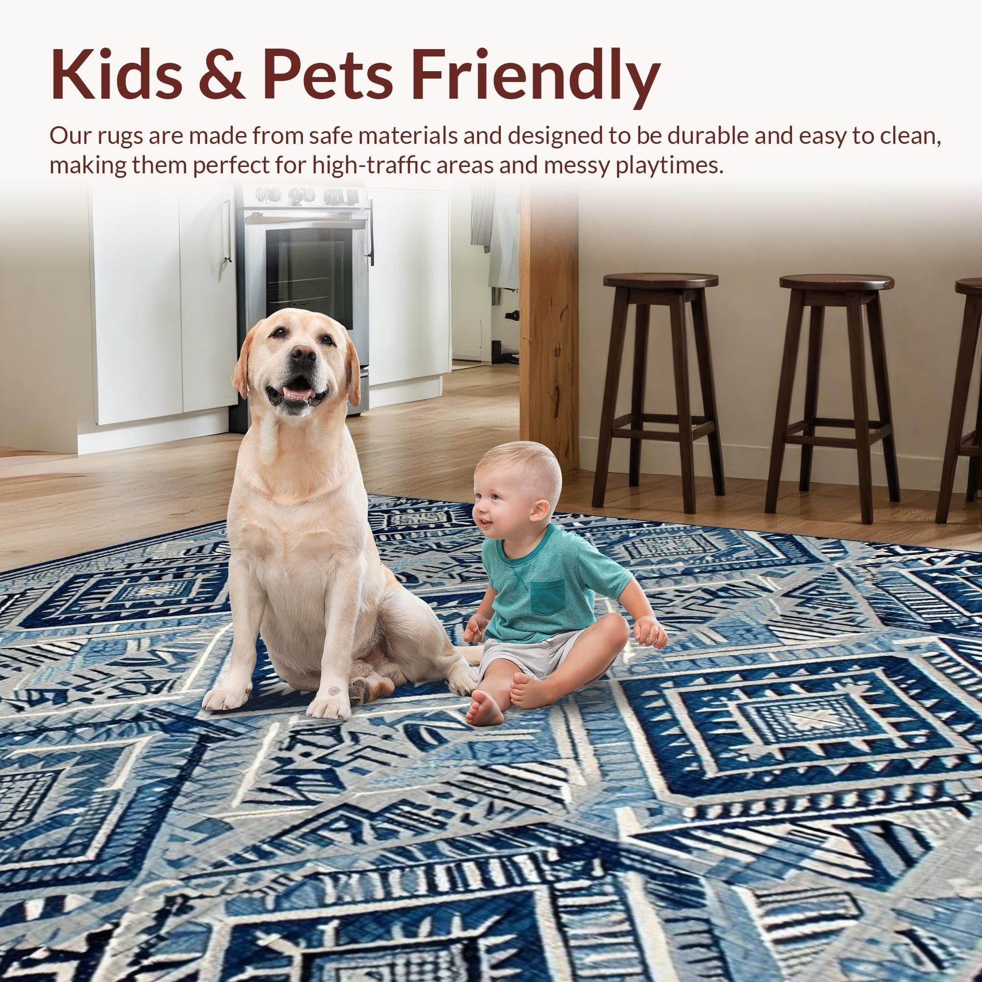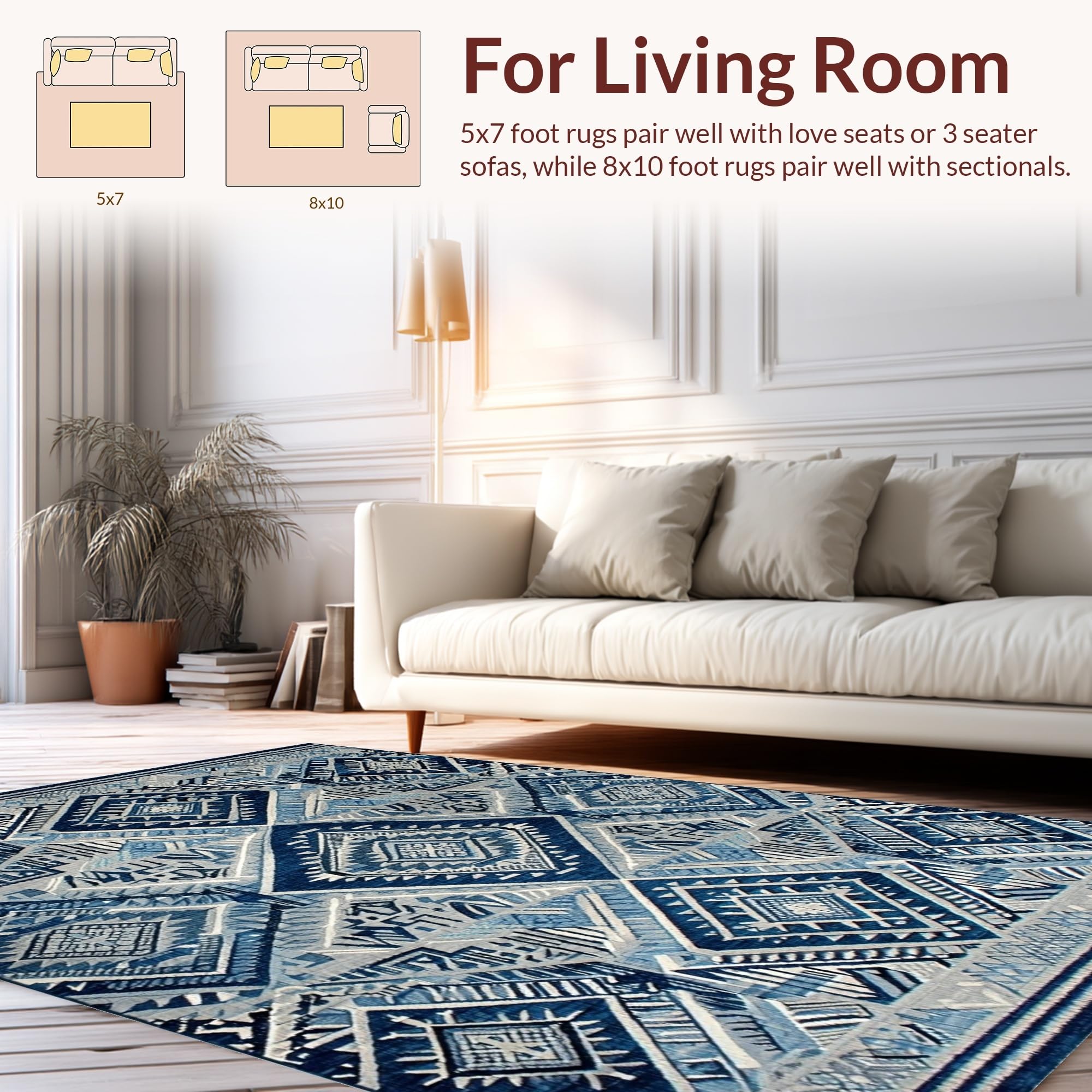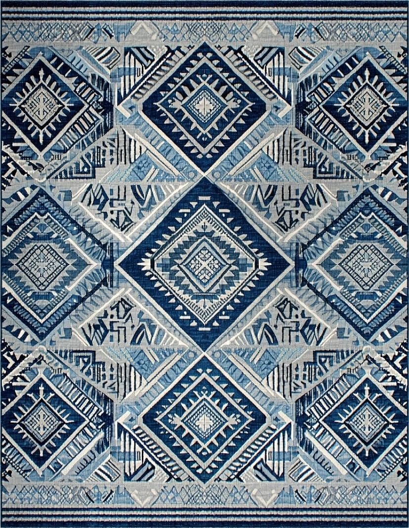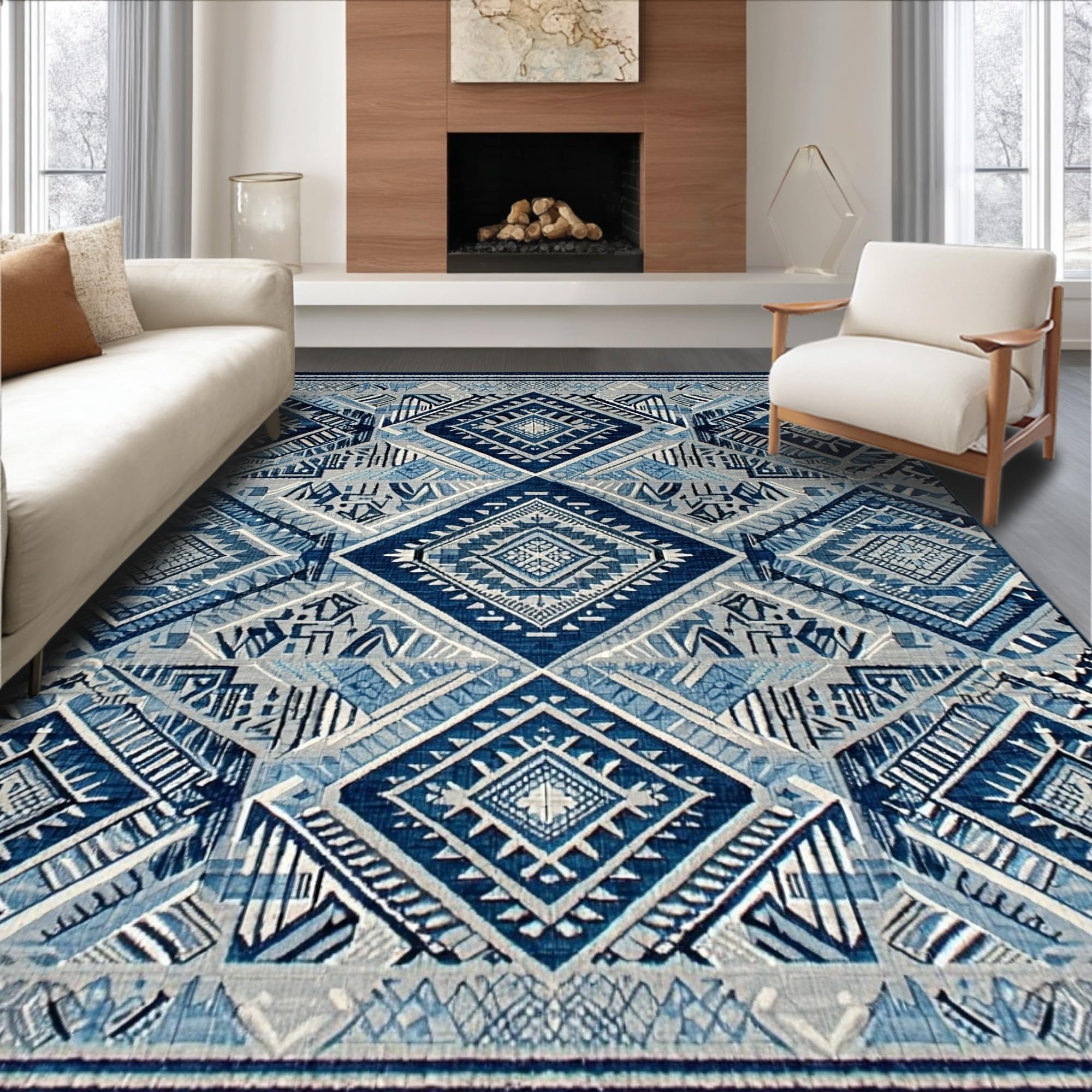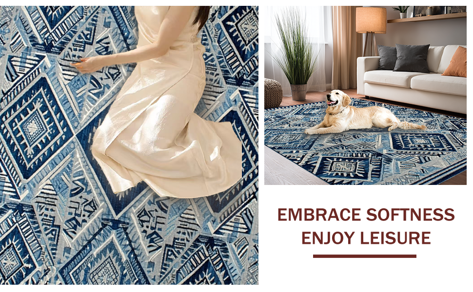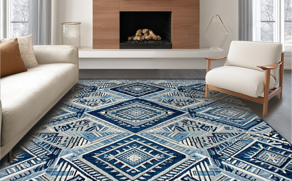 Ultra Soft Area Rug, Non Slip, Stain Resistant, Washable Area Rugs for Living Room, Bedroom, Artful Minimalist Patterned Surface(Blue) Overview: