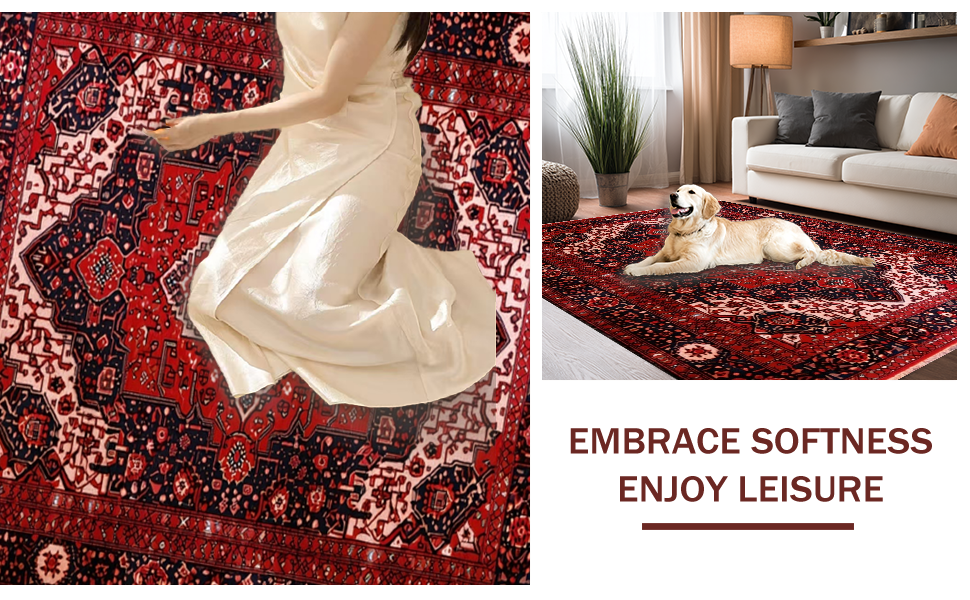 Ultra Soft Area Rug, Non Slip, Stain Resistant, Washable Area Rugs for Living Room, Bedroom, Artful Minimalist Wave Pattern(Red) Overview: