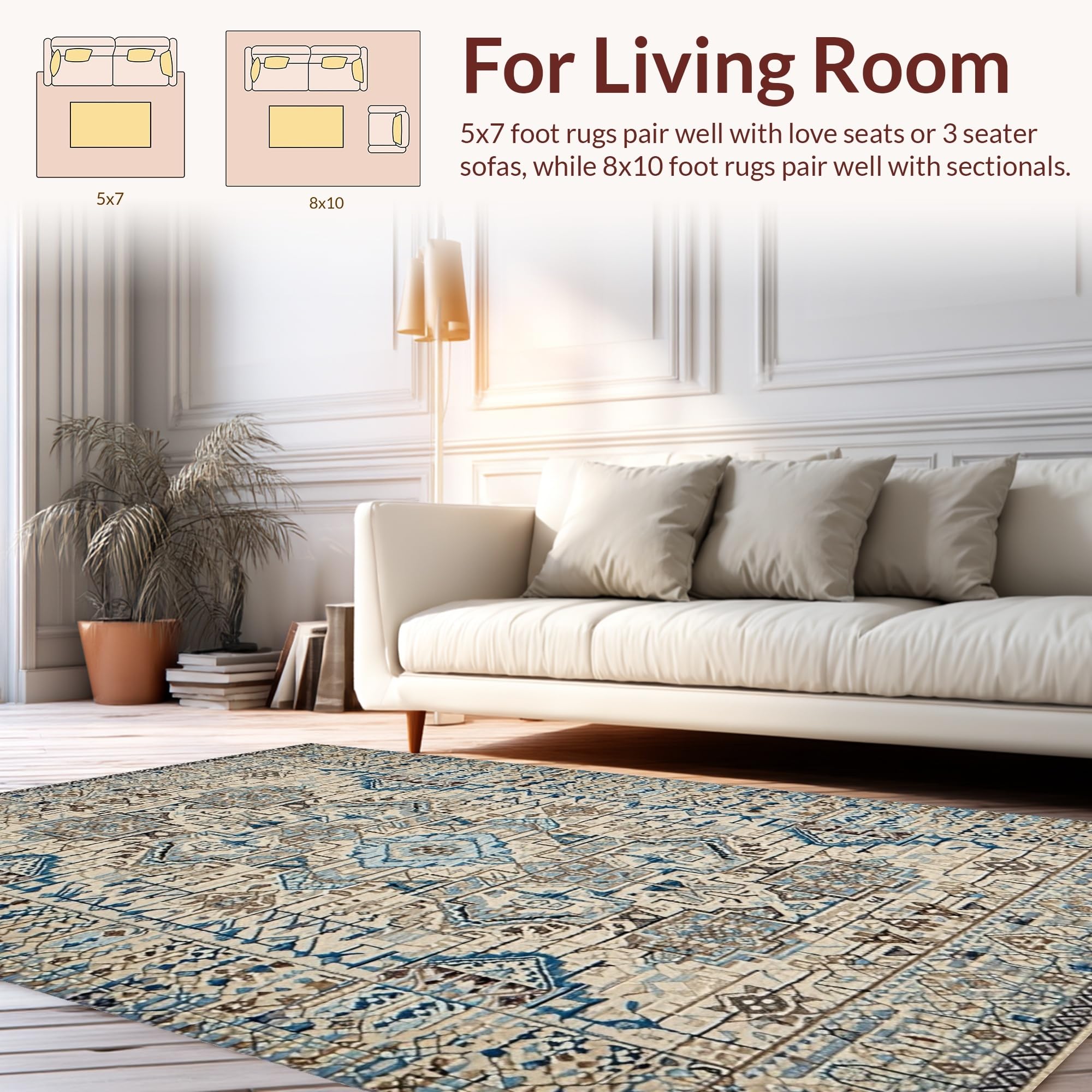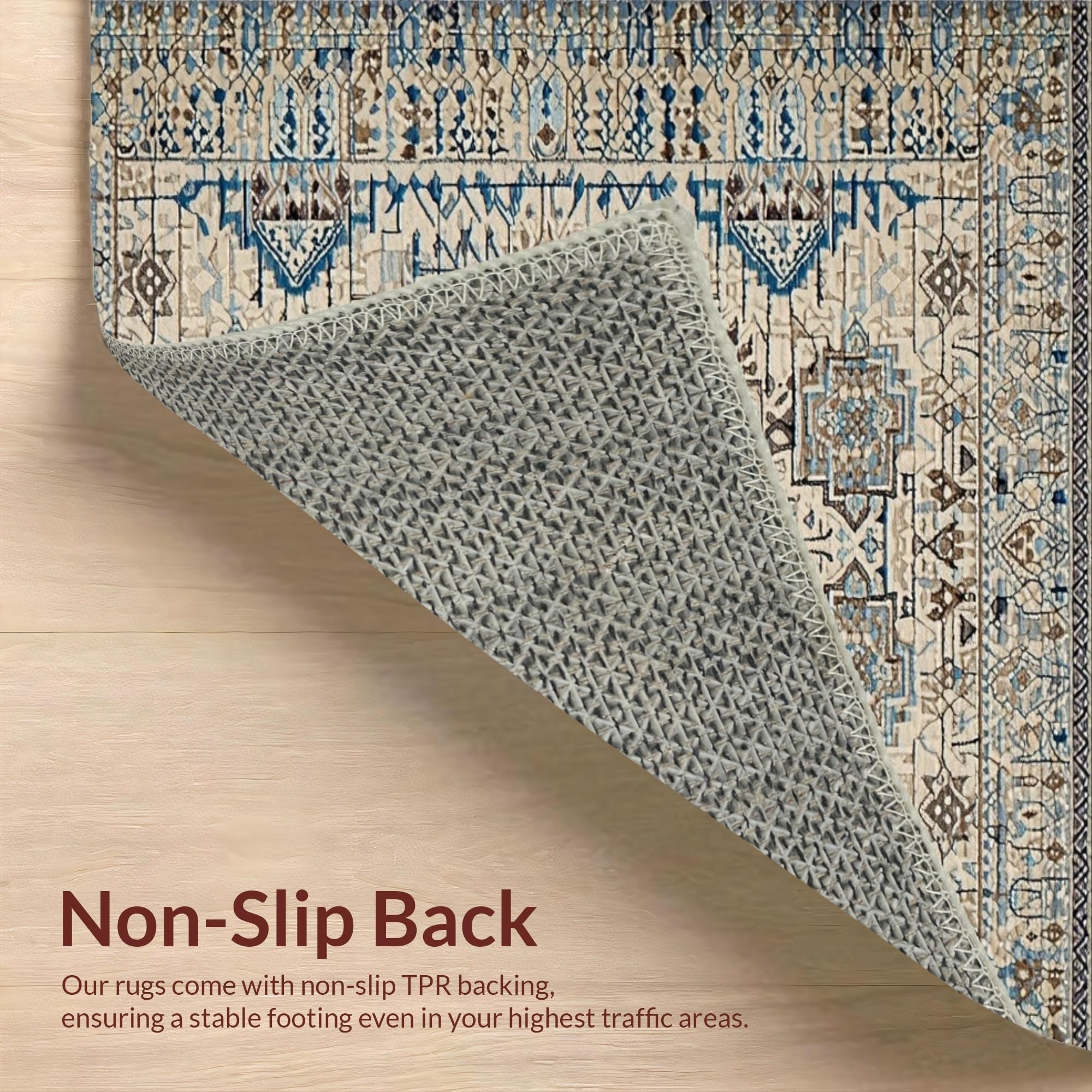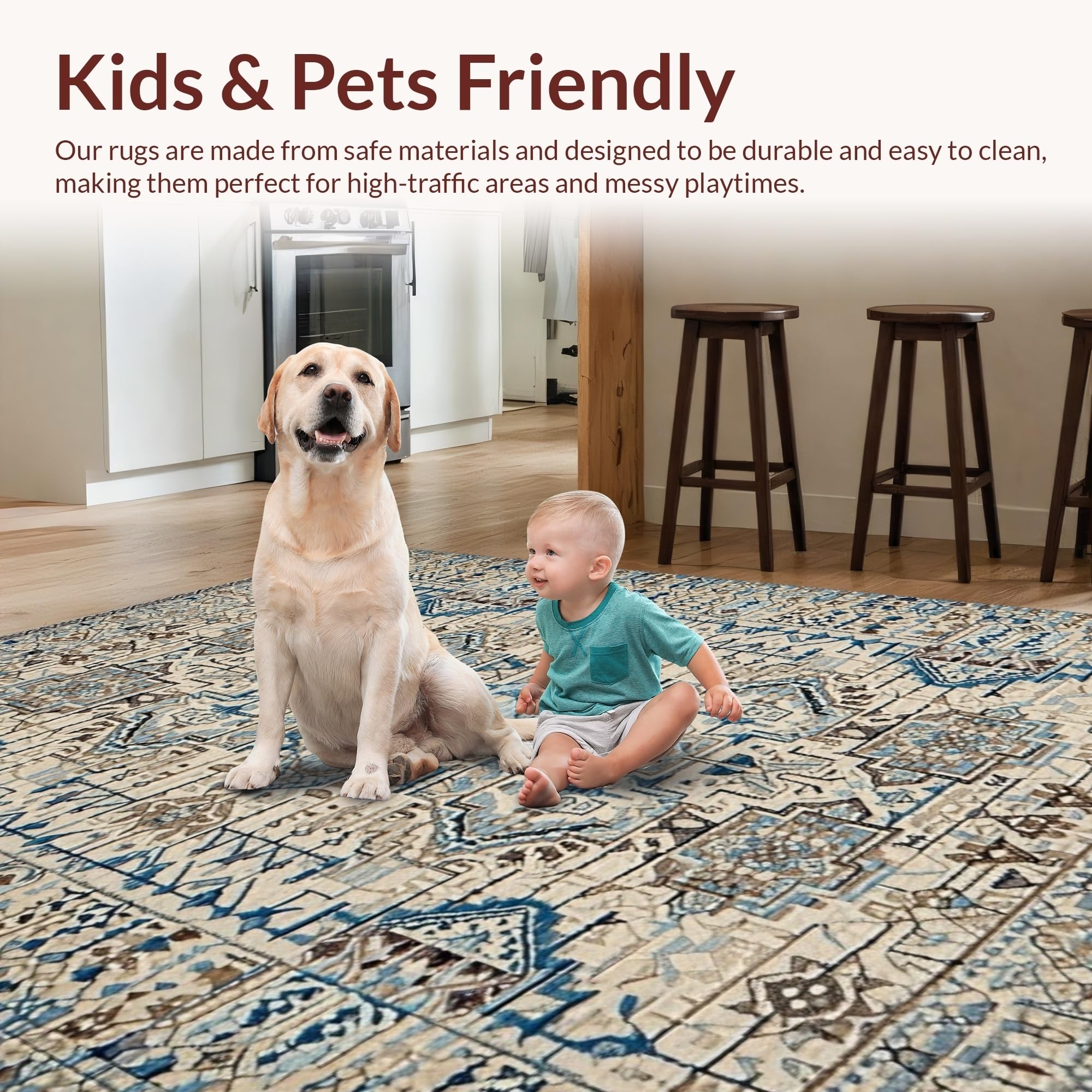 Ultra Soft Area Rug, Non Slip, Stain Resistant, Washable Area Rugs for Living Room, Bedroom, Artful Mixed Media Textural Blend(Beige) Overview: