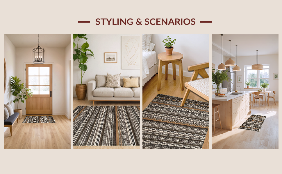 Ultra Soft Area Rug, Non Slip, Stain Resistant, Washable Area Rugs for Living Room, Bedroom, Artful Mocha Clay Geometric Motif(Brown) Overview: