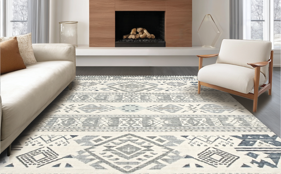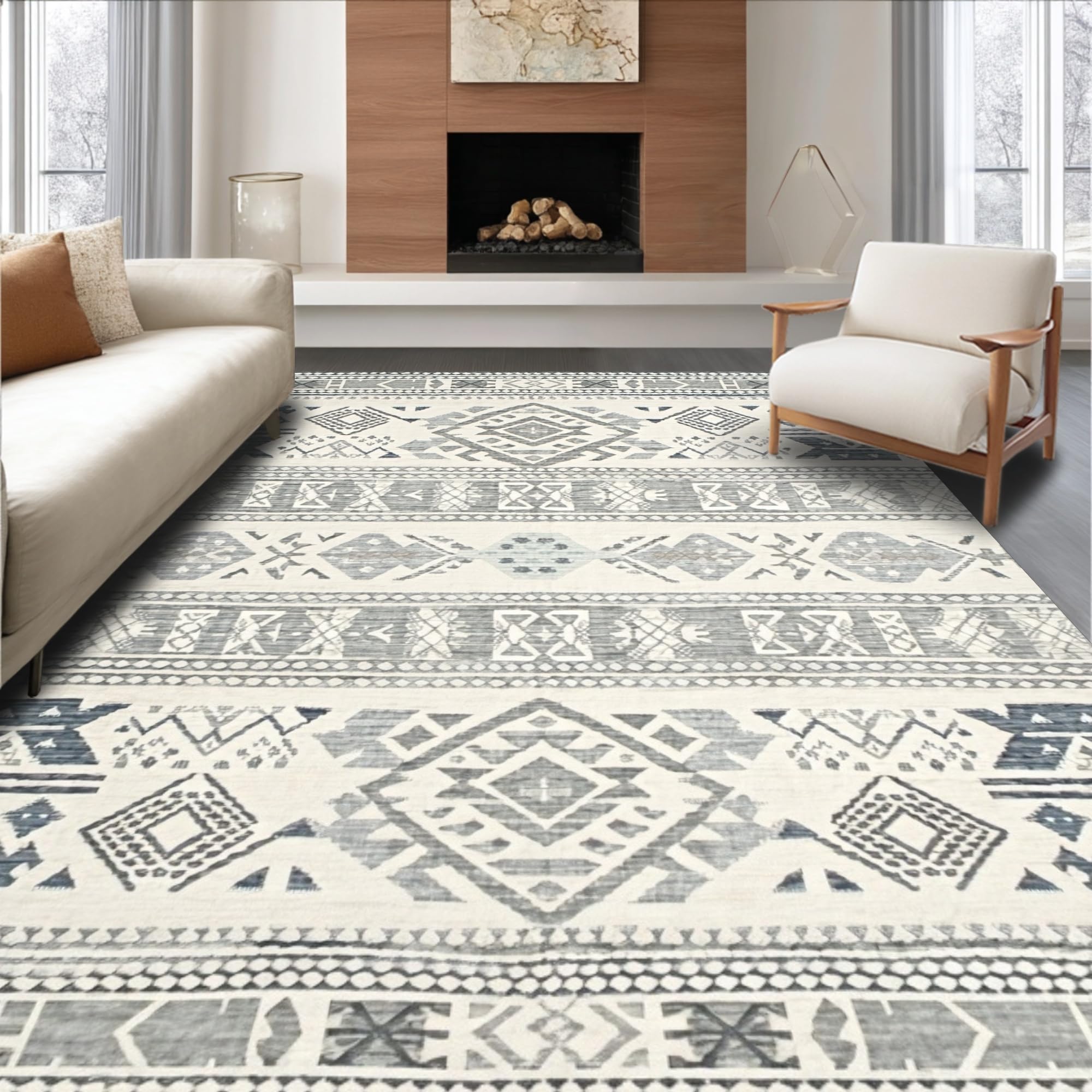 Ultra Soft Area Rug, Non Slip, Stain Resistant, Washable Area Rugs for Living Room, Bedroom, Artful Modern Abstract Design Elements(Gray) Overview: